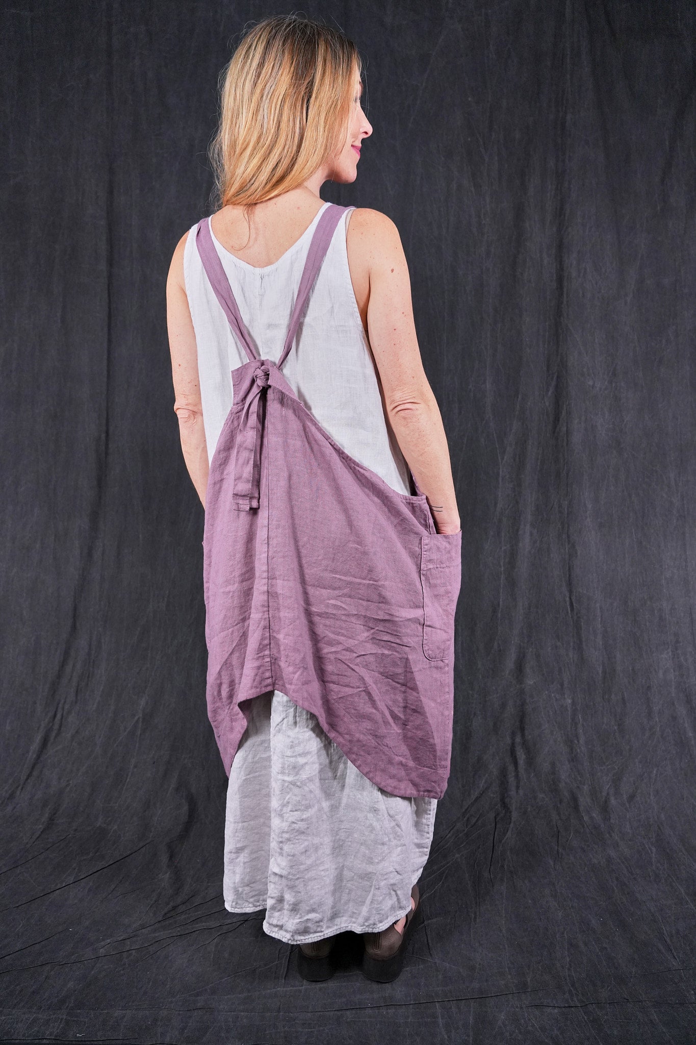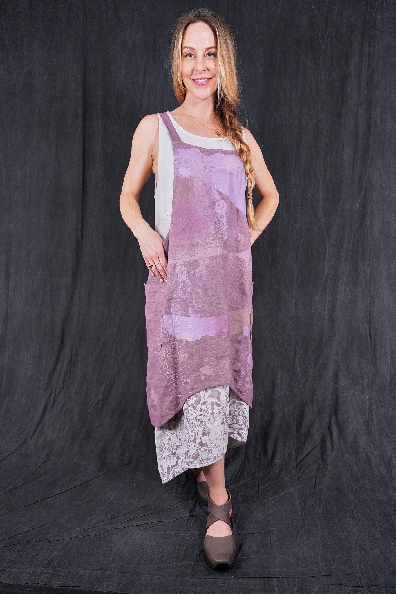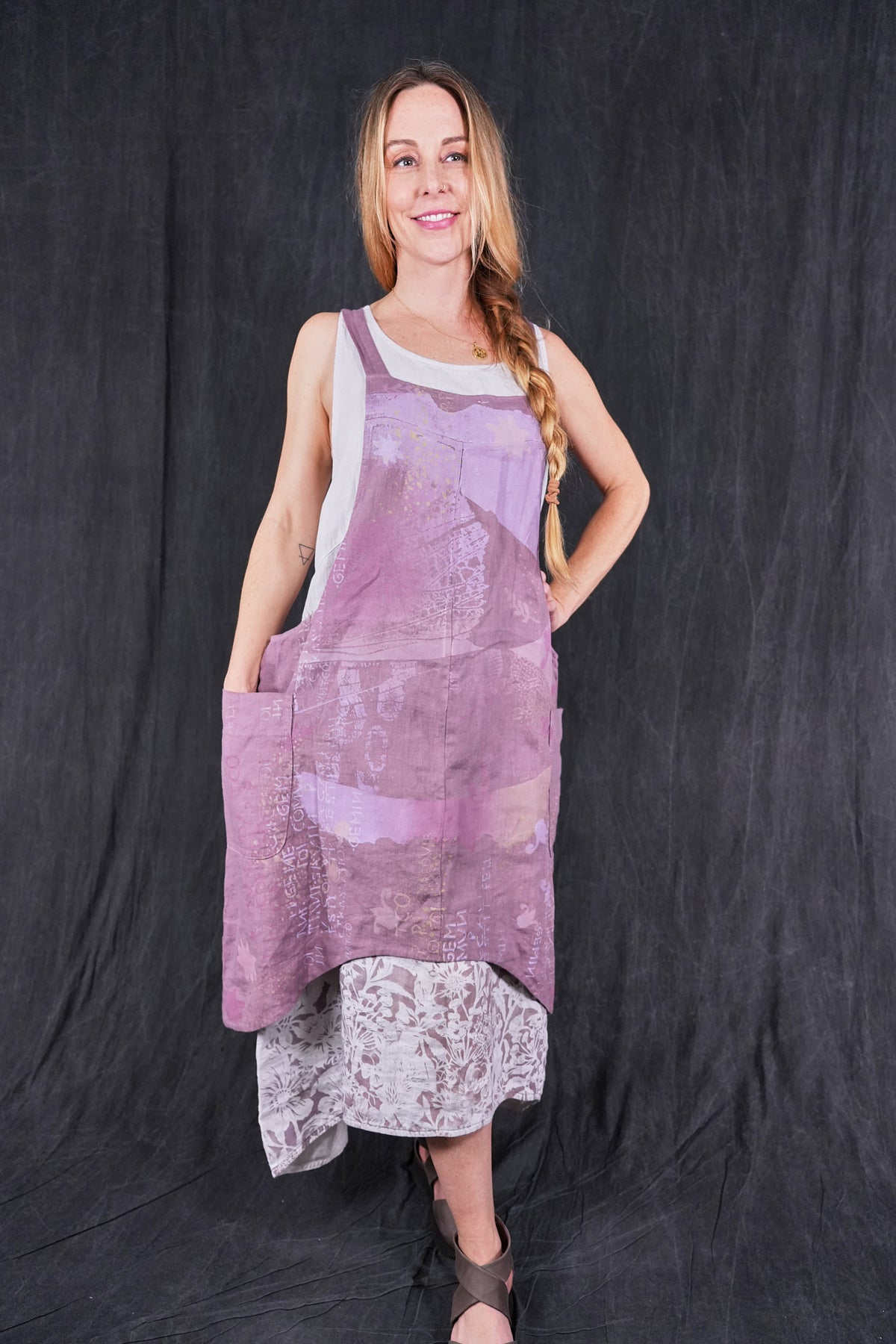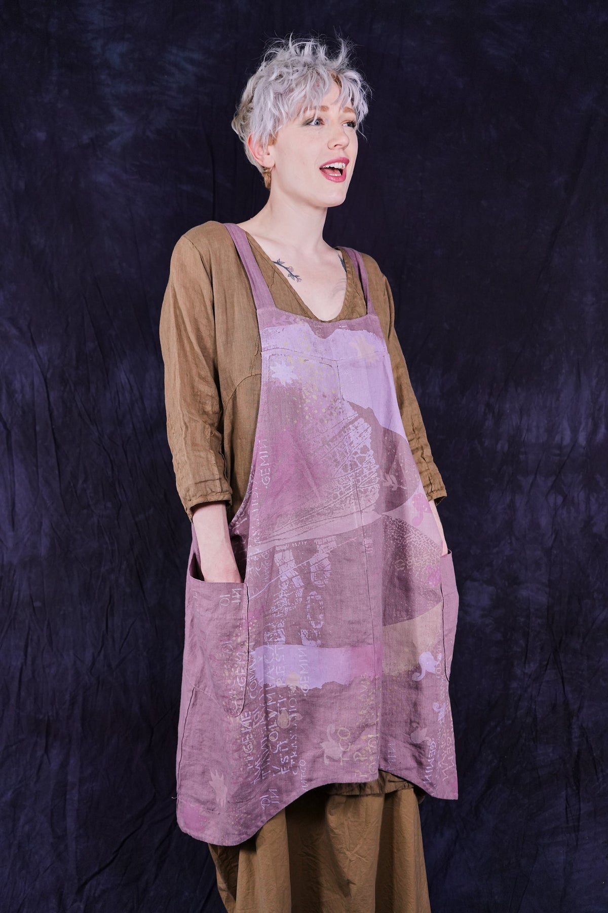 Hand-printed with abstracted & delicate, beautifully patterned moth wings...In the Blue Fish style of lagenlook, this special Cantina Apron Midlayer creates that eclectic Blue Fish look simply by layering over pants, skirts and dresses. The softest mid-weight linen with adjustable ties. Roomy pockets give function to the artful style. Get ready to garner many compliments in this essential Blue Fish Midlayer!