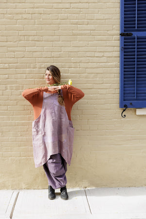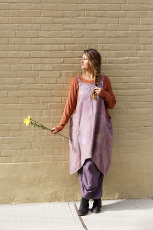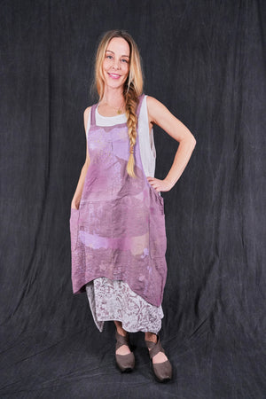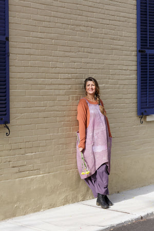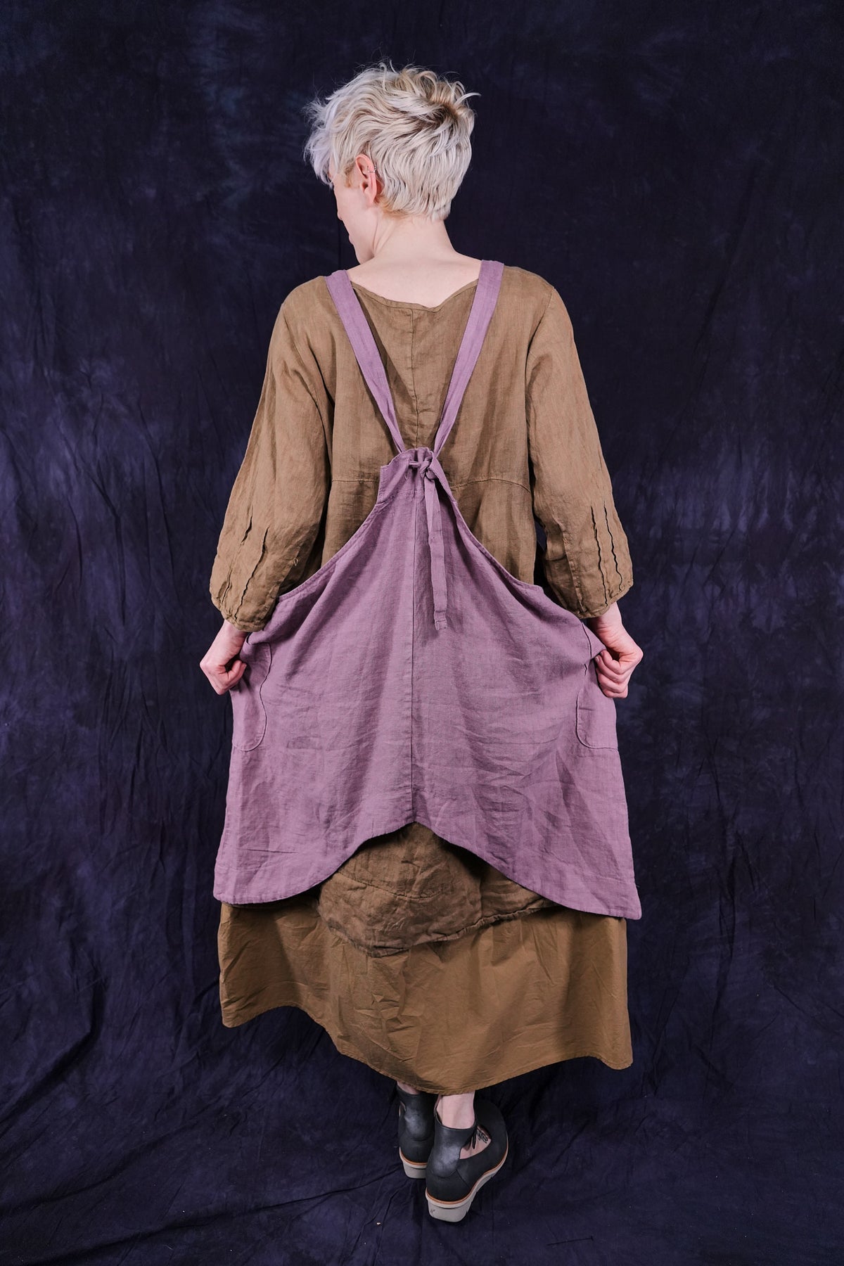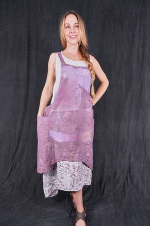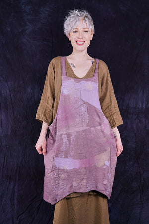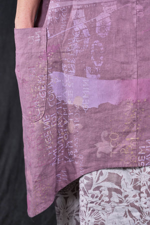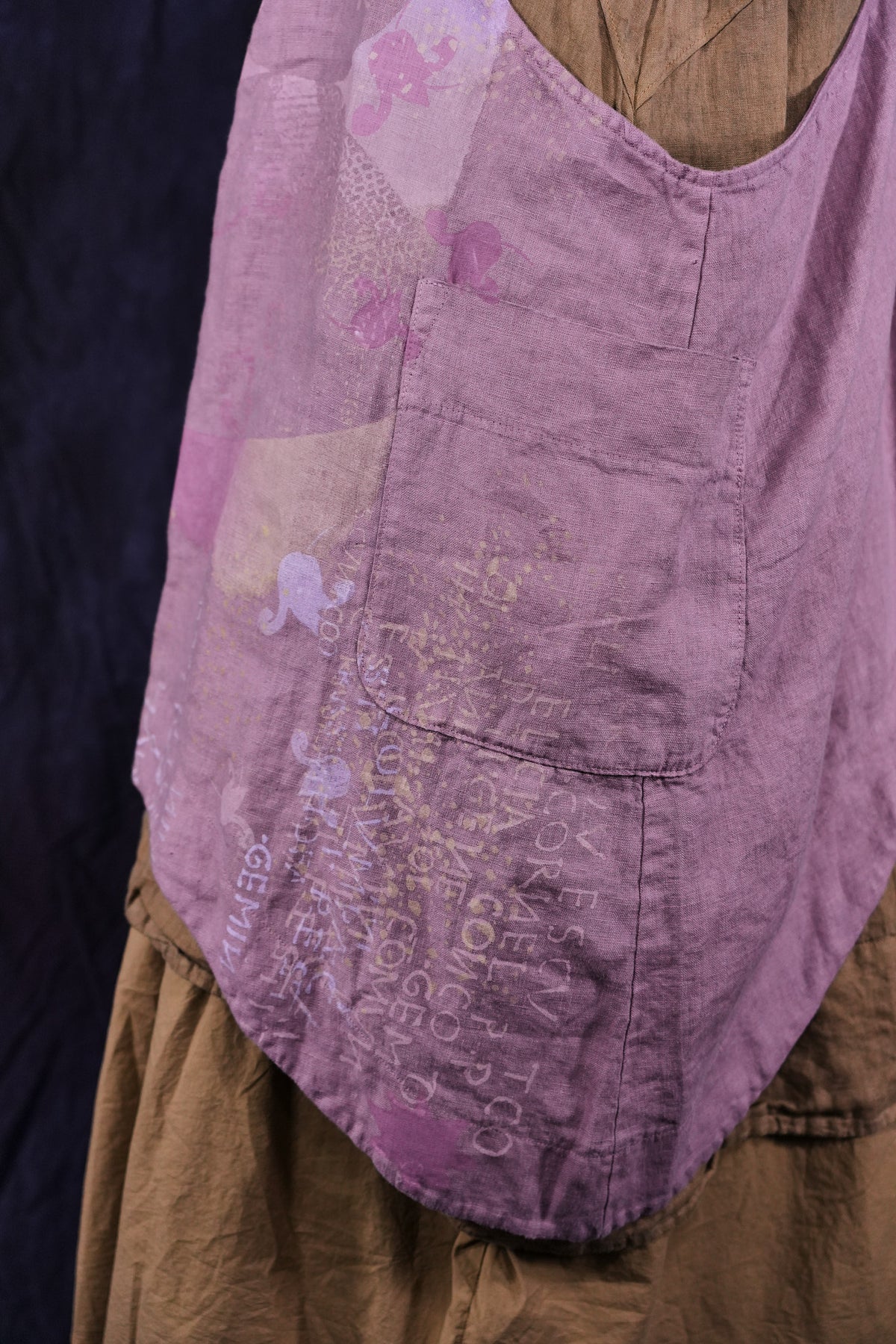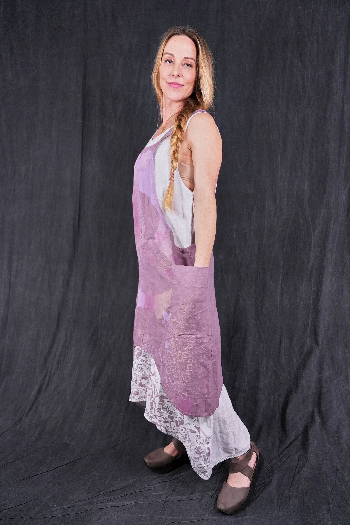 Hand-printed with abstracted & delicate, beautifully patterned moth wings...In the Blue Fish style of lagenlook, this special Cantina Apron Midlayer creates that eclectic Blue Fish look simply by layering over pants, skirts and dresses. The softest mid-weight linen with adjustable ties. Roomy pockets give function to the artful style. Get ready to garner many compliments in this essential Blue Fish Midlayer!