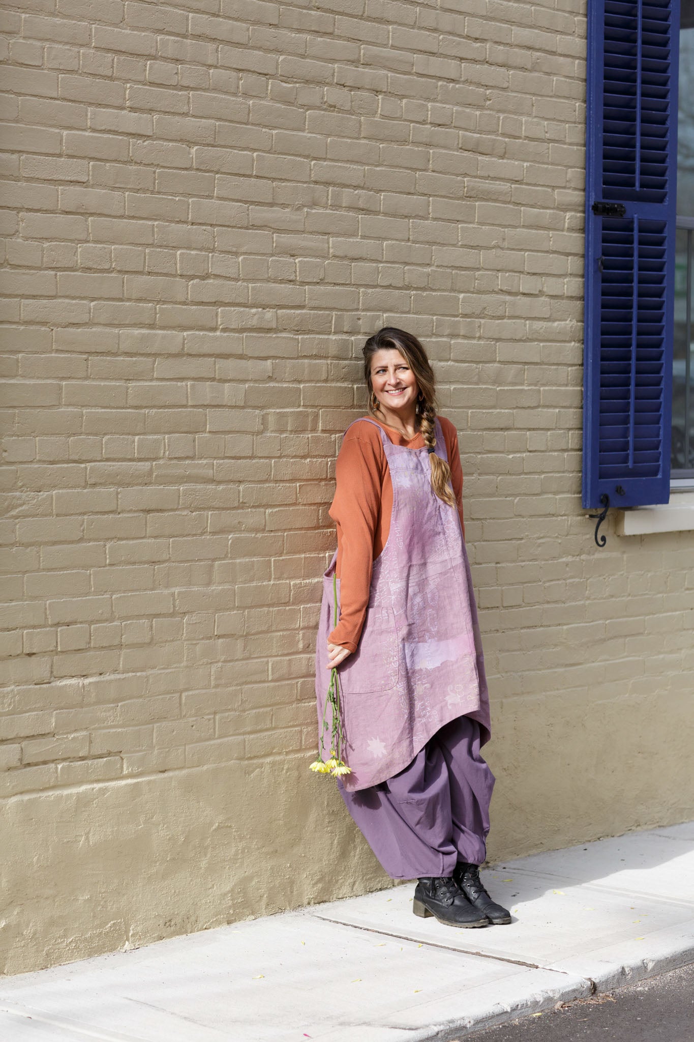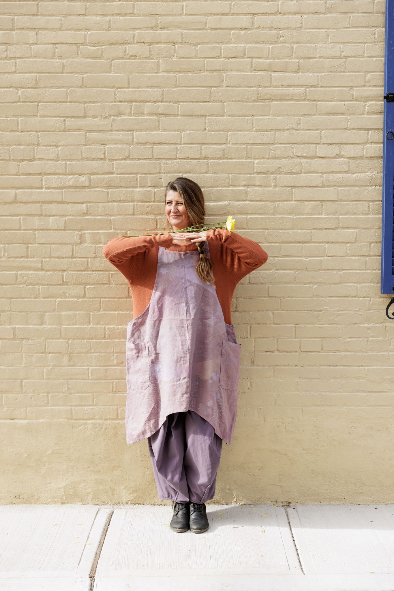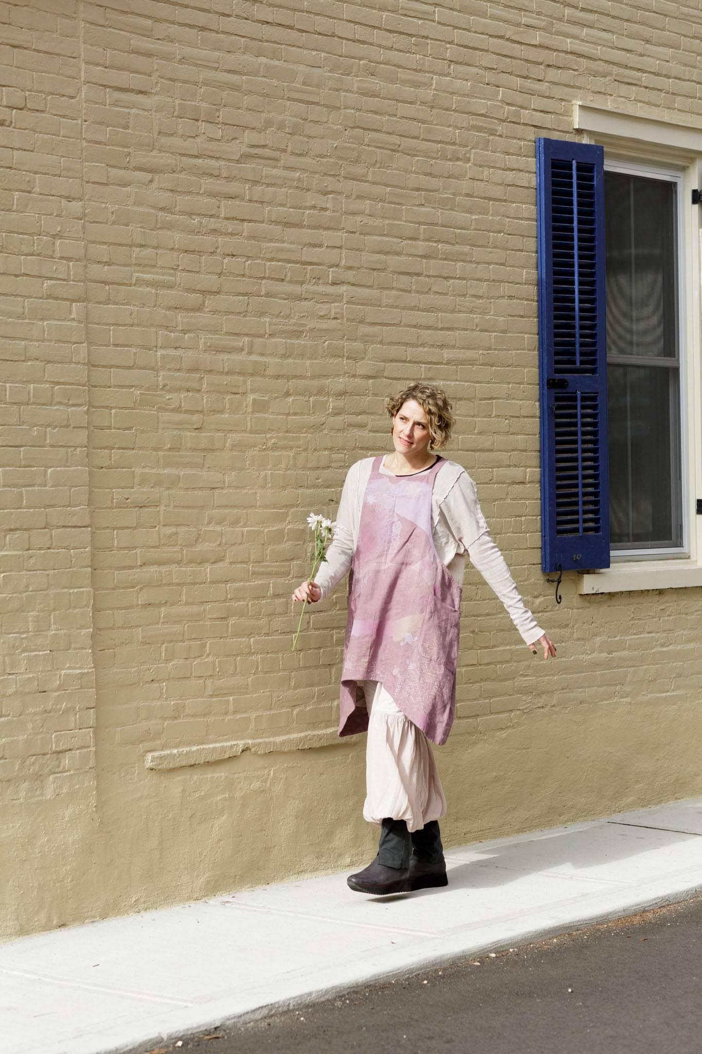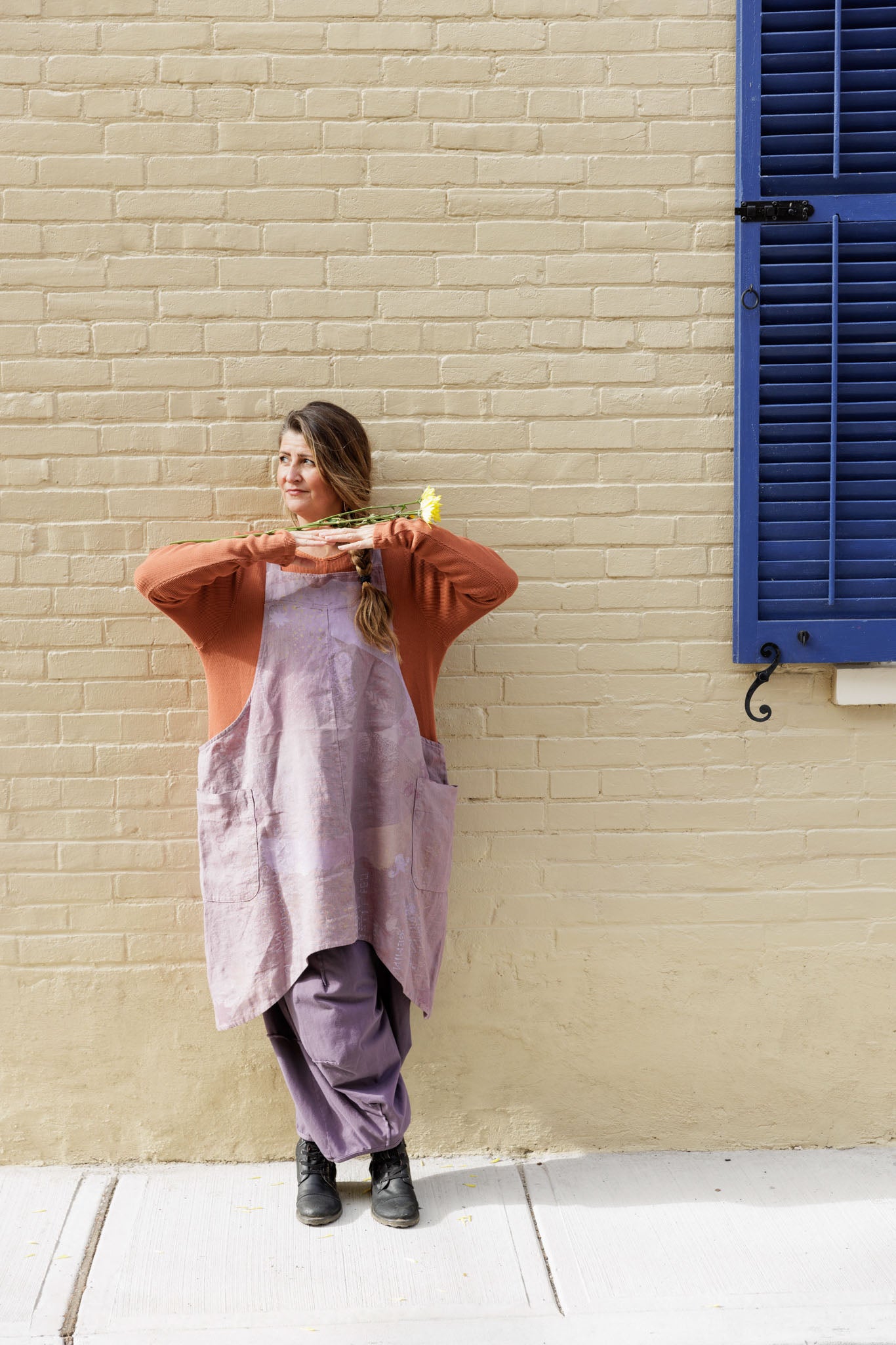 Hand-printed with abstracted & delicate, beautifully patterned moth wings...In the Blue Fish style of lagenlook, this special Cantina Apron Midlayer creates that eclectic Blue Fish look simply by layering over pants, skirts and dresses. The softest mid-weight linen with adjustable ties. Roomy pockets give function to the artful style. Get ready to garner many compliments in this essential Blue Fish Midlayer!