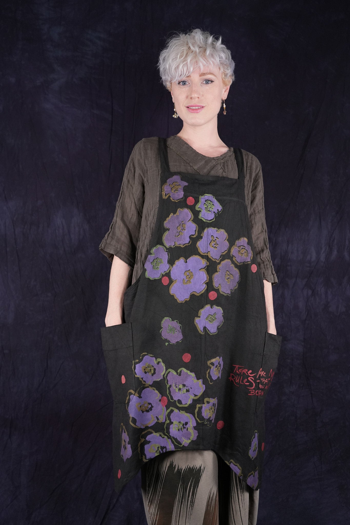In the Swedish style of lagenlook, this special Midlayer creates that eclectic Blue Fish look simply by layering over pants, skirts and dresses. The softest mid-weight linen is reinforced with binding with adjustable ties. Roomy pockets give function to the artful style. Measurements are updated for improved fit. Get ready to garner many compliments in this essential Blue Fish Midlayer! Vibrant floral print.