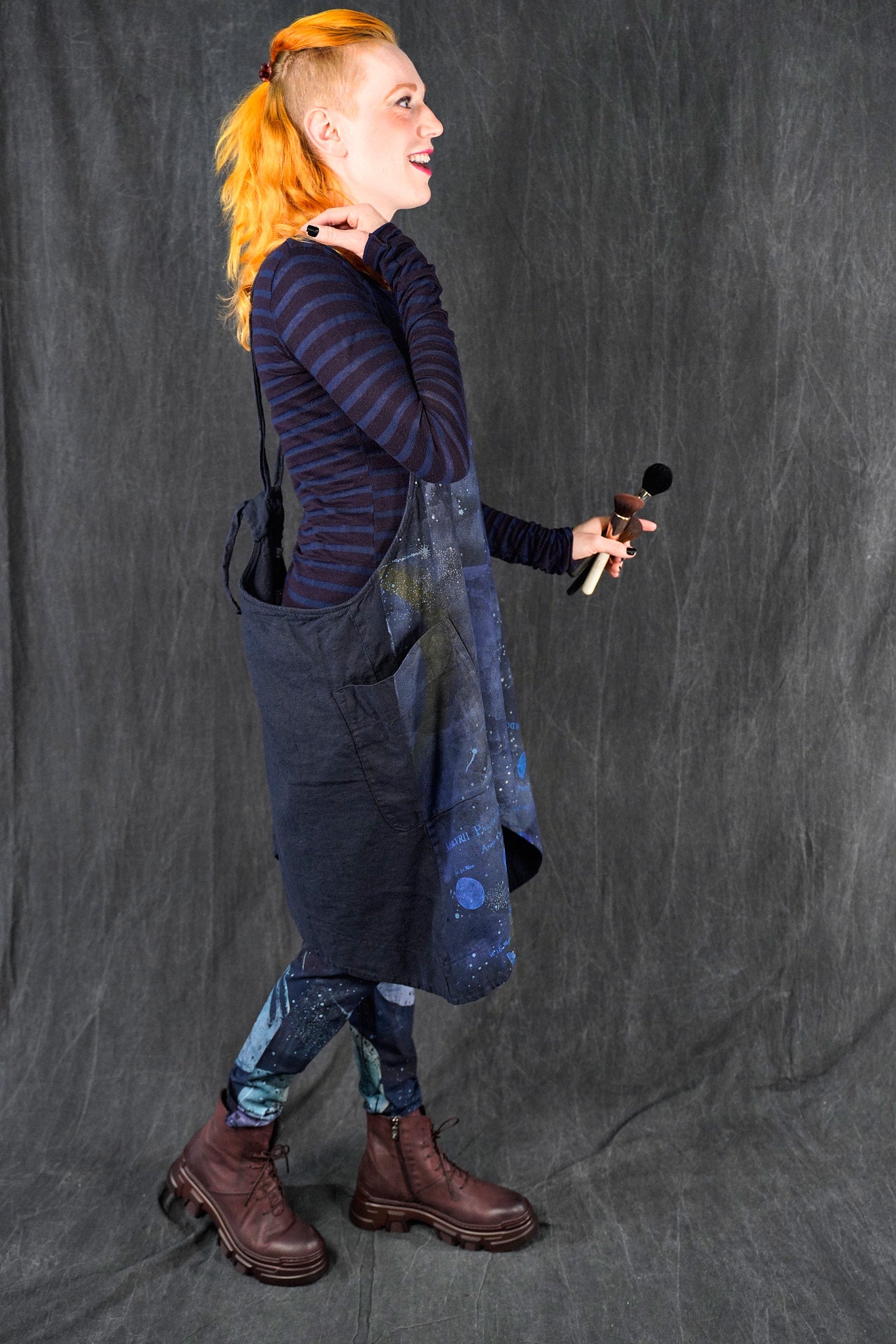 In the Swedish style of lagenlook, this special Midlayer creates that eclectic Blue Fish look simply by layering over pants, skirts and dresses. The softest mid-weight linen is reinforced with binding with adjustable ties. Roomy pockets give function to the artful style. Measurements are updated for improved fit. Get ready to garner many compliments in this essential Blue Fish Midlayer!