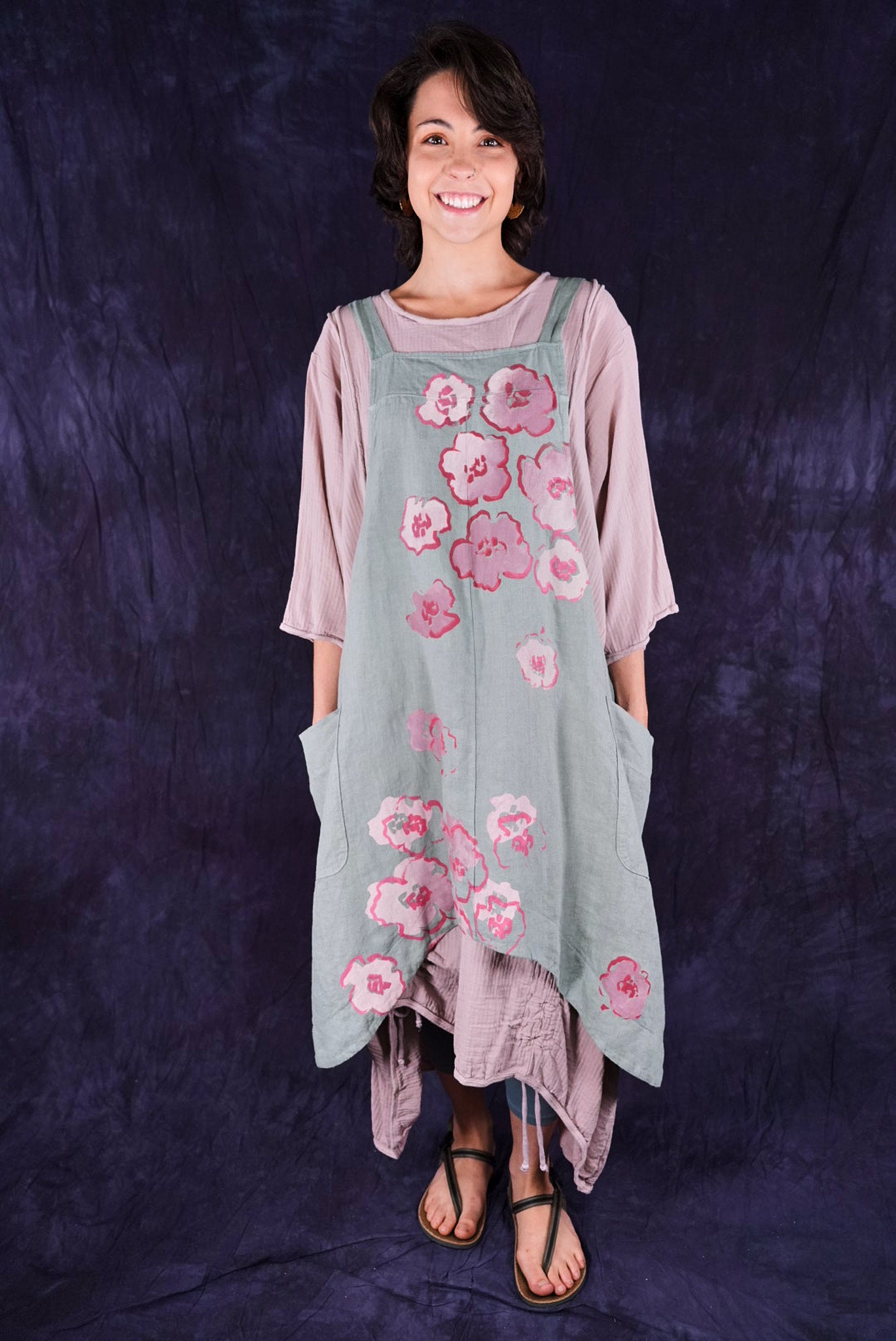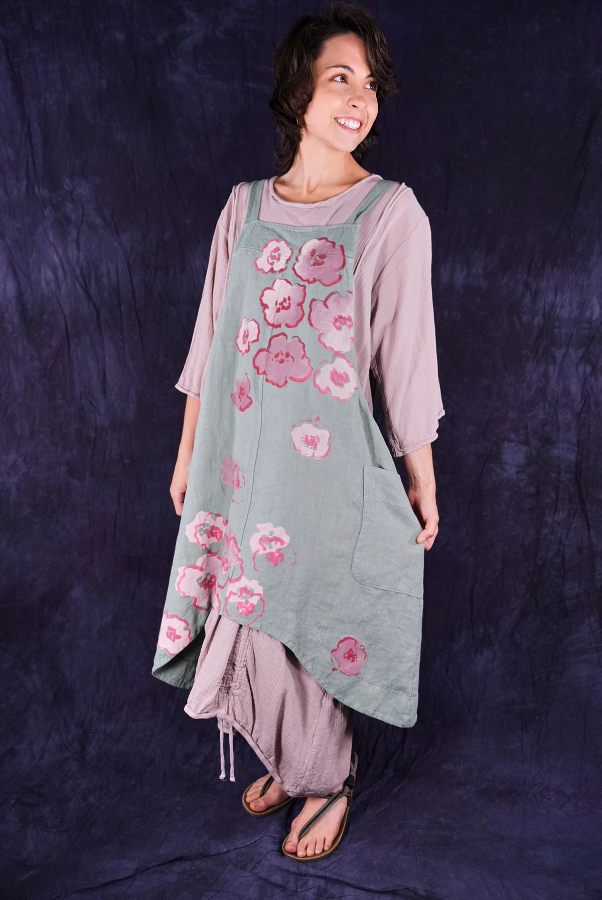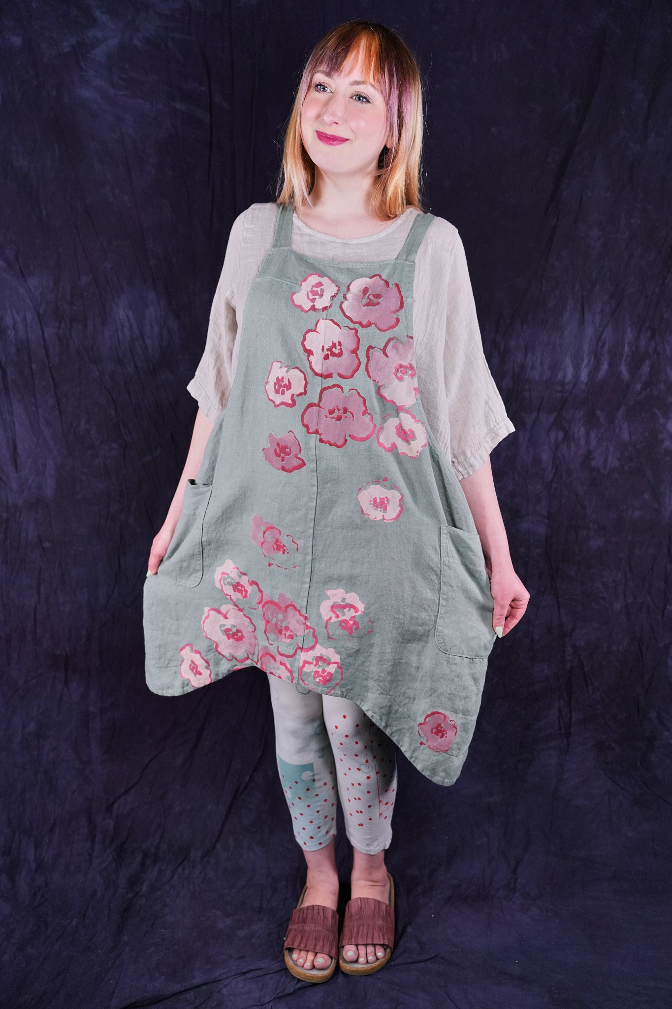 Printed with pretty modern botanicals in gorgeous subtle tones of coral & pinks in the Blue Fish style of lagenlook. This pretty color apron is a wonderfully versatile Stockholm Apron Midlayer and easily creates that eclectic Blue Fish look simply by layering over pants, skirts, and dresses. Heavyweight linen with ties for length adjustment. Roomy side oriented pockets give function to the artful style. Get ready to enjoy the many wearable possibilities of this playful and happy Blue Fish mid-layer!