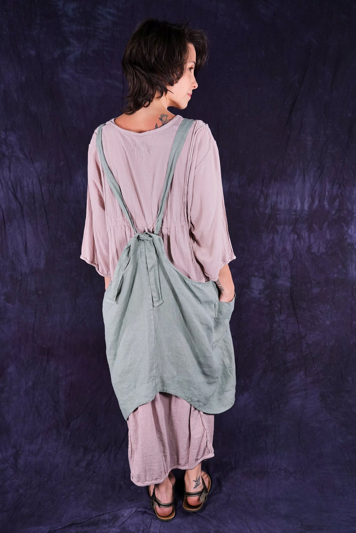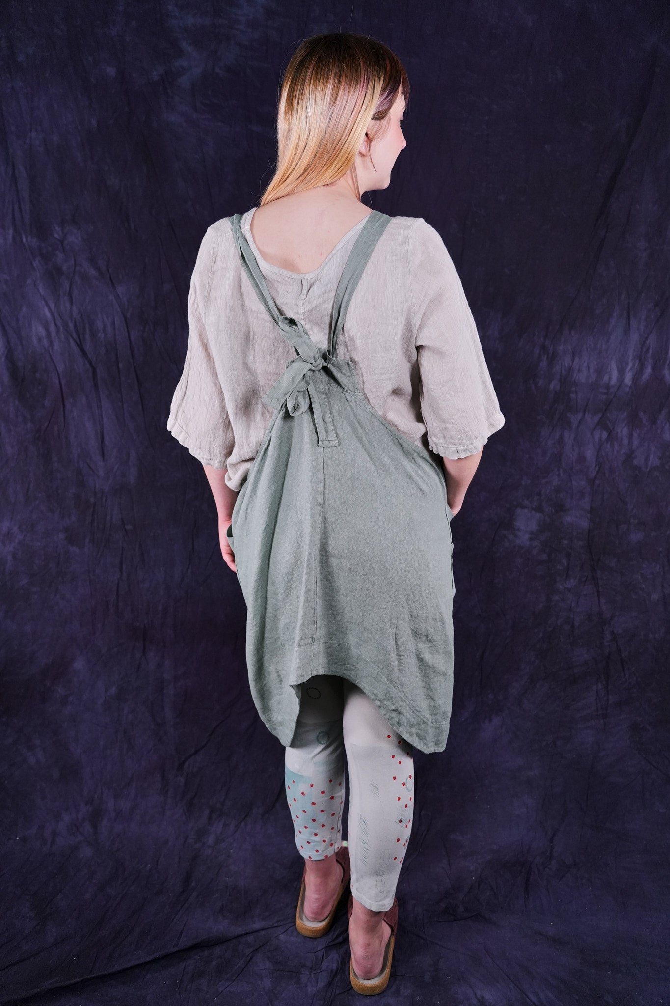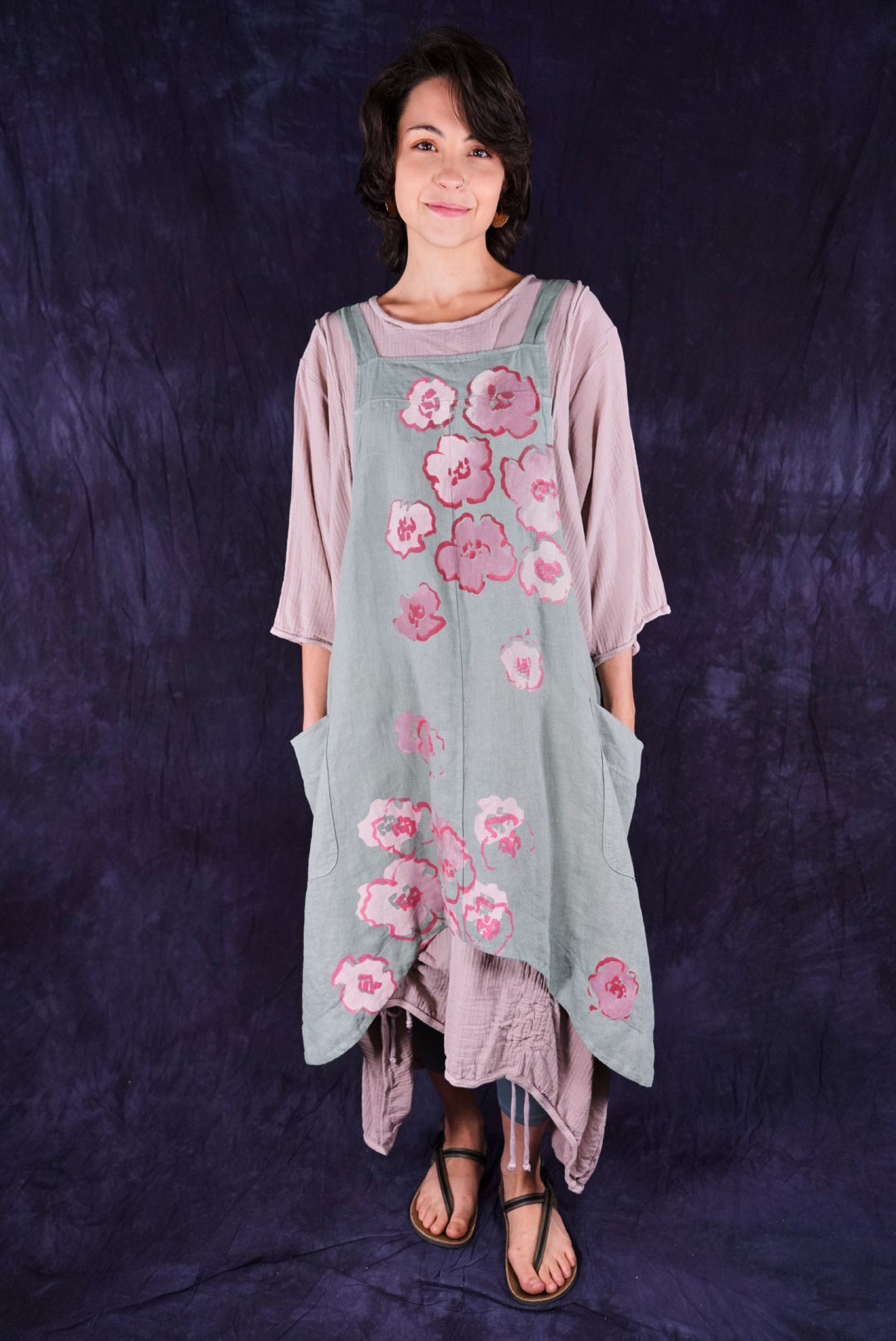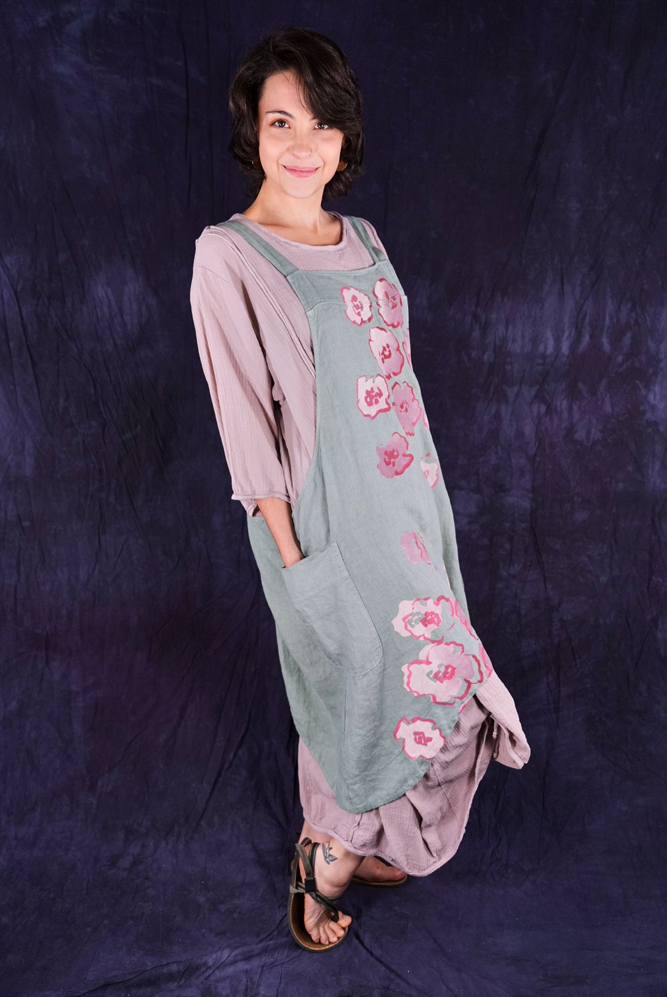 Printed with pretty modern botanicals in gorgeous subtle tones of coral & pinks in the Blue Fish style of lagenlook. This pretty color apron is a wonderfully versatile Stockholm Apron Midlayer and easily creates that eclectic Blue Fish look simply by layering over pants, skirts, and dresses. Heavyweight linen with ties for length adjustment. Roomy side oriented pockets give function to the artful style. Get ready to enjoy the many wearable possibilities of this playful and happy Blue Fish mid-layer!