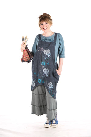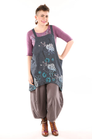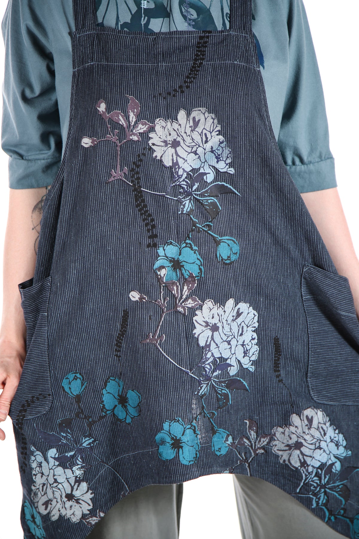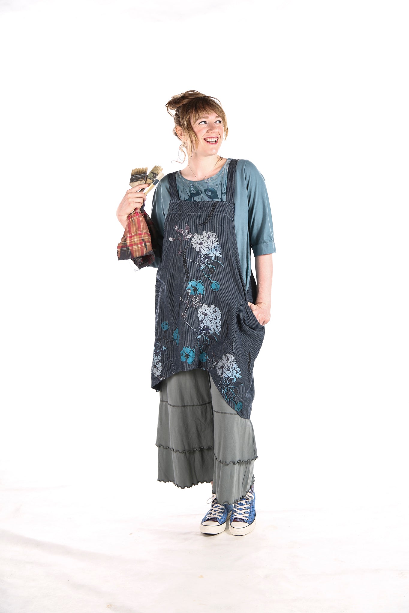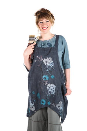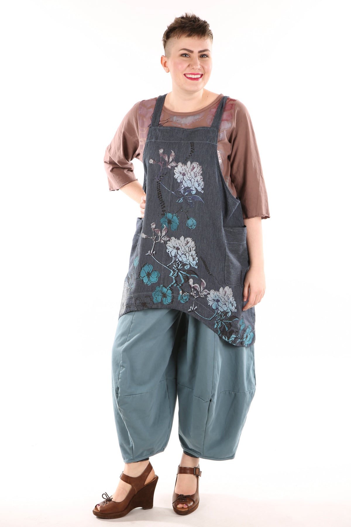 In the Swedish style of lagenlook, this special apron/jumper creates that eclectic Blue Fish look simply by layering over pants, skirts and dresses. The indigo striped hemp-cotton woven fabric feels like linen, and has been overdyed in gorgeous colors that coordinate with the other pieces in the collection. Roomy pockets give function to the artful style. Measurements are updated for improved fit. T Get ready to garner many compliments in this essential Blue Fish apron jumper!