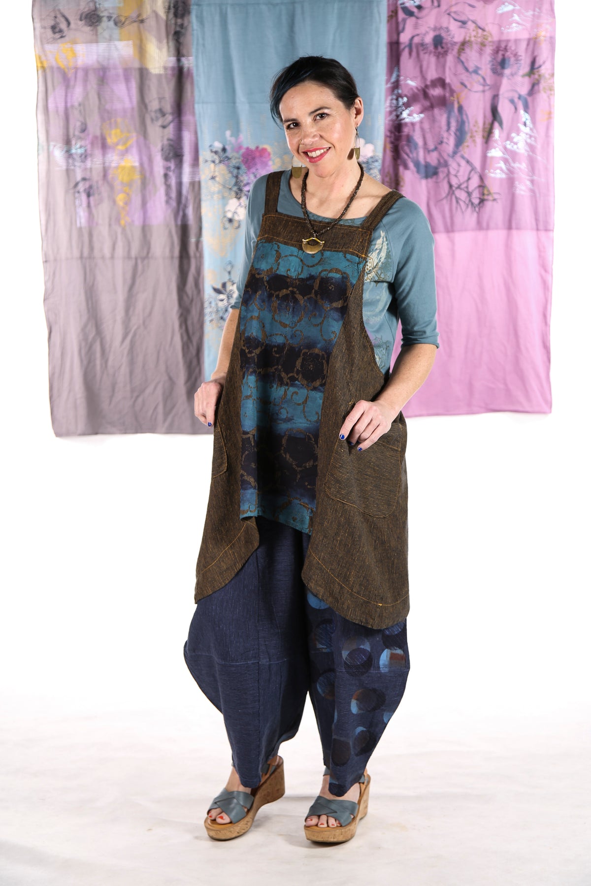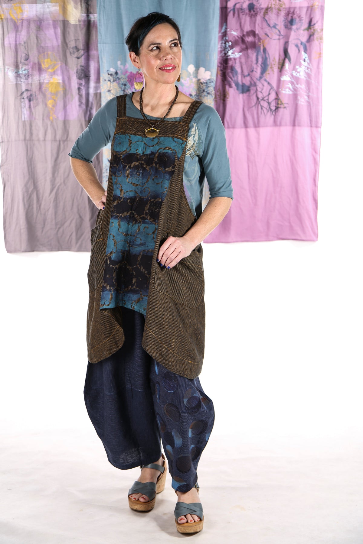 In the Swedish style of lagenlook, this special Stockholm Midlayer creates that eclectic Blue Fish look simply by layering over pants, skirts and dresses. The softest mid-weight linen is reinforced with striped binding that matches the striped adjustable ties. Roomy pockets give function to the artful style. Measurements are updated for improved fit. T Get ready to garner many compliments in this essential Blue Fish Midlayer!