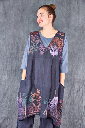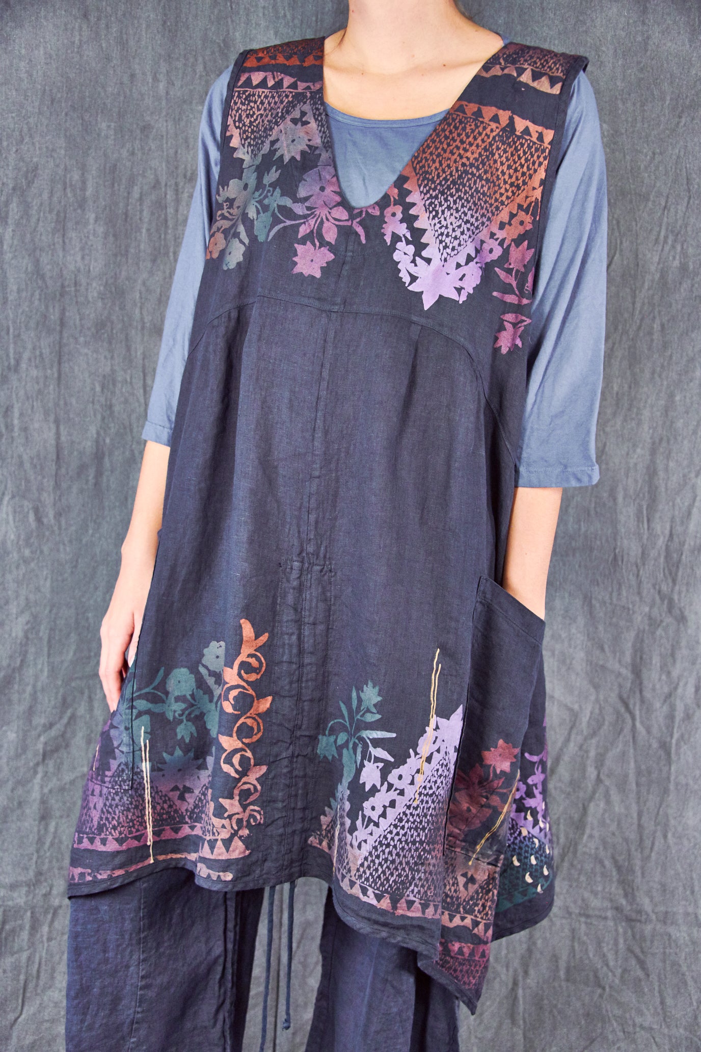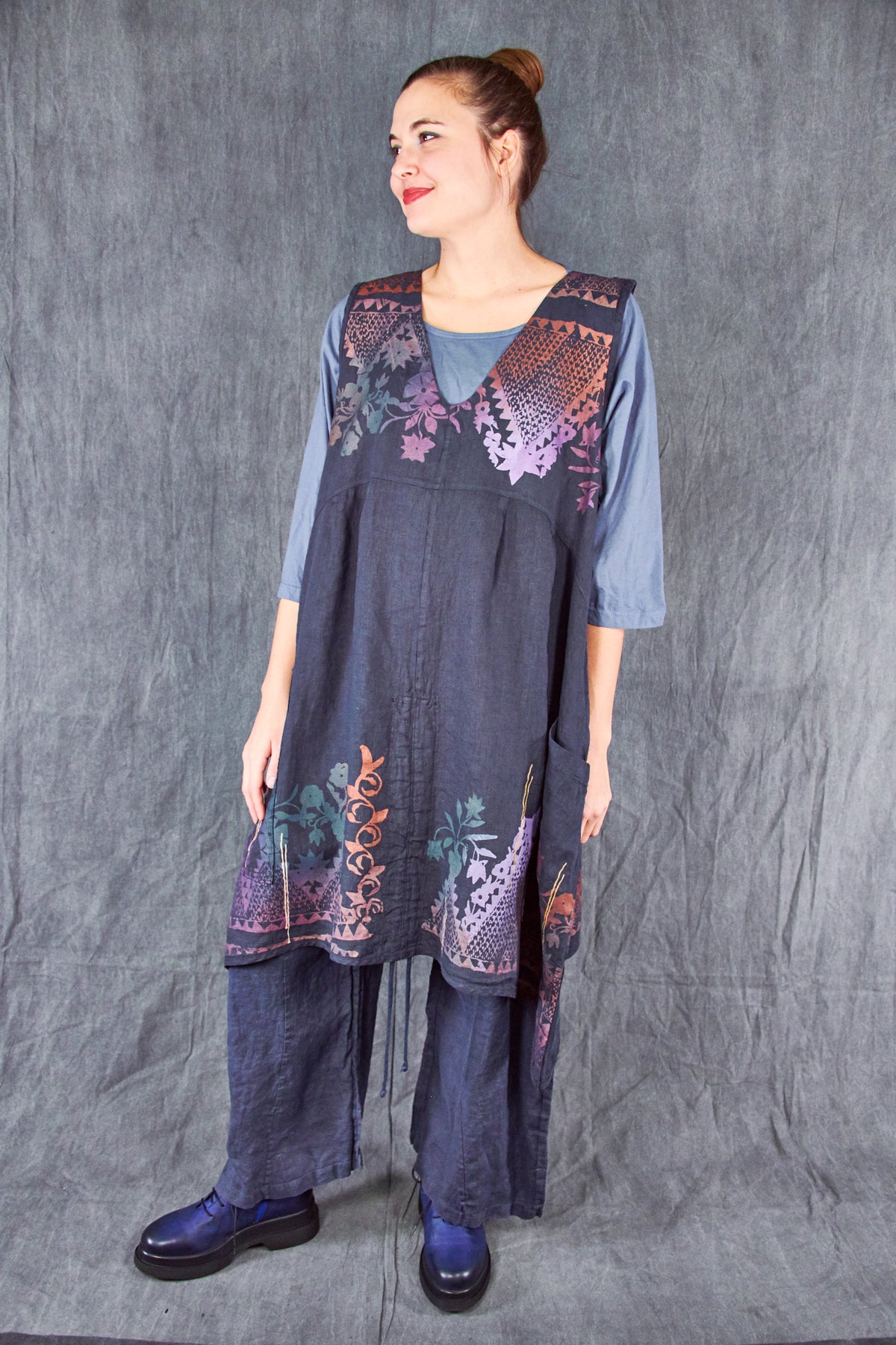 A favorite year-round color in a mid-weight linen jumper to dress up any outfit. Detailed pinches, curved hemline, and deep pockets add to the perfectly flattering A-line shape. Long in the front, and even longer in the back.