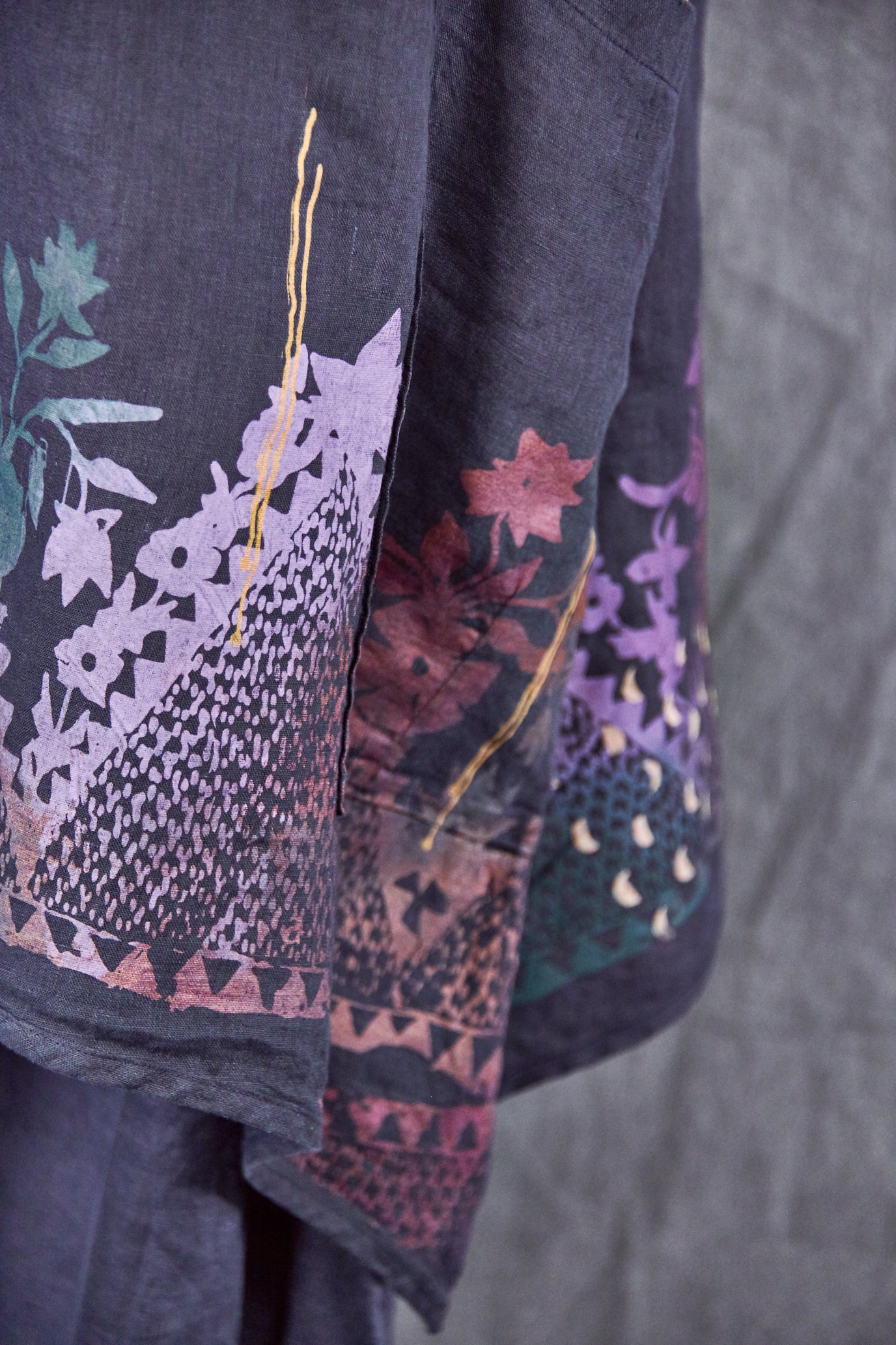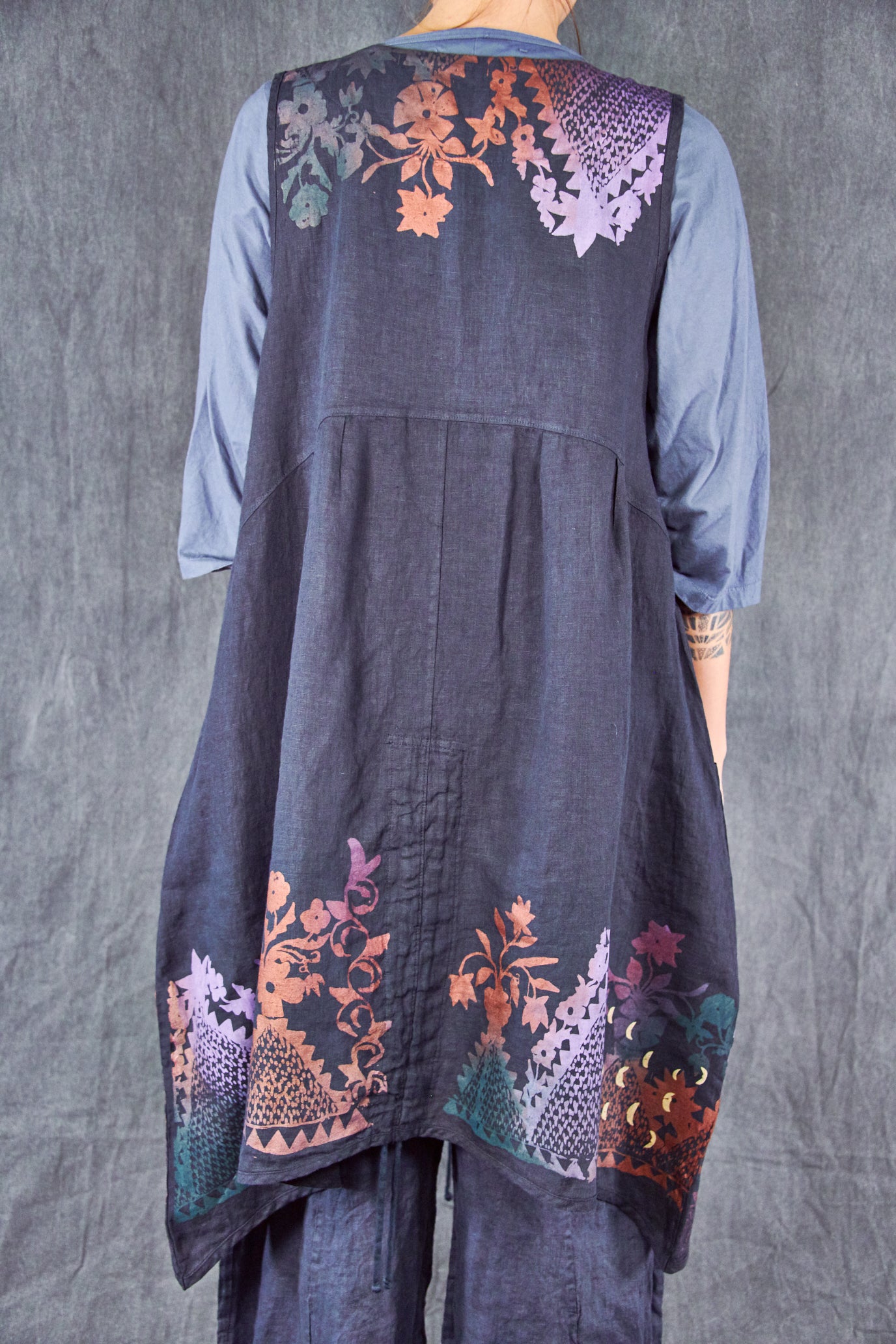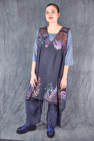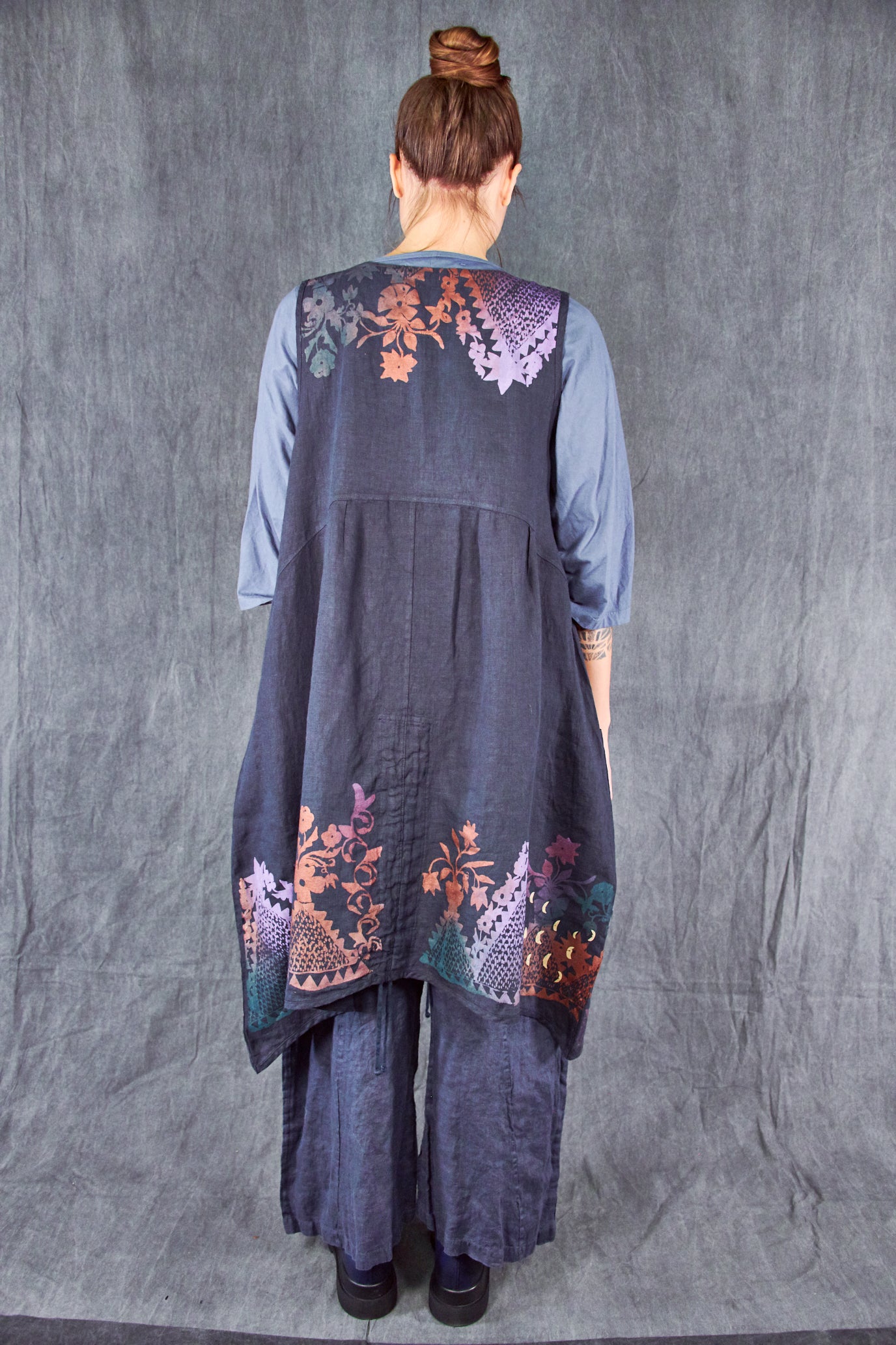 A favorite year-round color in a mid-weight linen jumper to dress up any outfit. Detailed pinches, curved hemline, and deep pockets add to the perfectly flattering A-line shape. Long in the front, and even longer in the back.