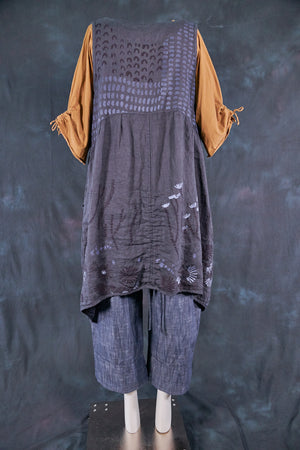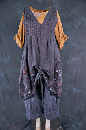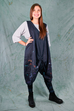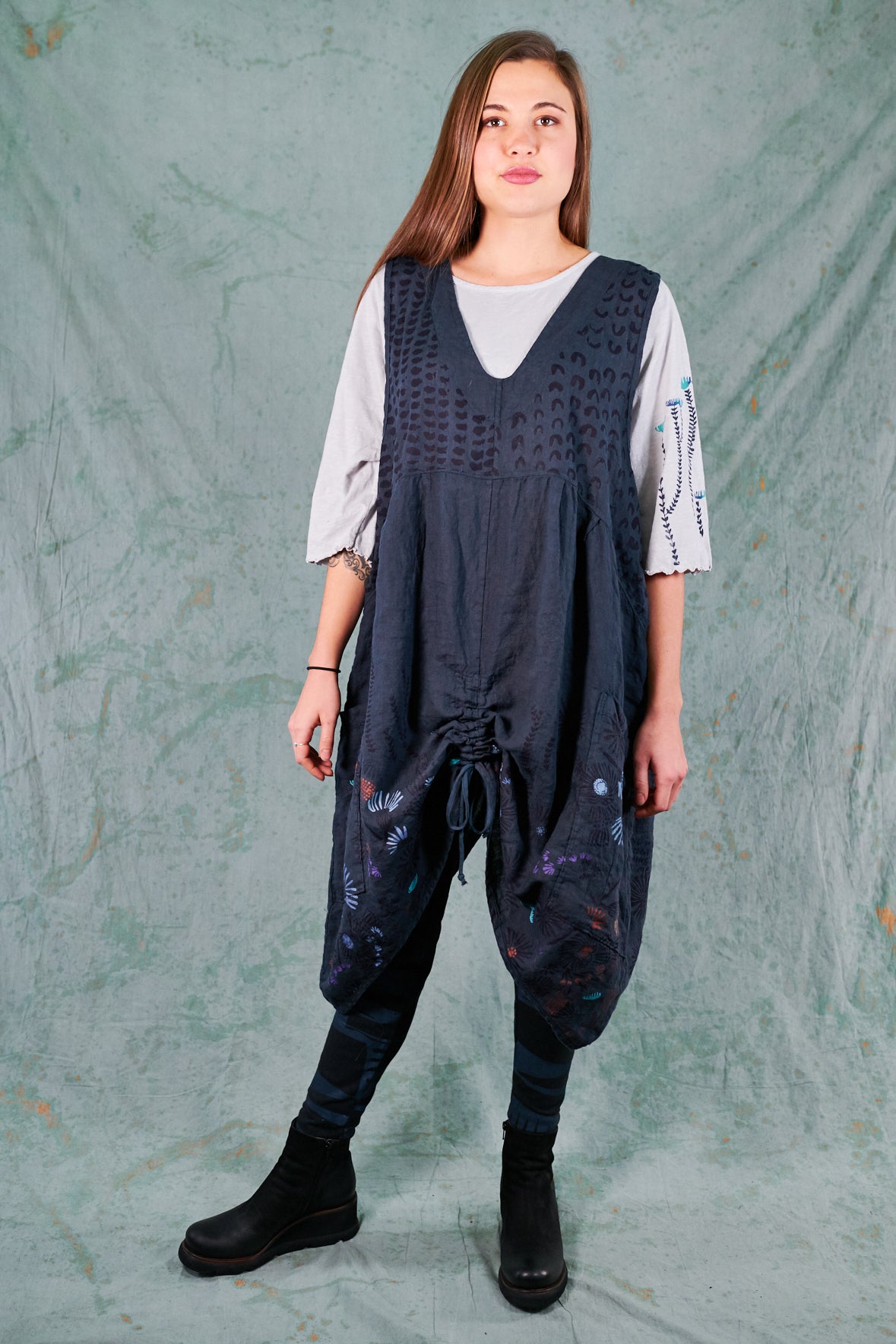 This mid-to heavy weight linen jumper is a chameleon and has many uses from lounging at home, to dressing up, to traveling ( oooh remember that?) I am saving mine for my next flight to Scotland. The pockets! Detailed pinches, curved hemline, and deep pockets add to the perfectly flattering A-line shape. Long in the front, and even longer in the back.