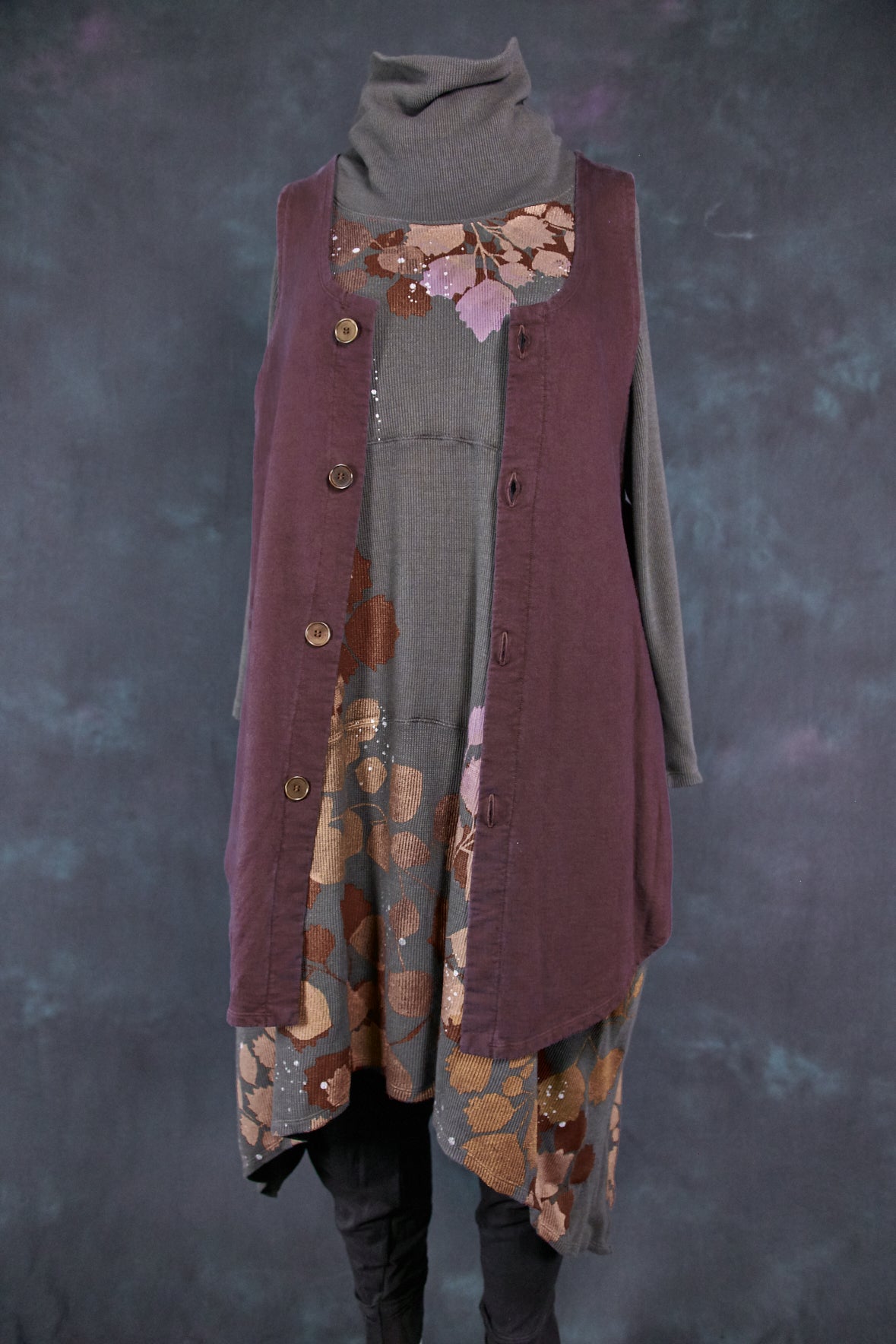 The Furber Vest is Blue Fish of times past reinvented. Made from organic cotton in a heavy french terry. We remade this favorite vintage style to complete your Blue Fish wardrobe! It is a most perfect layering piece (worn over one of our vector tunics, cafe tees or mariposa , it looks truly extraordinary)... dotted with four funky, buttons on the front (wear open or closed!).