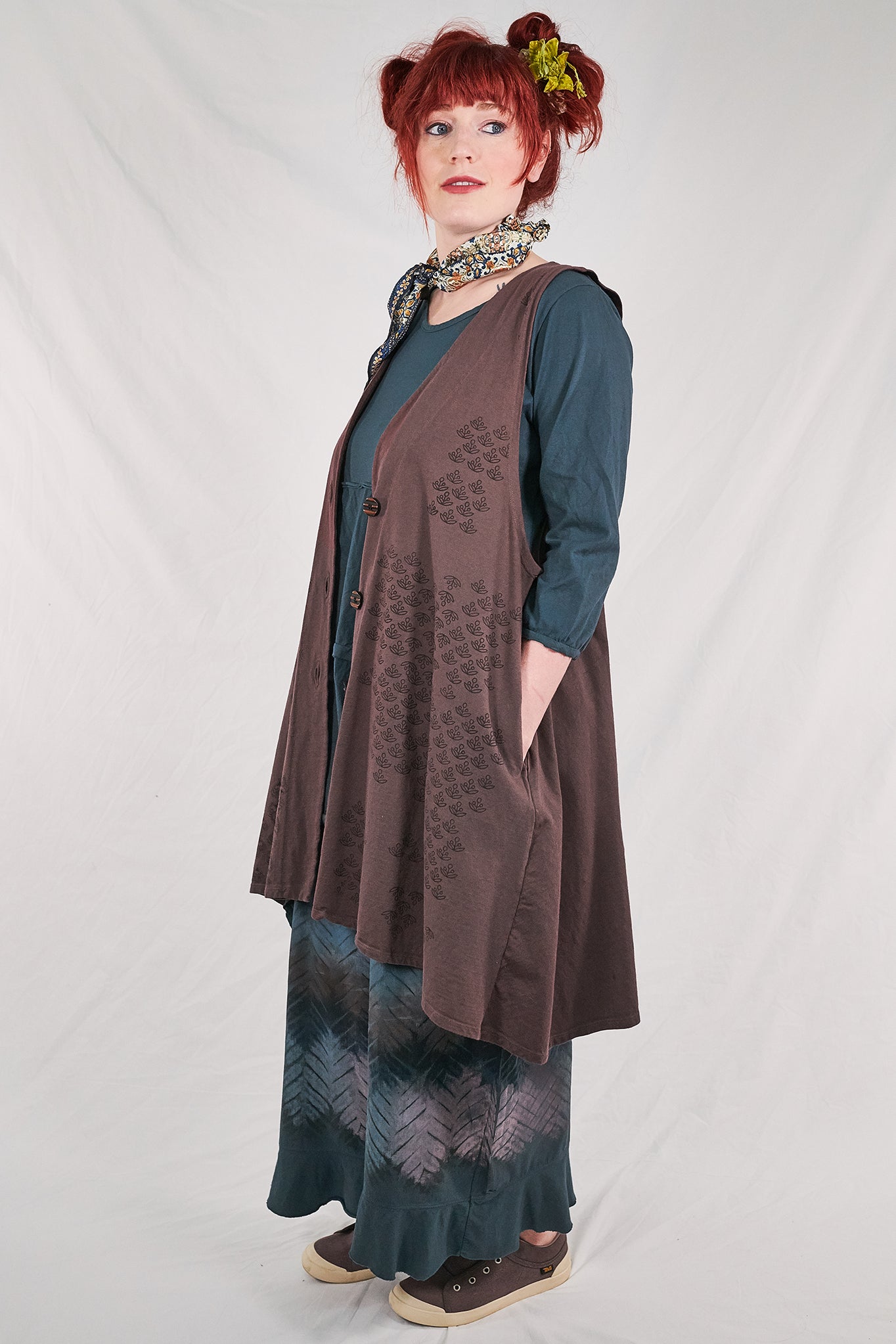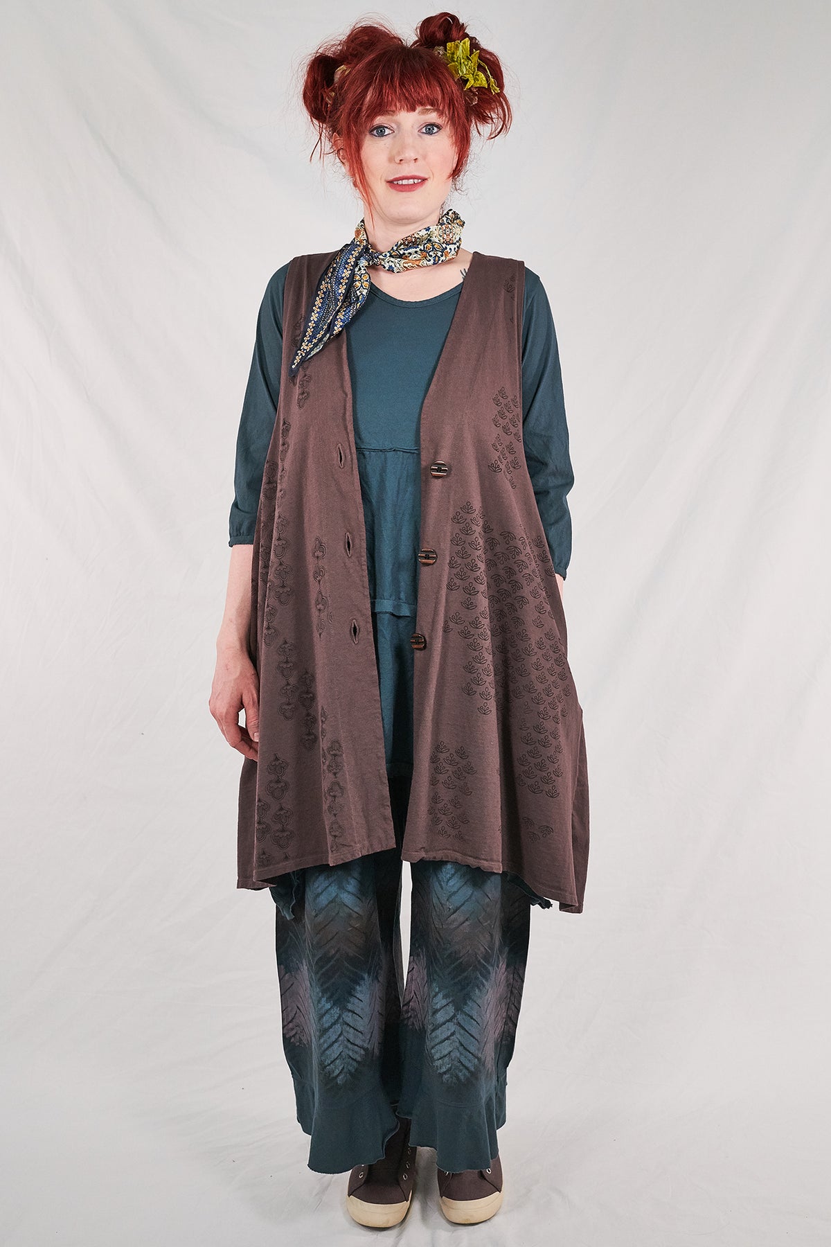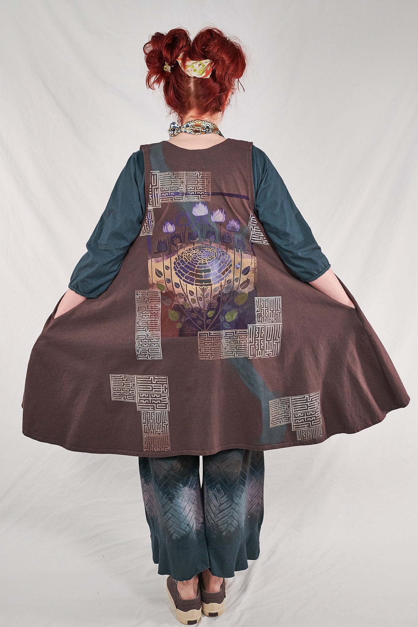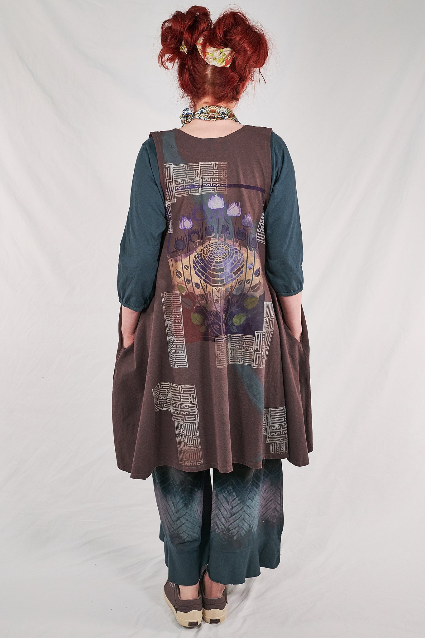 The Victoria Vest is classic Blue Fish reinvented. We remade this favorite vintage style to complete your Blue Fish wardrobe! It'll take you from summer to fall & beyond as the most perfect layering piece (worn over one of our vector tunics, it looks truly extraordinary). made from soft & sturdy 100% organic cotton jersey, dotted with three funky, big buttons on the front (wear open or closed!), & covered in a daring, all-over mystical print that will turn heads everywhere you go. A new favorite!