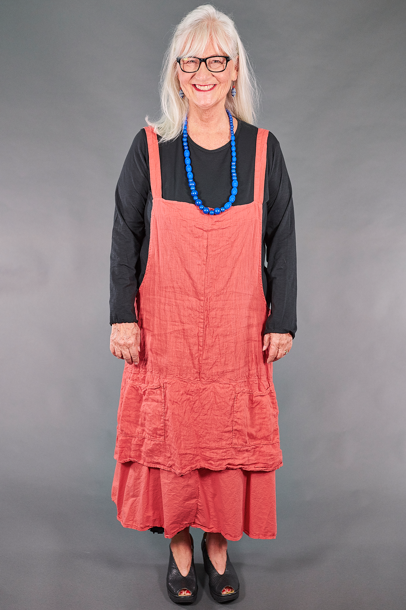 An apron fit for an artist! Made from our favorite linen with a flowing tier of cotton lawn fabric beneath. This midlayer is guaranteed to add cheer & style to every ensemble. Two pockets on the front are perfect for your necessities.