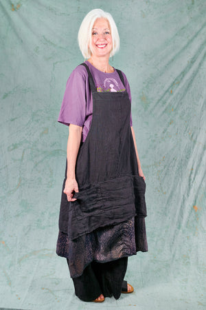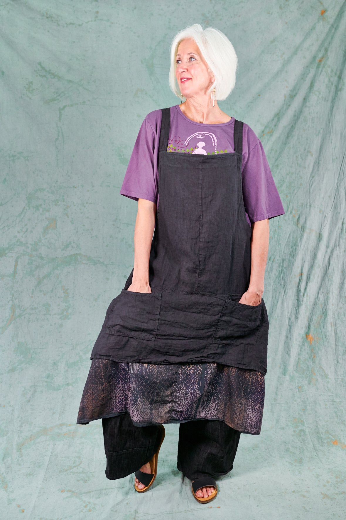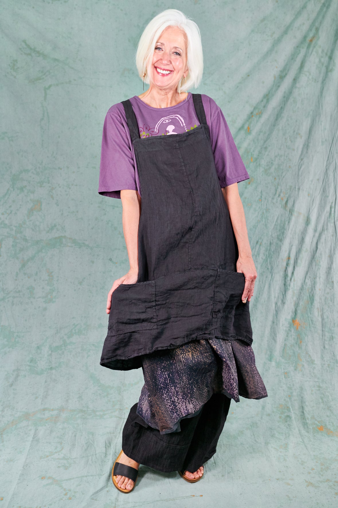 An apron fit for an artist! Made from our favorite linen with a flowing tier of cotton lawn fabric beneath. This mid layer is guaranteed to add cheer & style to every ensemble. Two pockets are perfect for your necessities (& paintbrushes)! Adjustable ties in the back allow you to adjust length. Our model is 5'6".