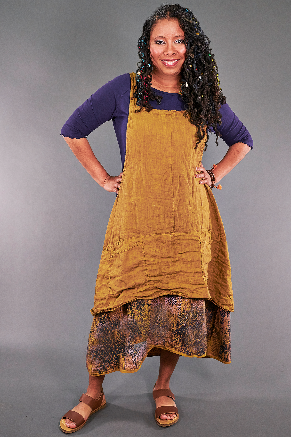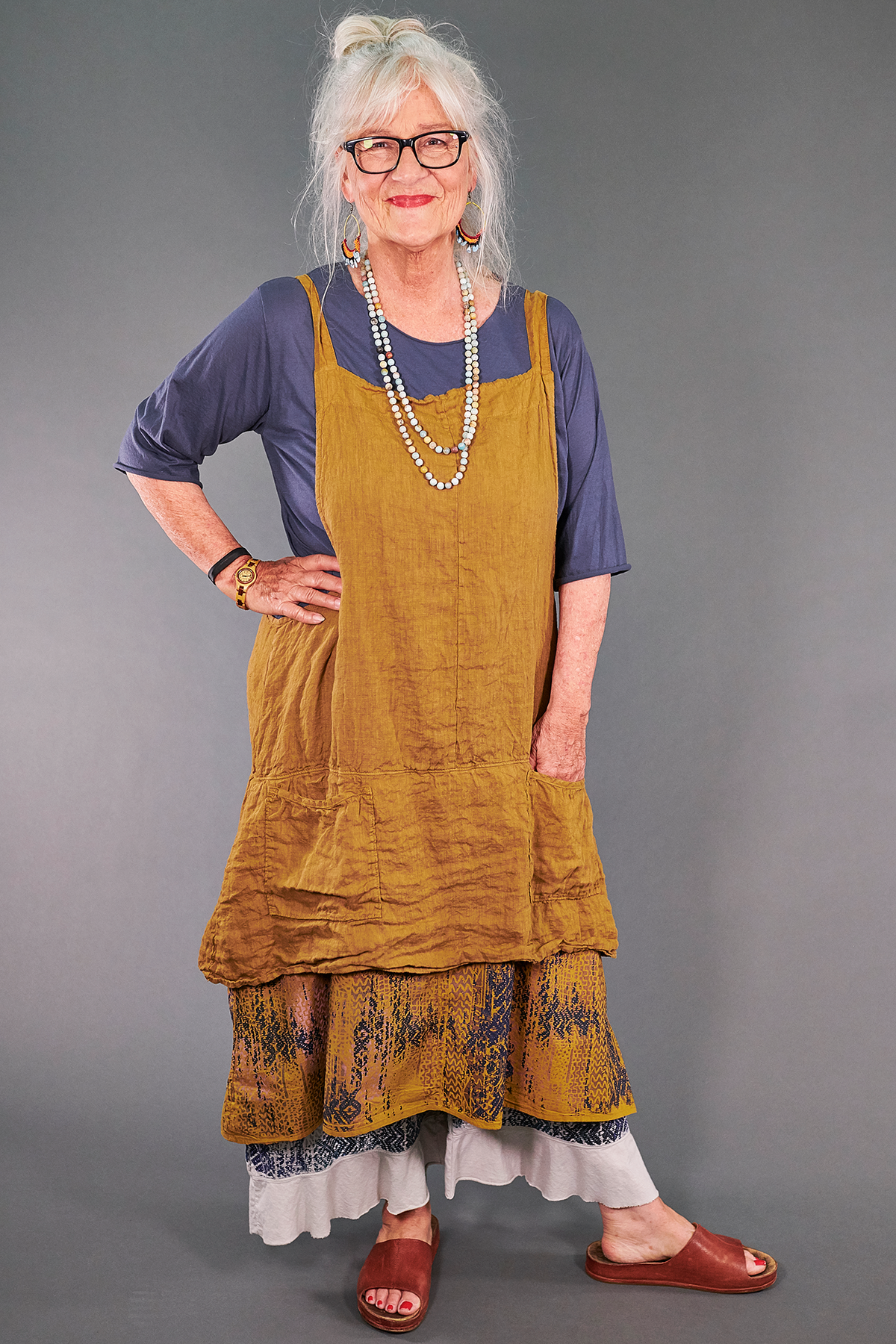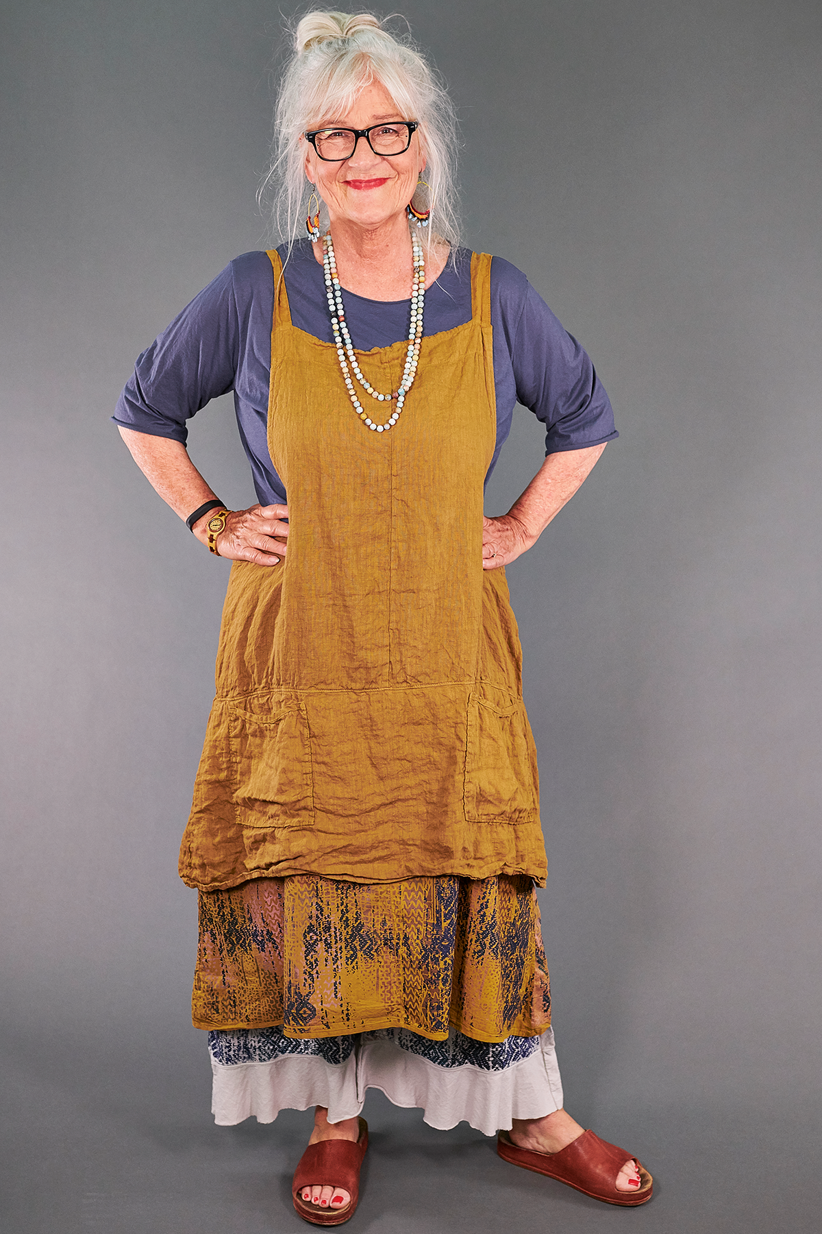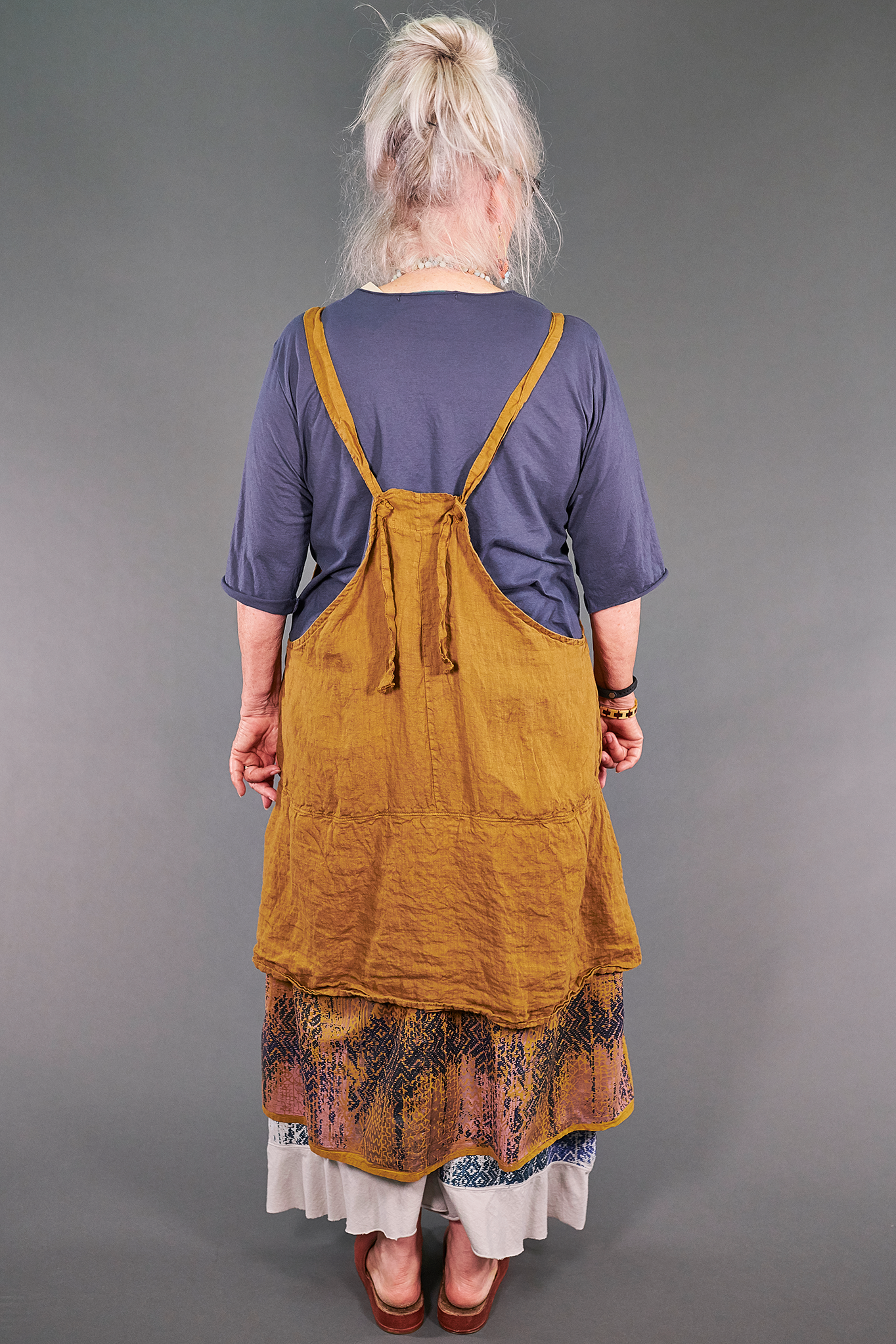 An apron fit for an artist! Made from our favorite linen with a flowing tier of cotton lawn fabric beneath. This mid layer is guaranteed to add cheer & style to every ensemble. Two pockets are perfect for your necessities (& paintbrushes)! Adjustable ties in the back allow you to adjust length.
