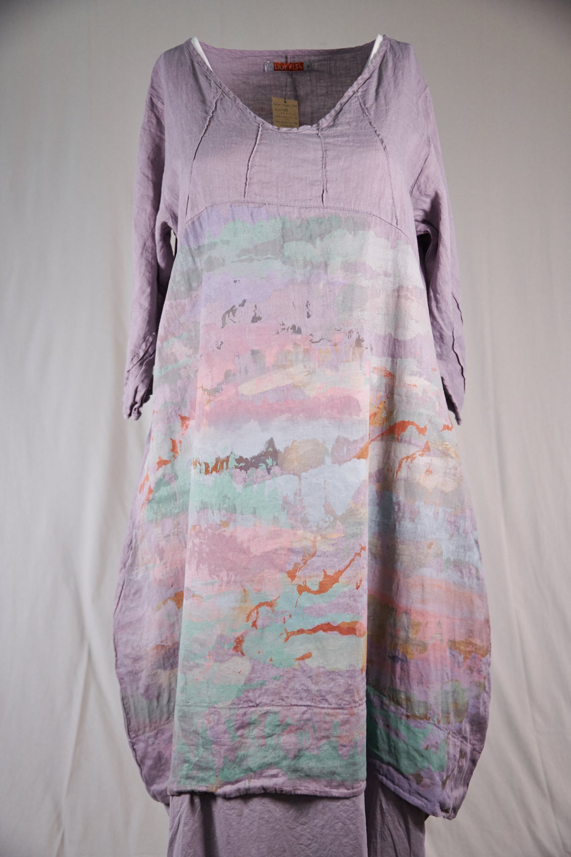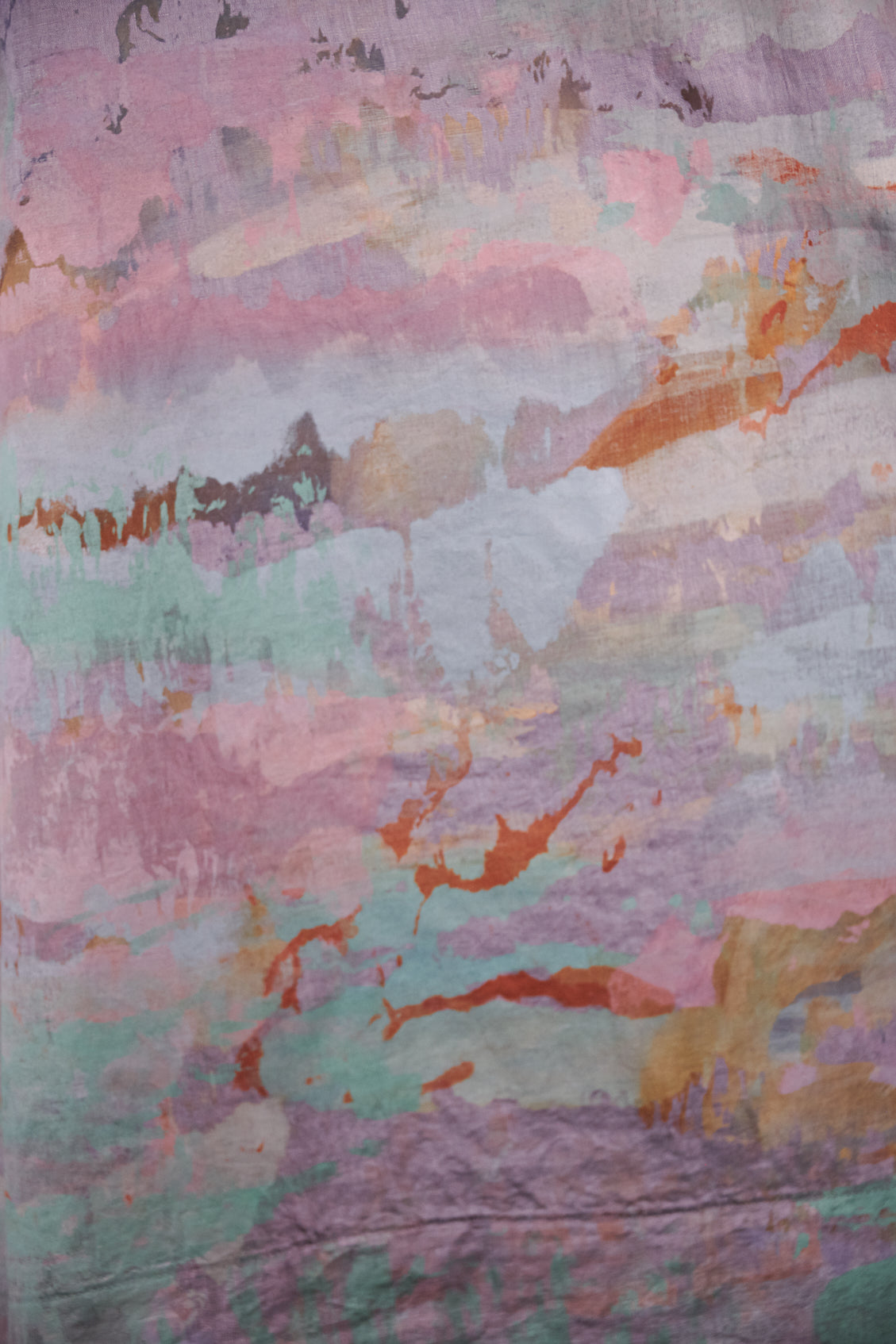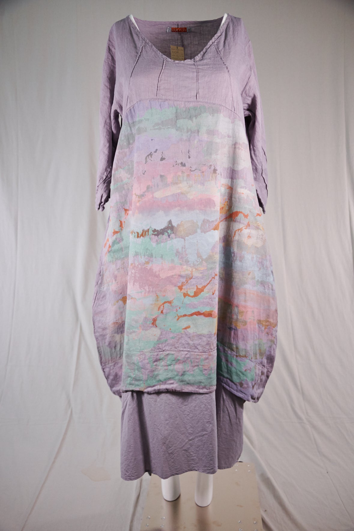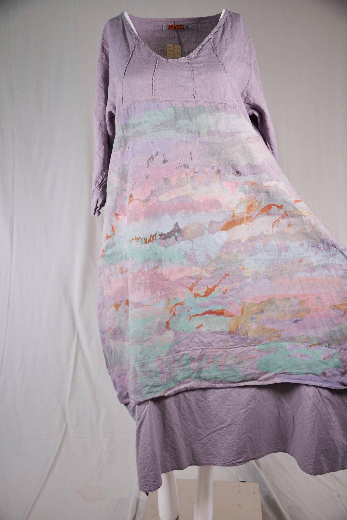 A tier of lightweight, lawn fabric peeks out from beneath, adorned with beautiful hand-printed from our studio. Wear to a wedding--a garden party--a gallery opening or a fancy lunch out... your imagination is the only limit.