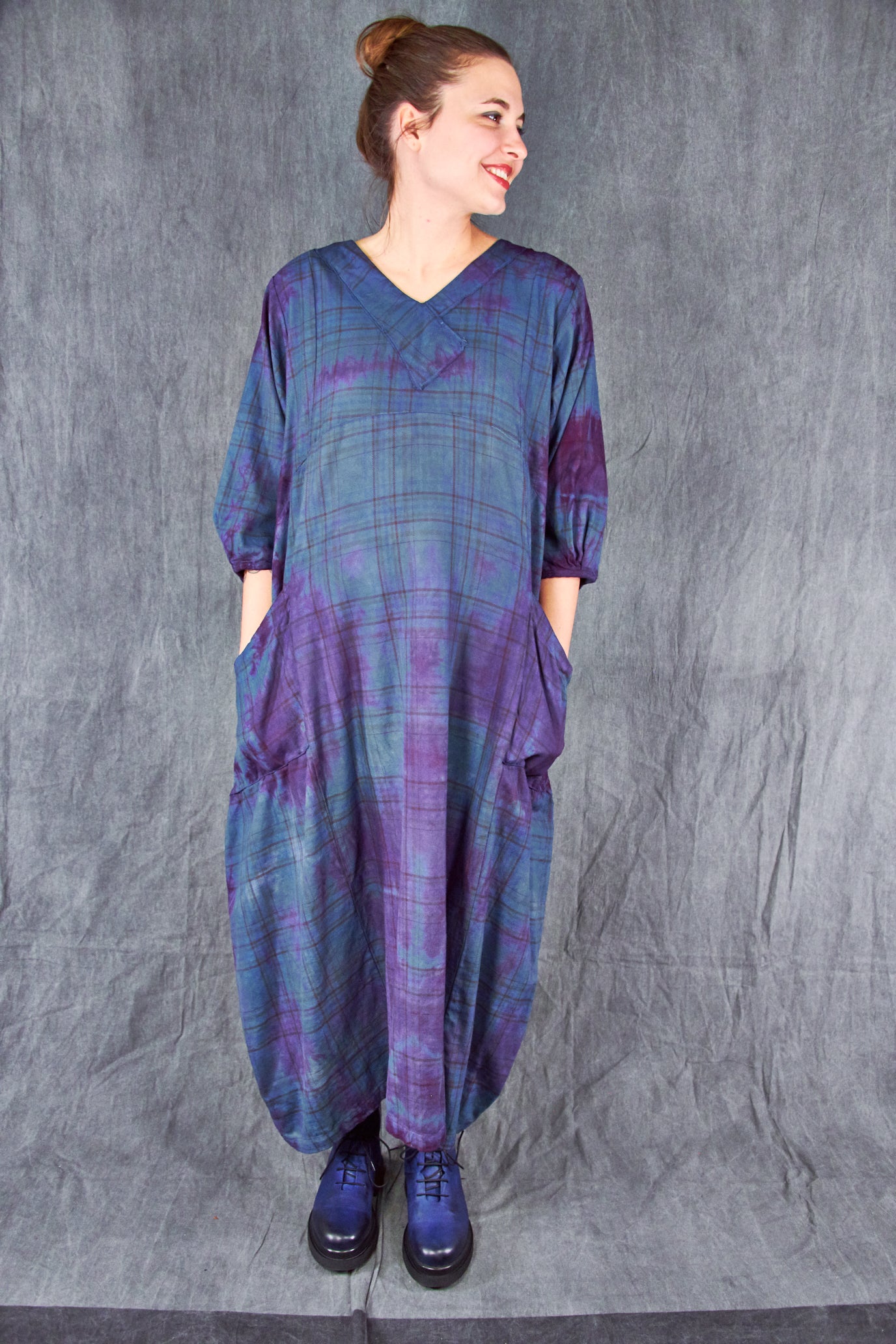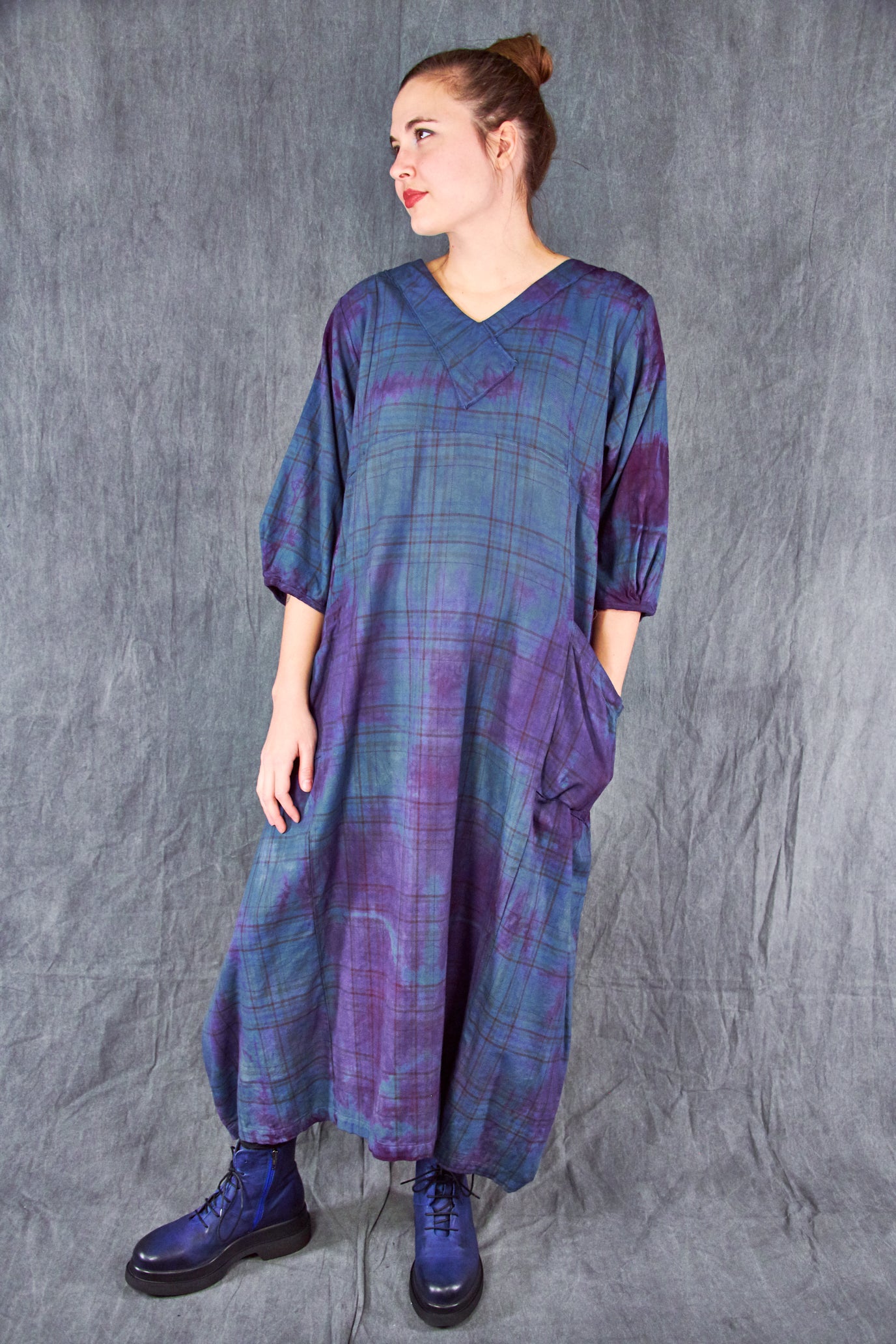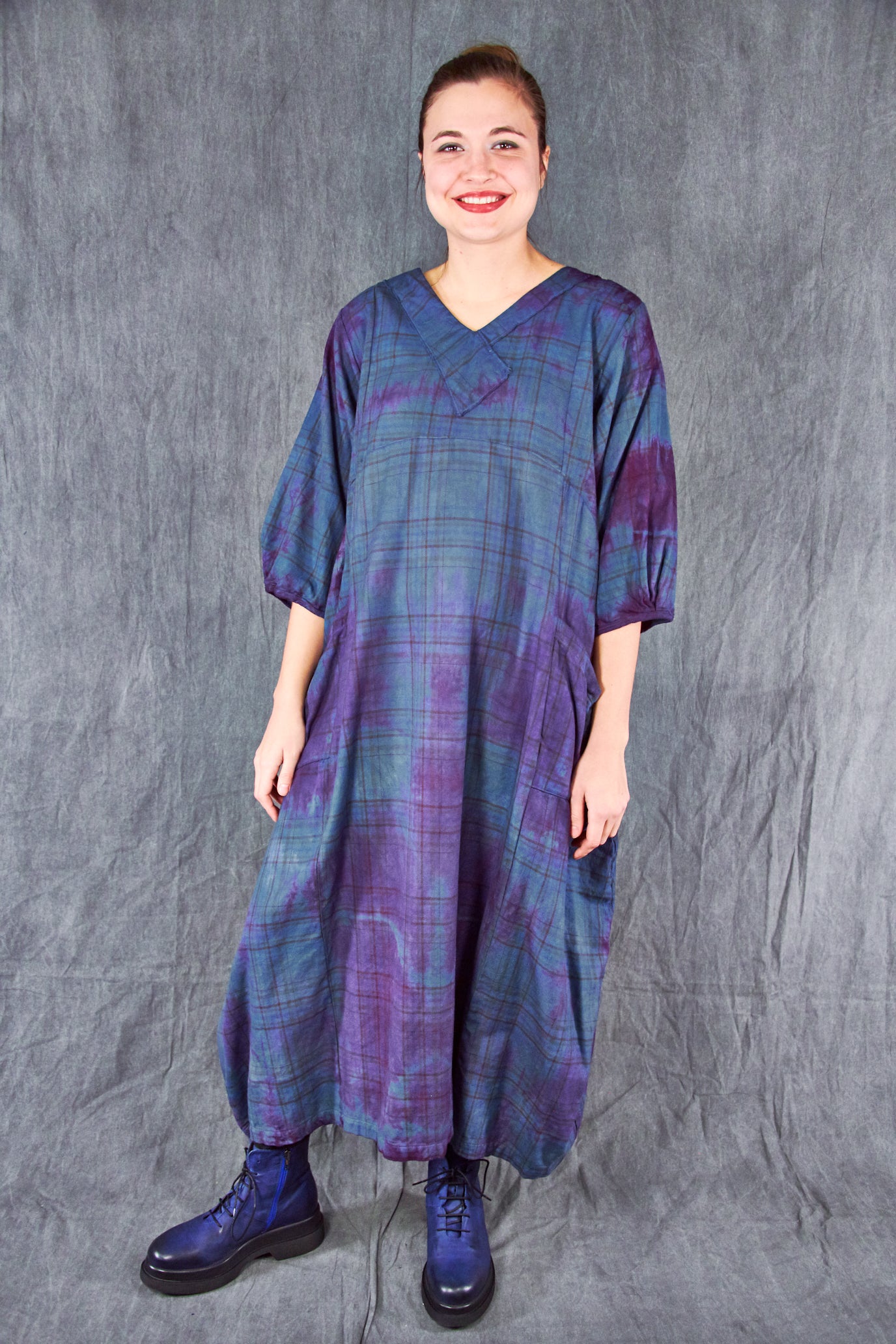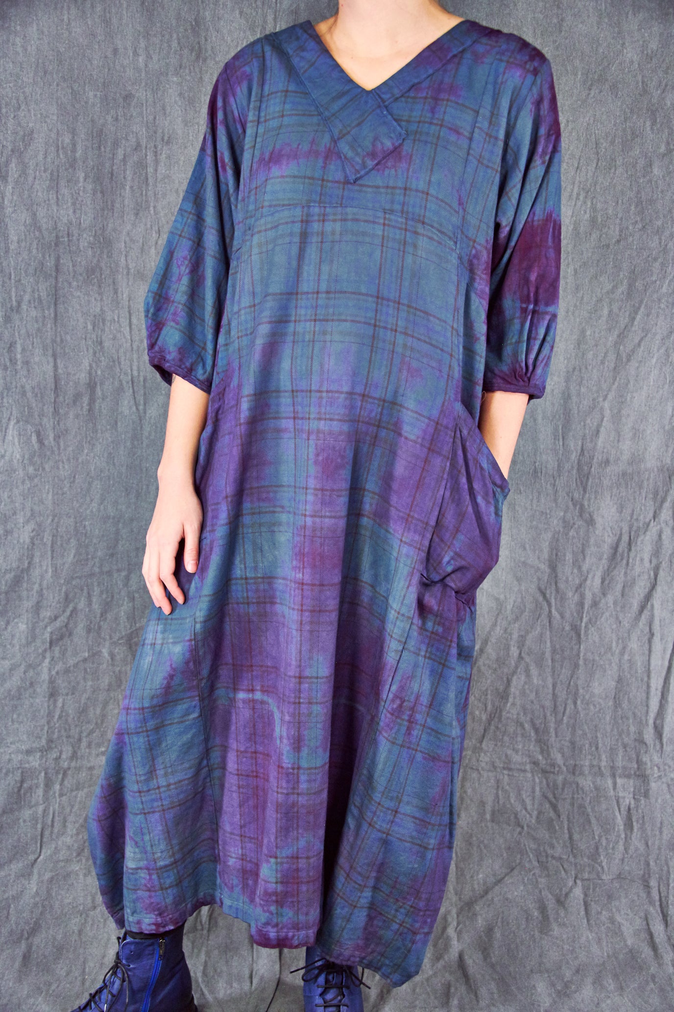 When I first saw them, I thought- 'these dresses are blue moon dresses'... they are rare and gorgeous. We have crafted them in the USA from a perfect-weight brushed cotton plaid which we have dyed several times by hand.
