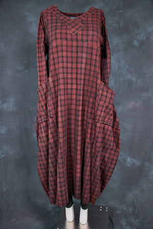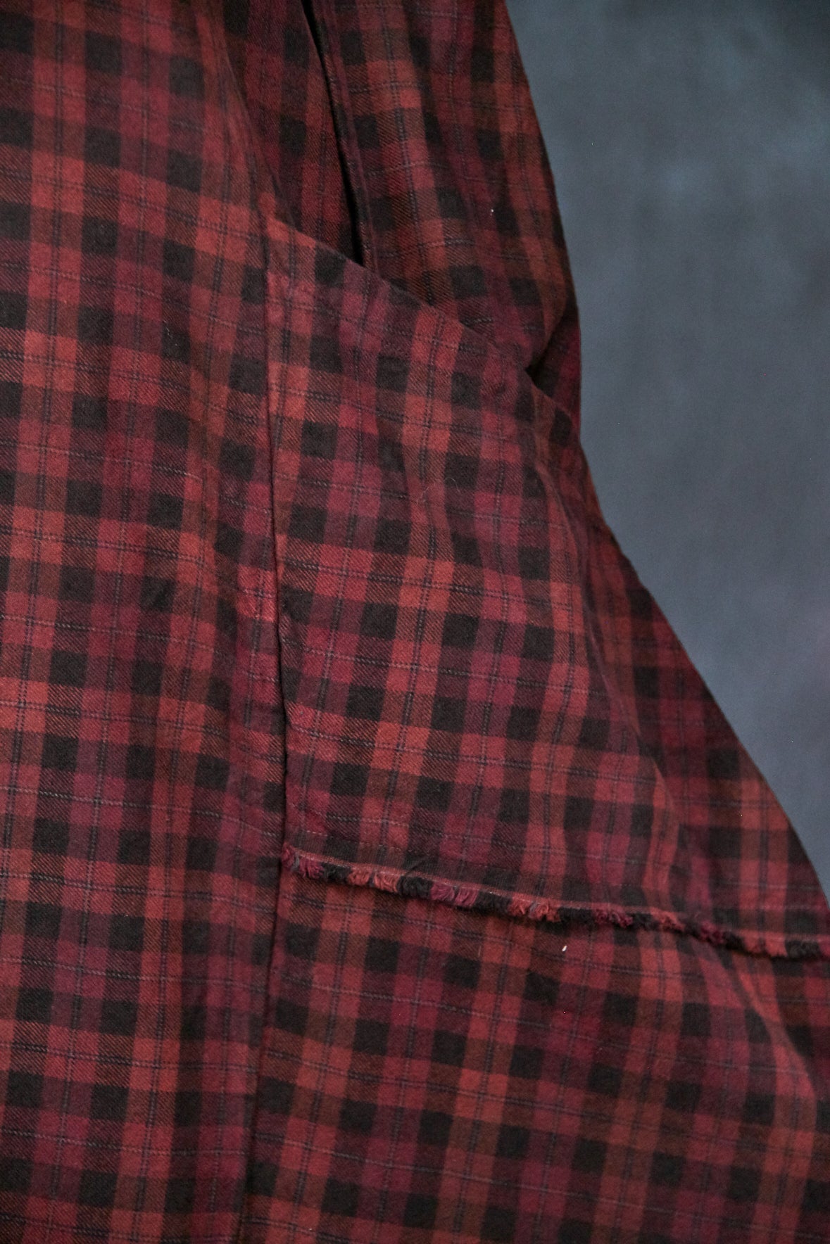 When I first saw them, I thought- 'these dresses are blue moon dresses'... they are rare and gorgeous. We have crafted them in the USA from a perfect-weight brushed cotton plaid which we have dyed several times by hand. Each is unique. The style is perfect, a favorite lengthened to 50" which flatters us all whether shorter or taller. Lovely detailed crossover neckline. Made in extremely limited quantities. A dress to fall in love with.