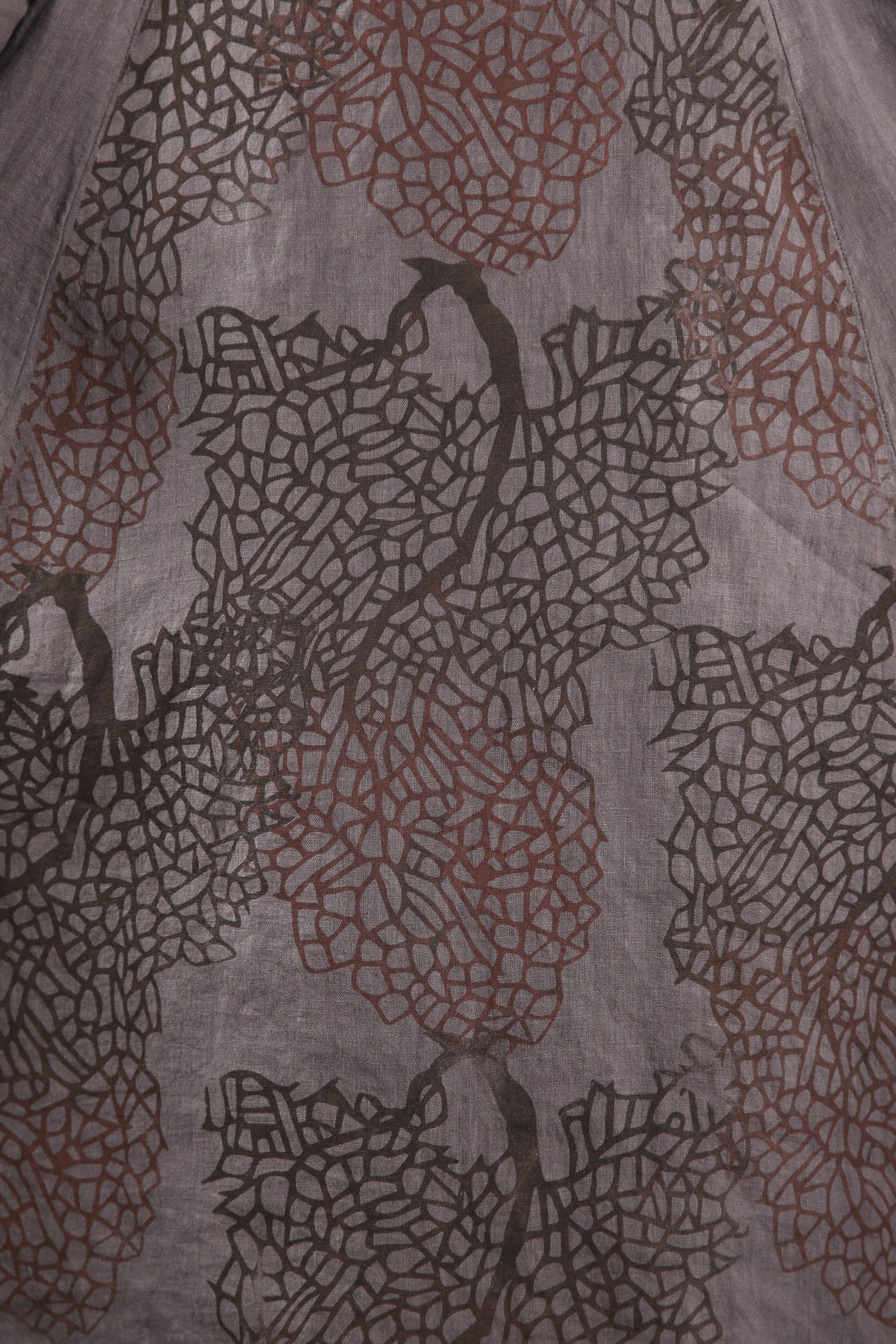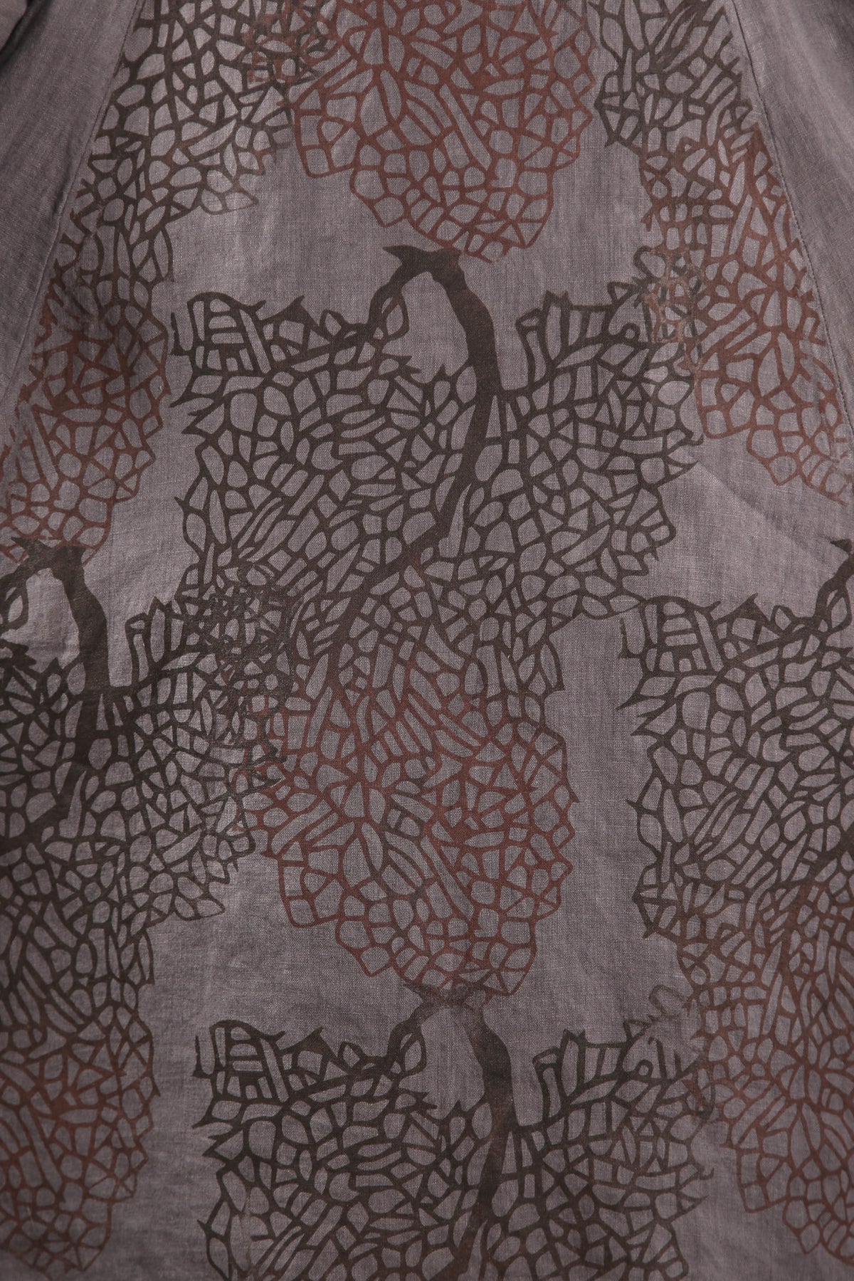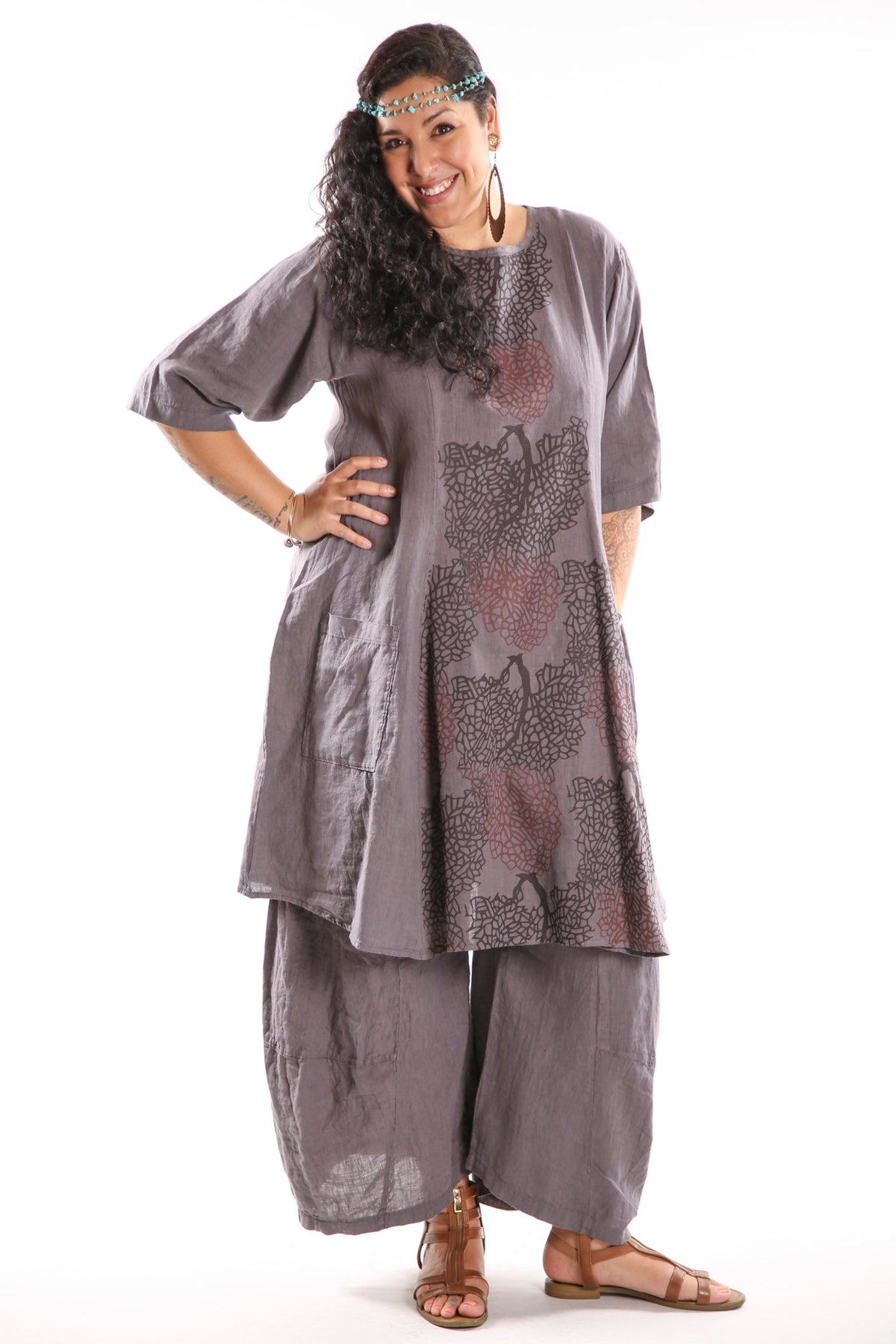 A flattering dress for those with curves. Panelled for shaping, yet the fit from waist to hem is quite generous. Length works well layered over leggings, or wide pants or a long skirt. Pockets, and gorgeous printed layered designs fill the front panel.