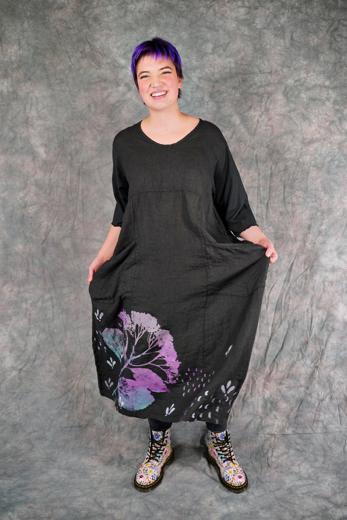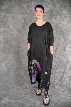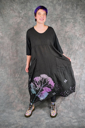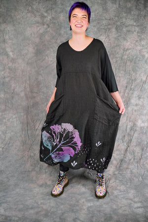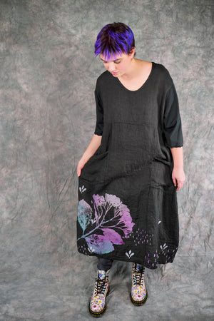 Patch pockets add functionality… what could be better than a dress with pockets? The gently belled shape is perfectly flattering for every body. Inspired hand printed designs are.... just beautiful! Iron the linen to keep it wrinkle-free, or do what we do and let it naturally wrinkle to create a softer texture. This dress is bound to become a new favorite in your Blue Fish wardrobe.