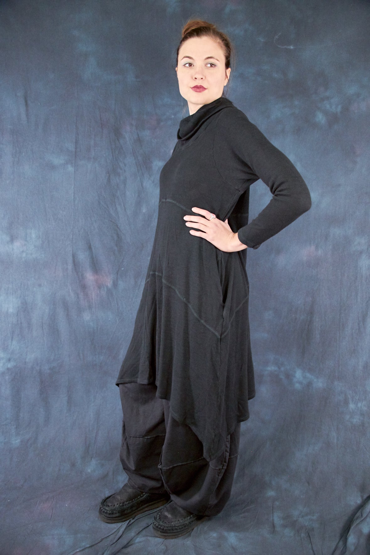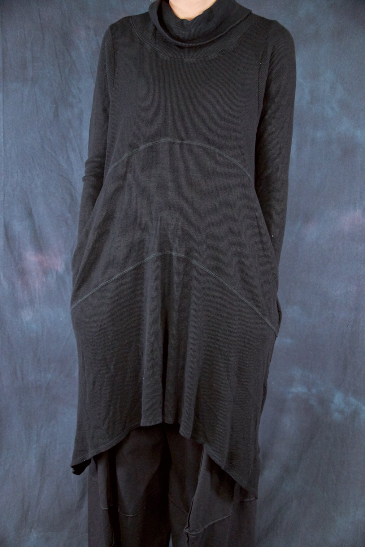 Longer thermal tunic with pockets for your winter wardrobe. Paneled for shaping and the length works well layered over leggings, or wide pants or a long skirt. Organic cotton thermal 95% Spandex 5%