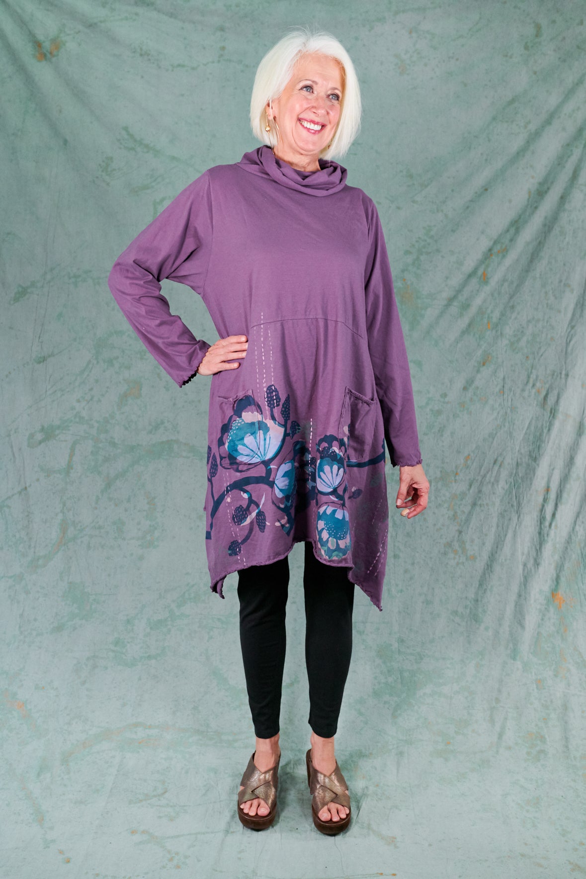 Worn as a tunic or a dress, our Cowl Dress with Pockets is an instant, all-season classic. Cosmic bits of light scatter over topography linework and macro photography of stellar moth wings. Our artists explored the intersection between place and personal memory.