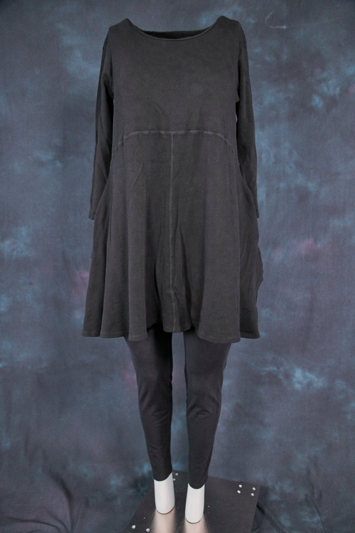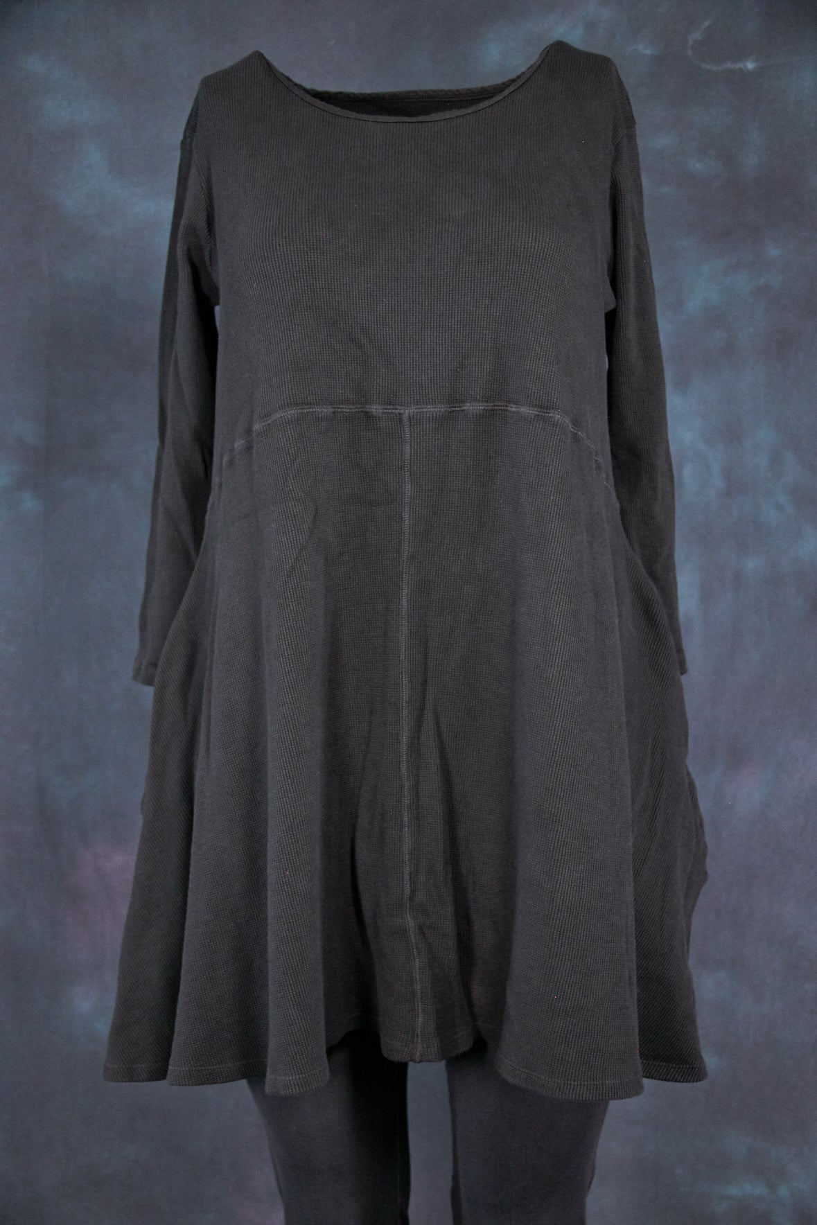 Who doesn't love a dress with pockets! Flattering silhouette you can wear with anything that works day to night. Fit to flare. Useful pockets are located in the side seams. Decorative center front and empire waistline stitching.