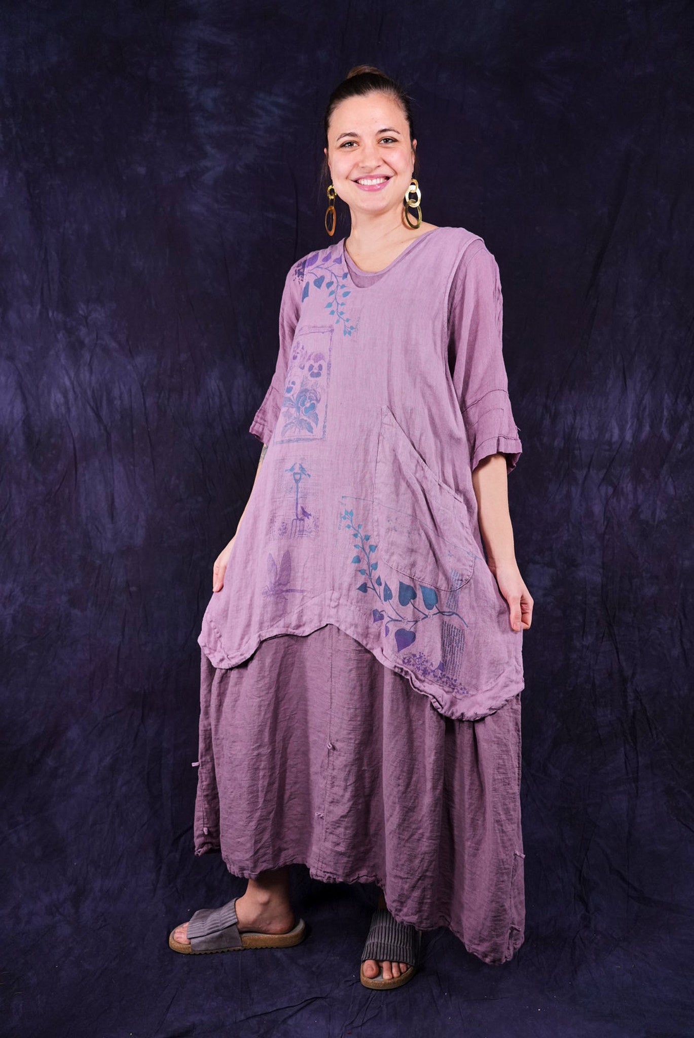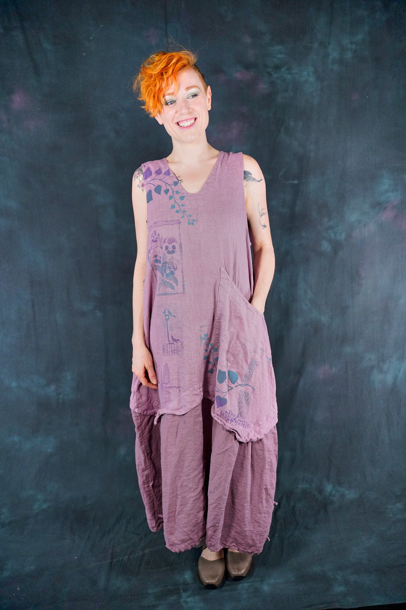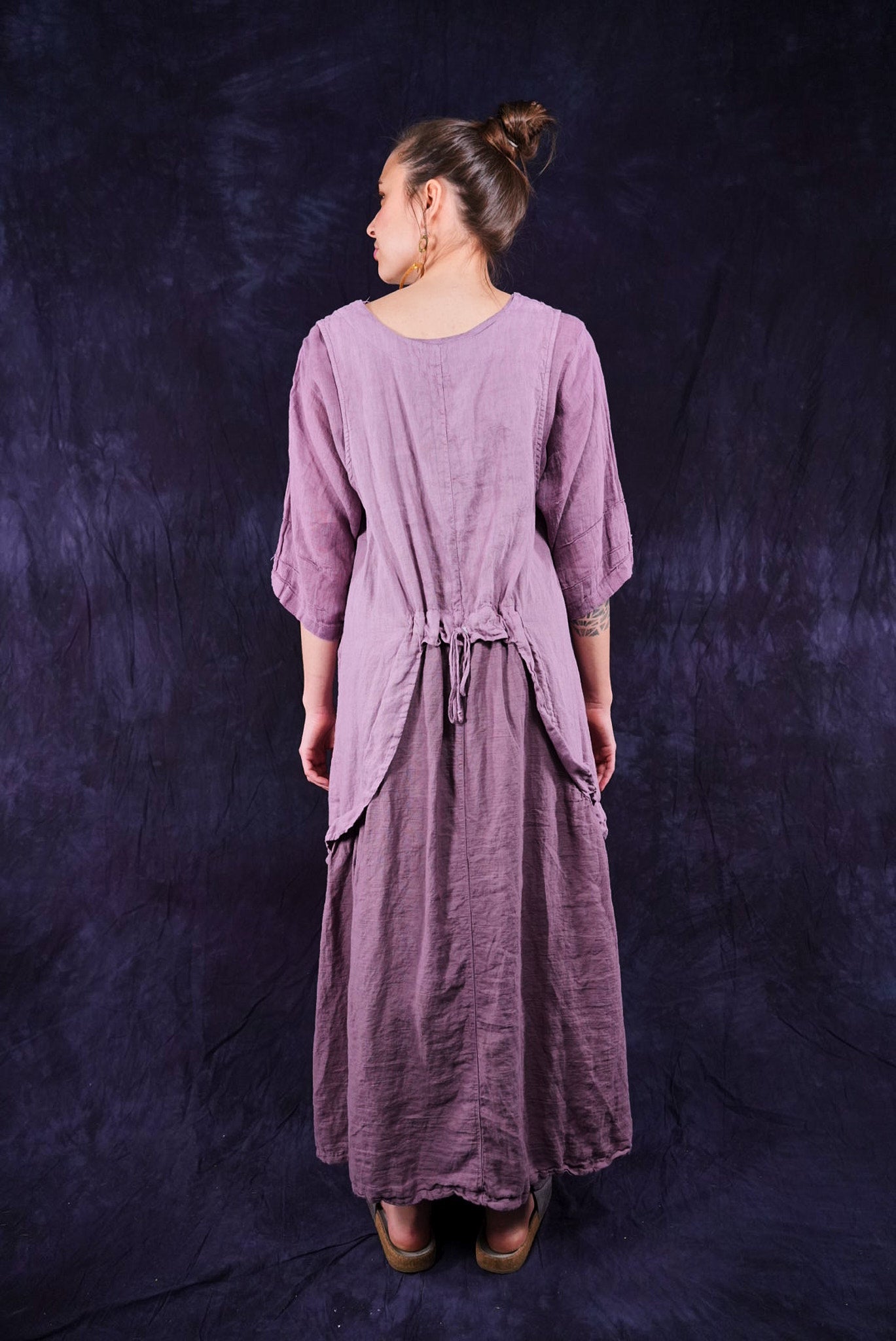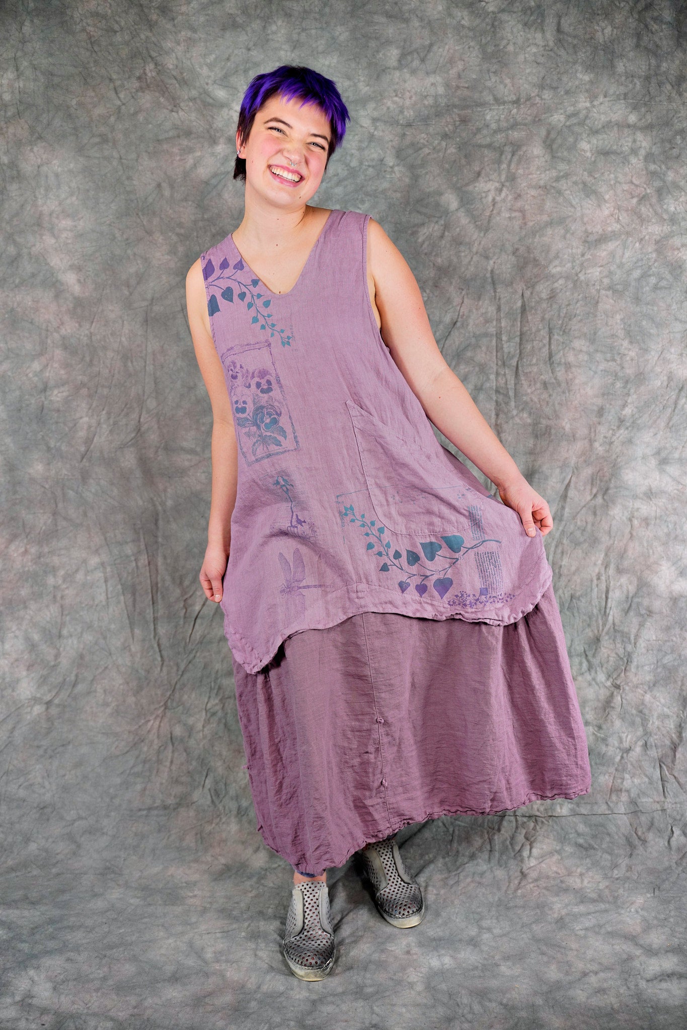 NEW Made from two types of european linen, this long jumper with deep armholes has a tie in the back to adjust the very generous width to fit any size. It comes with some strips of cotton which can be used to loop up the skirt to adjust the length and drape, too.