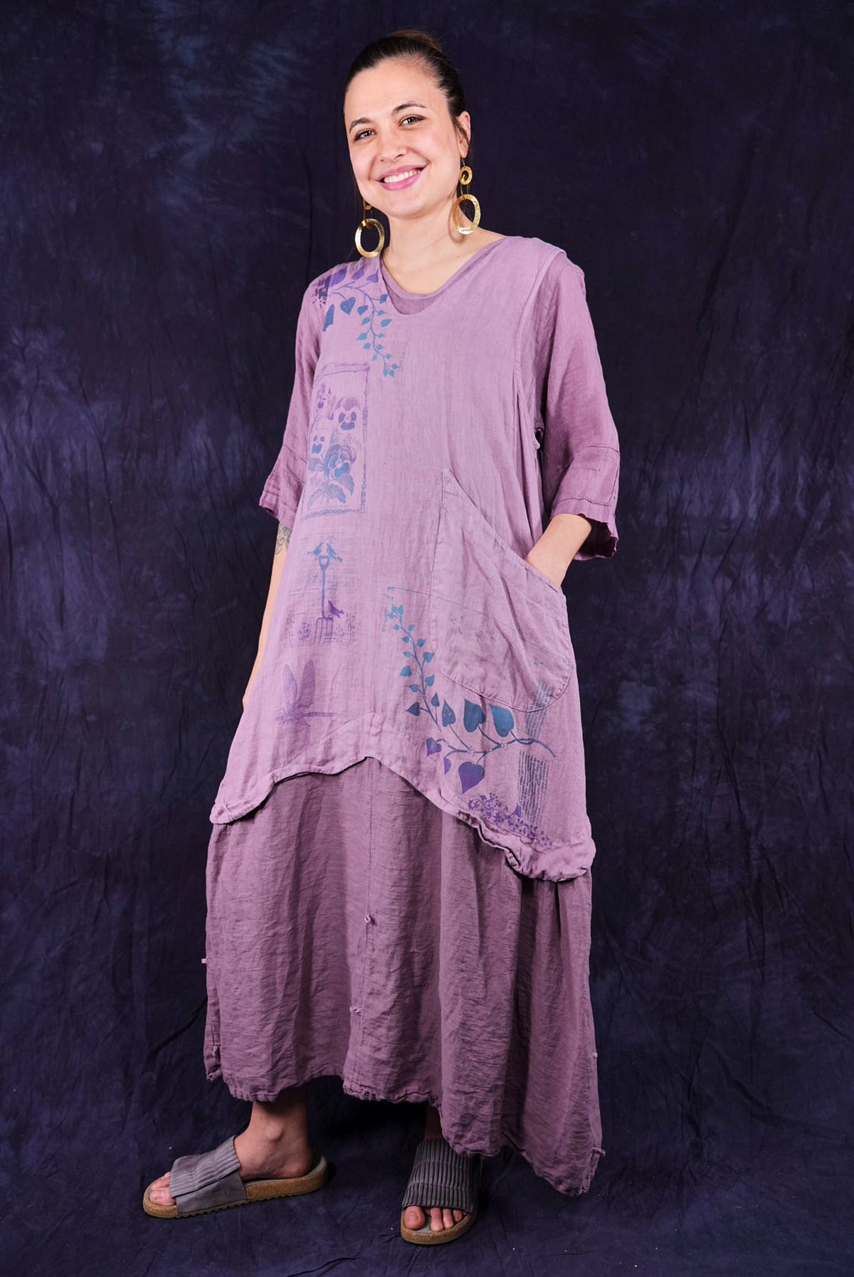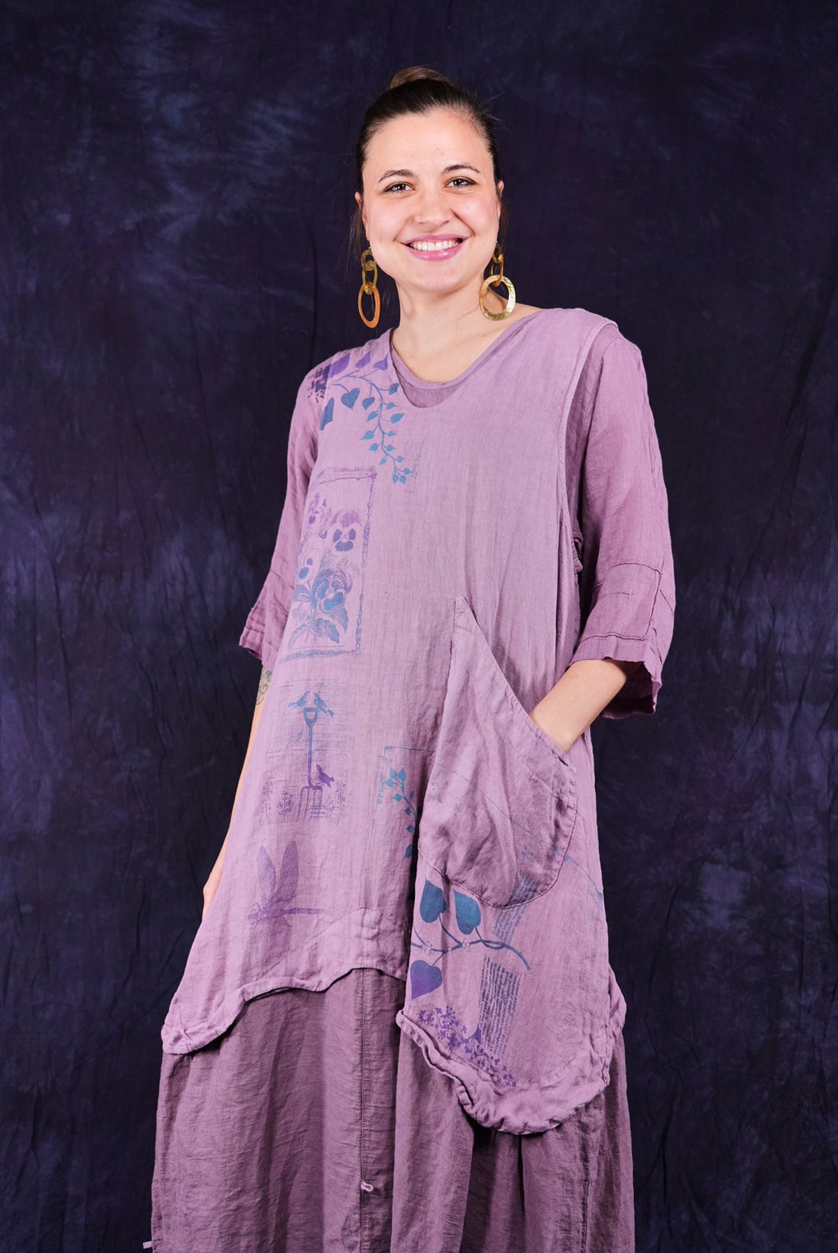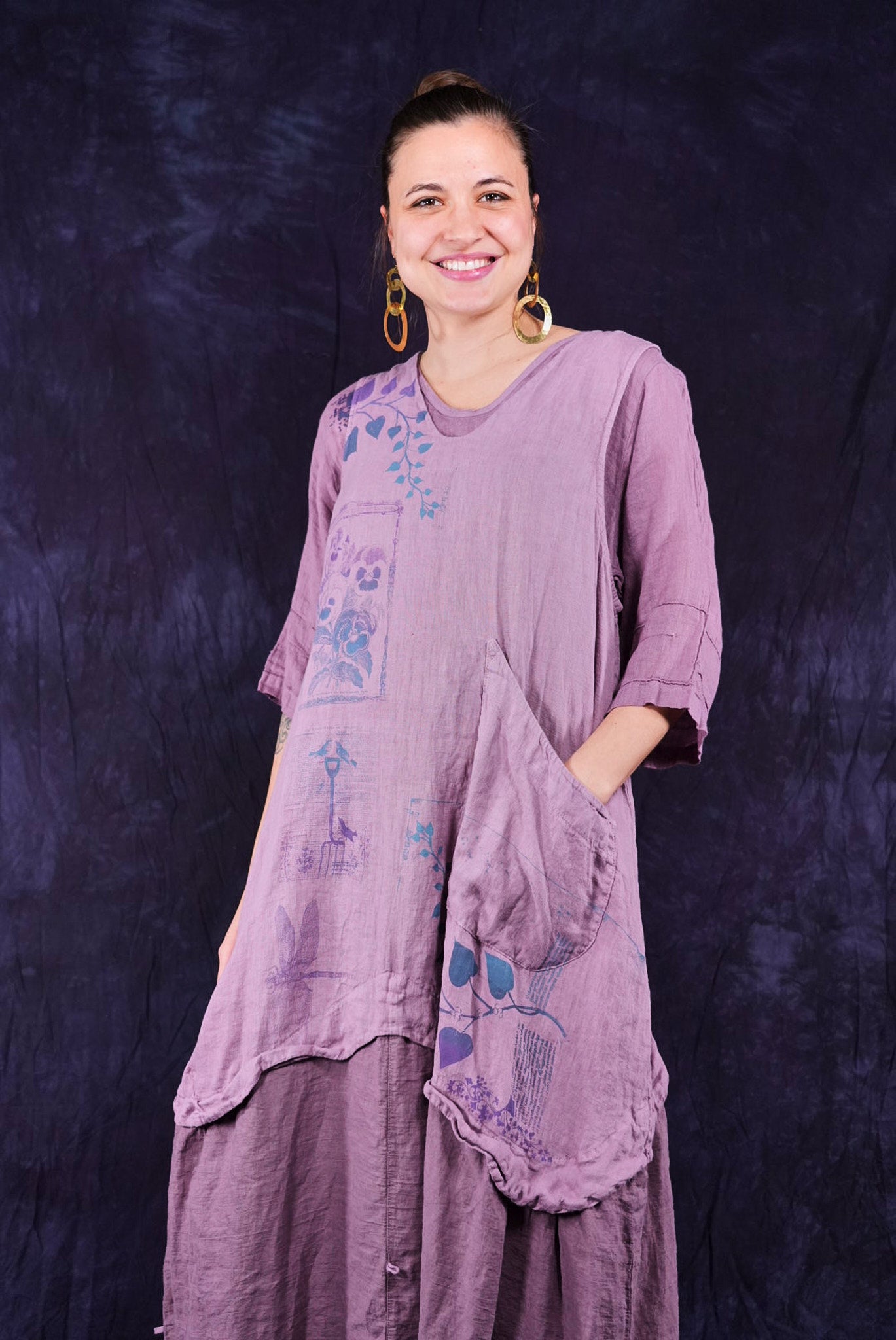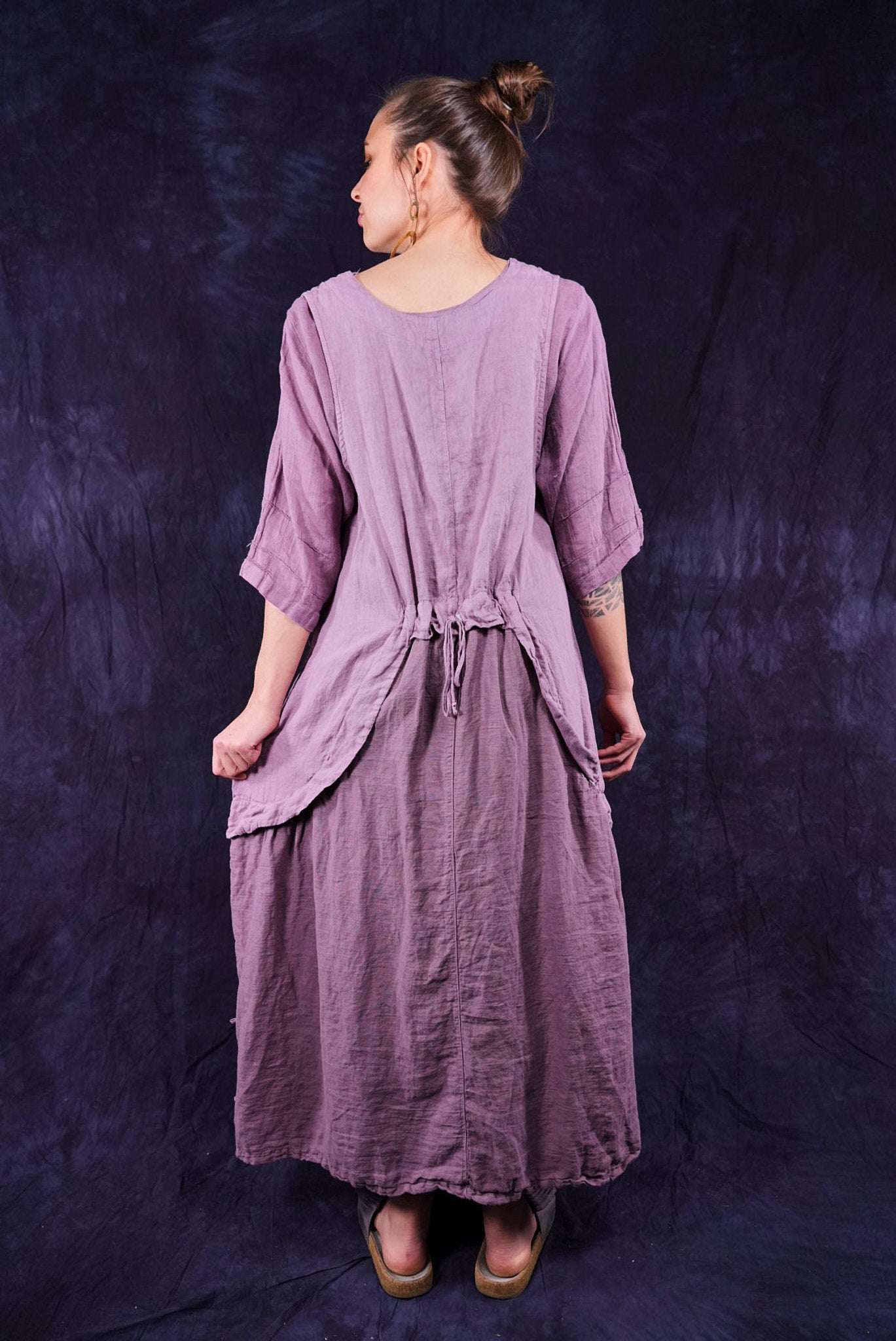 NEW Made from two types of european linen, this long jumper with deep armholes has a tie in the back to adjust the very generous width to fit any size. It comes with some strips of cotton which can be used to loop up the skirt to adjust the length and drape, too.