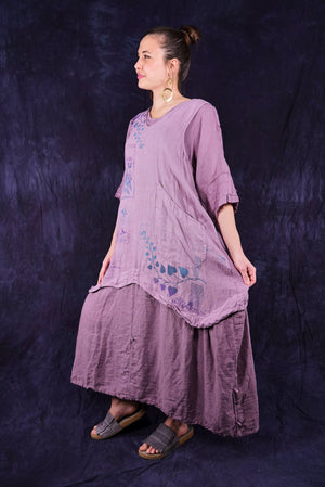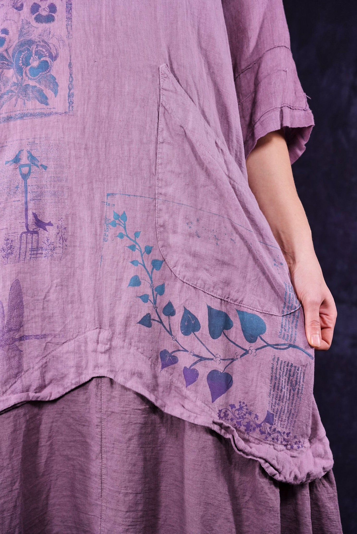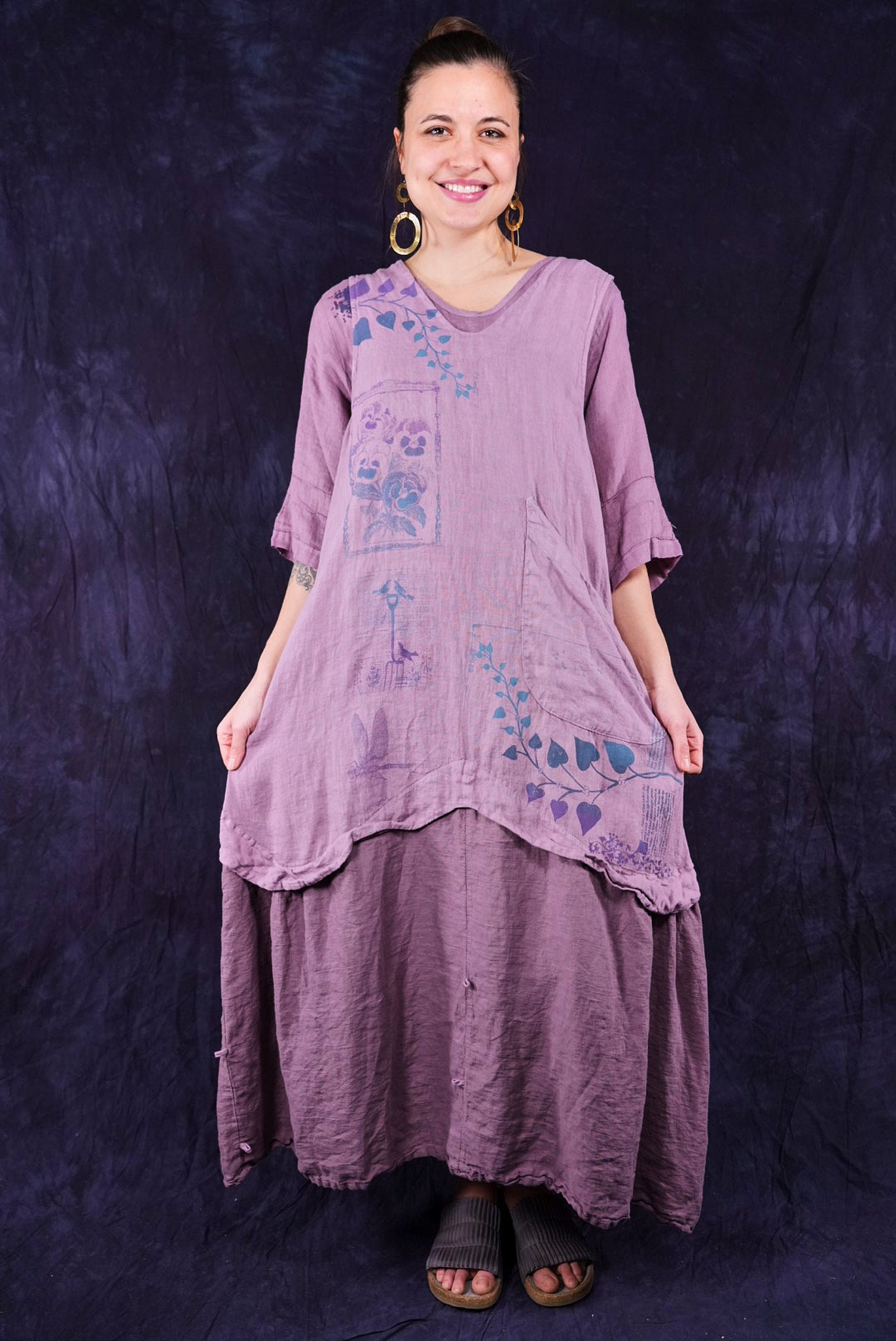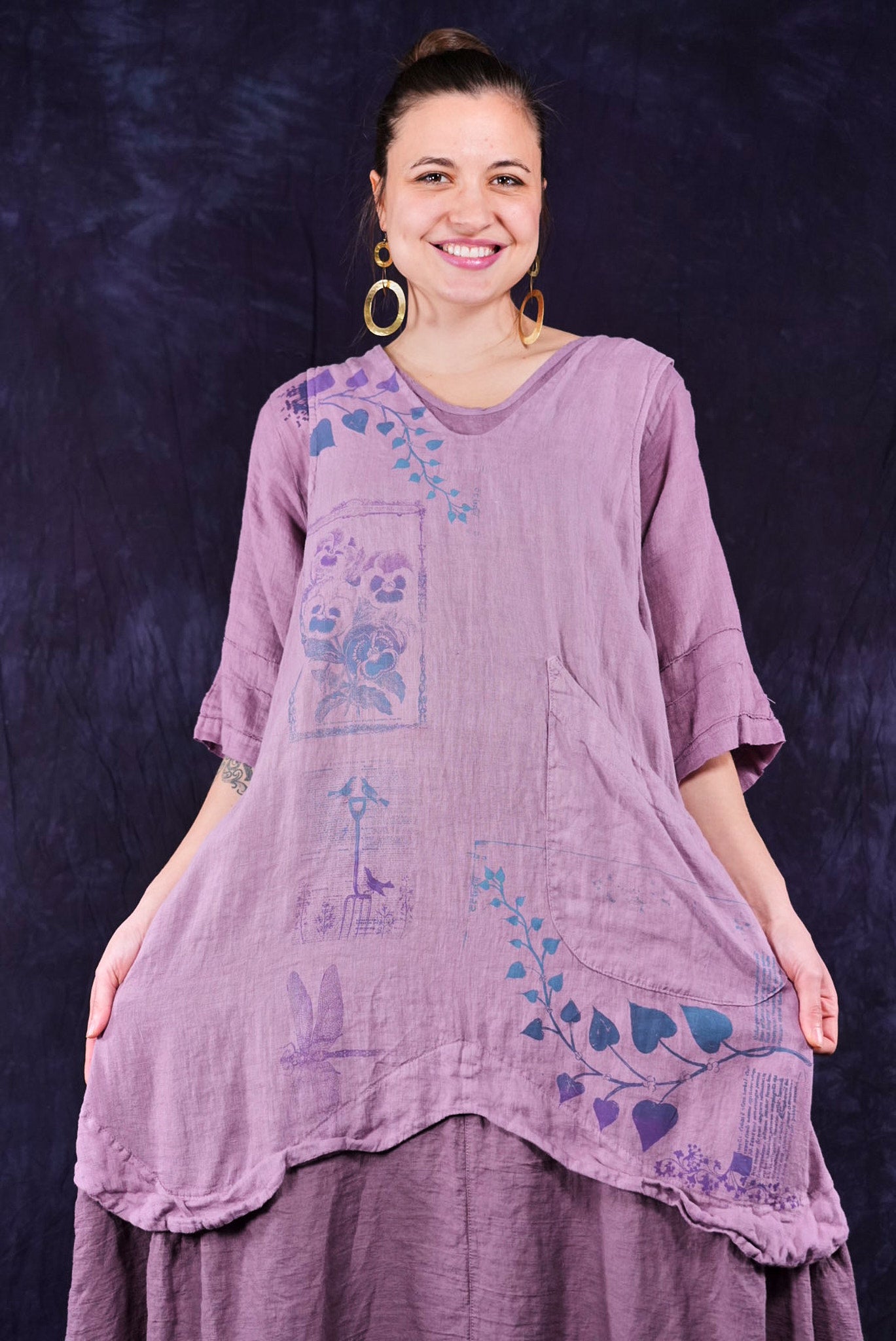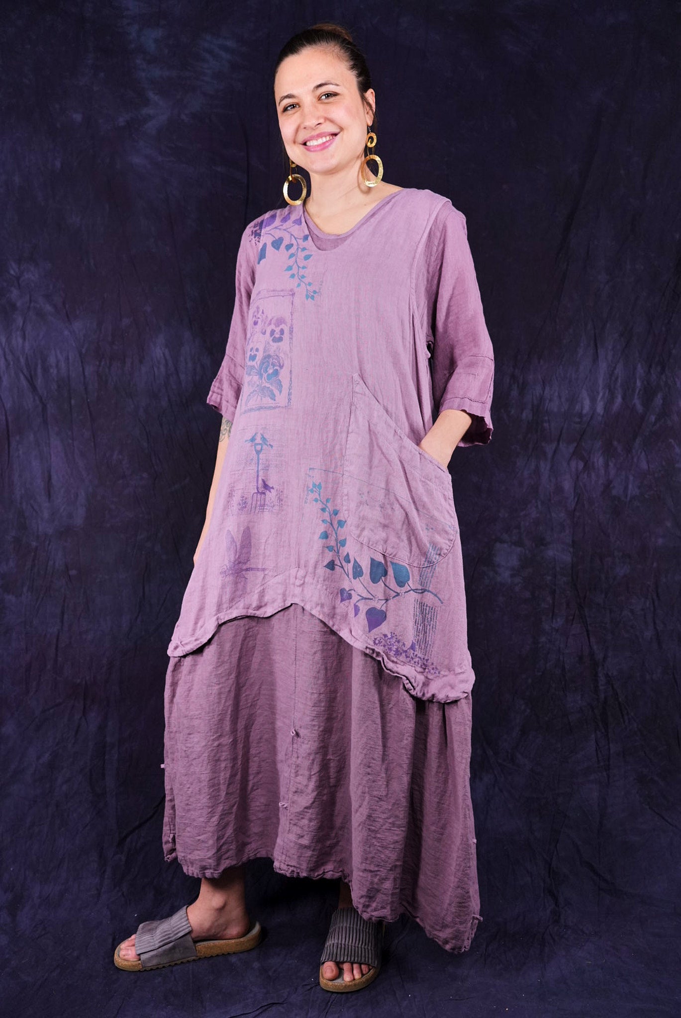 NEW Made from two types of european linen, this long jumper with deep armholes has a tie in the back to adjust the very generous width to fit any size. It comes with some strips of cotton which can be used to loop up the skirt to adjust the length and drape, too.