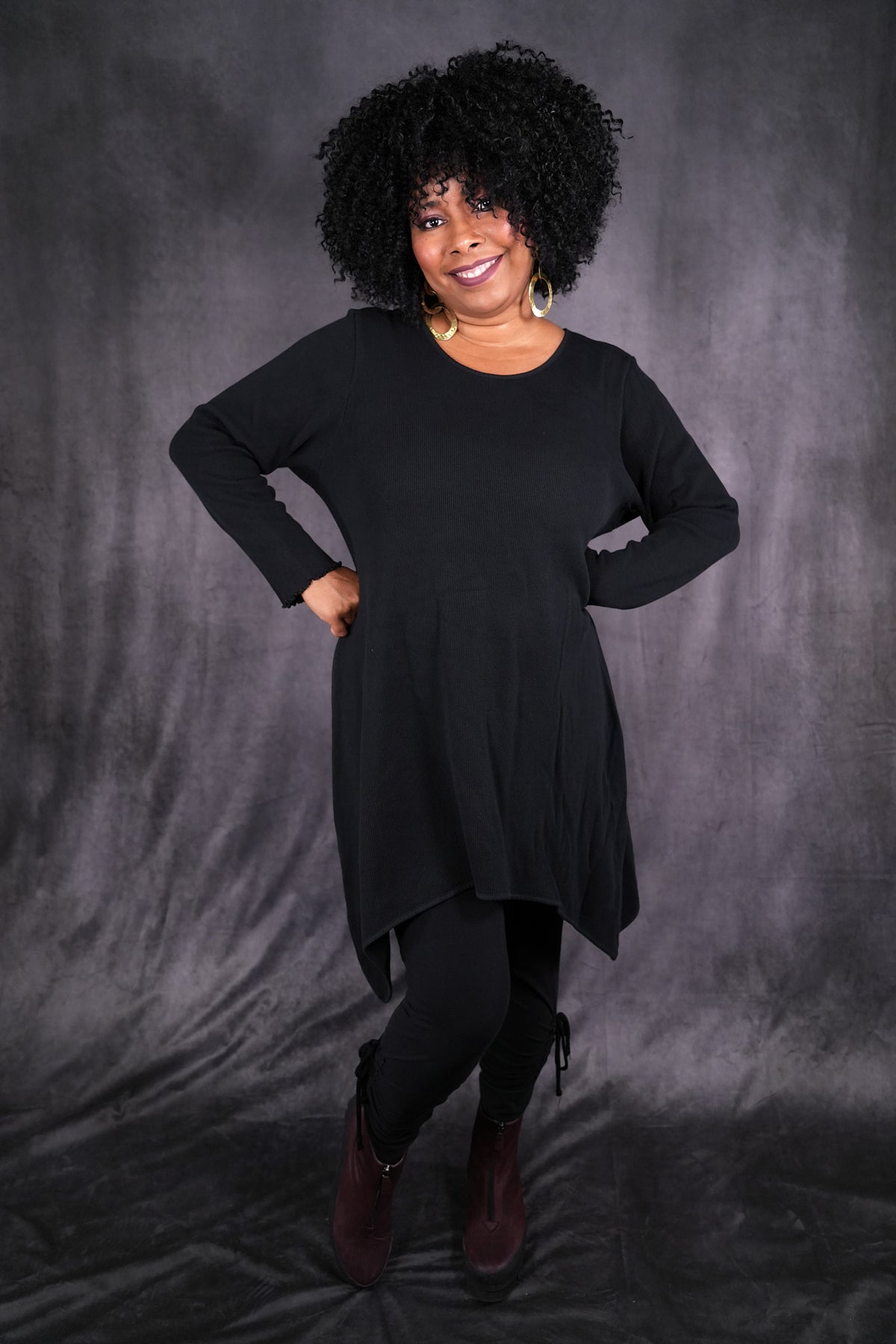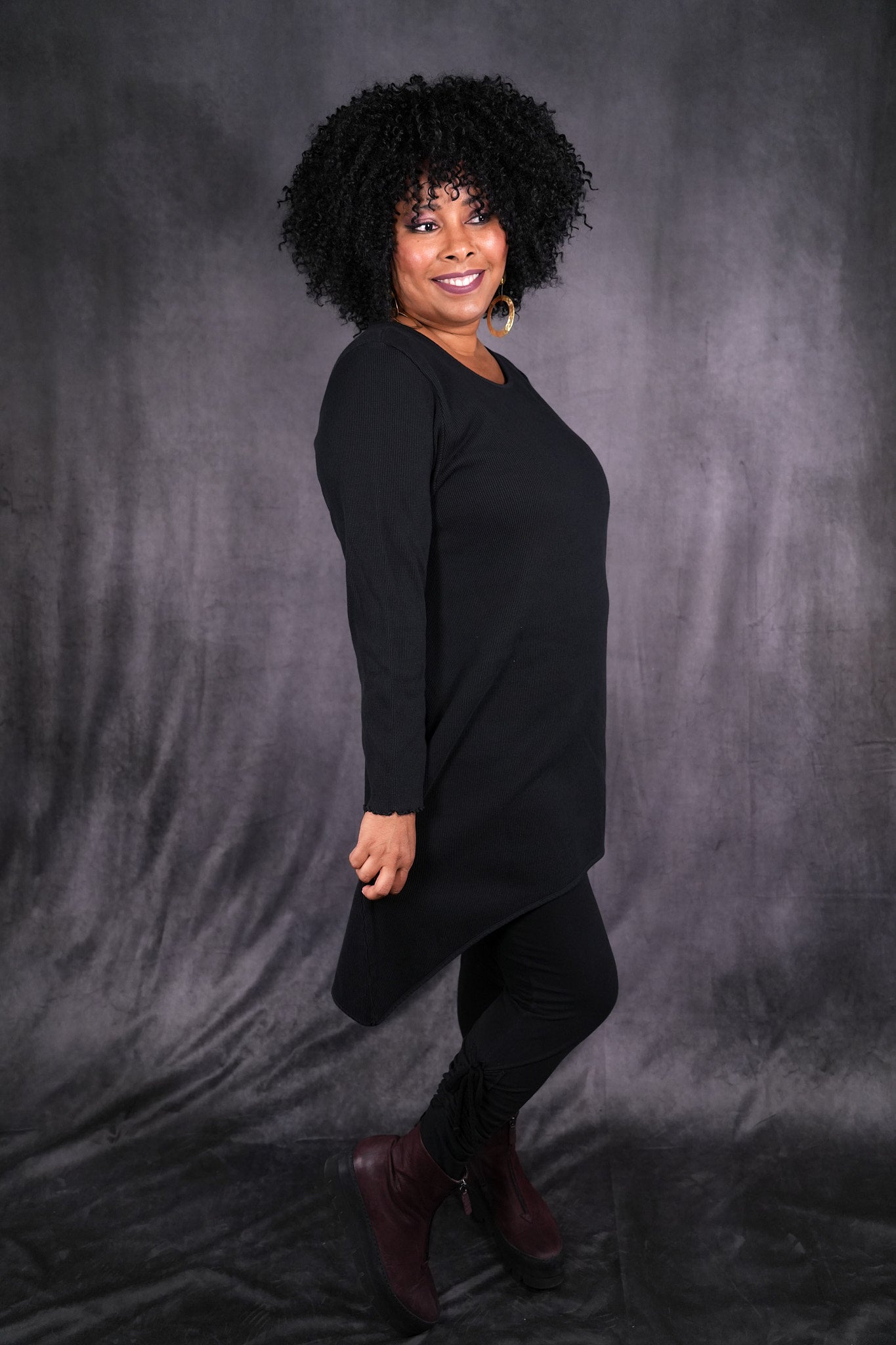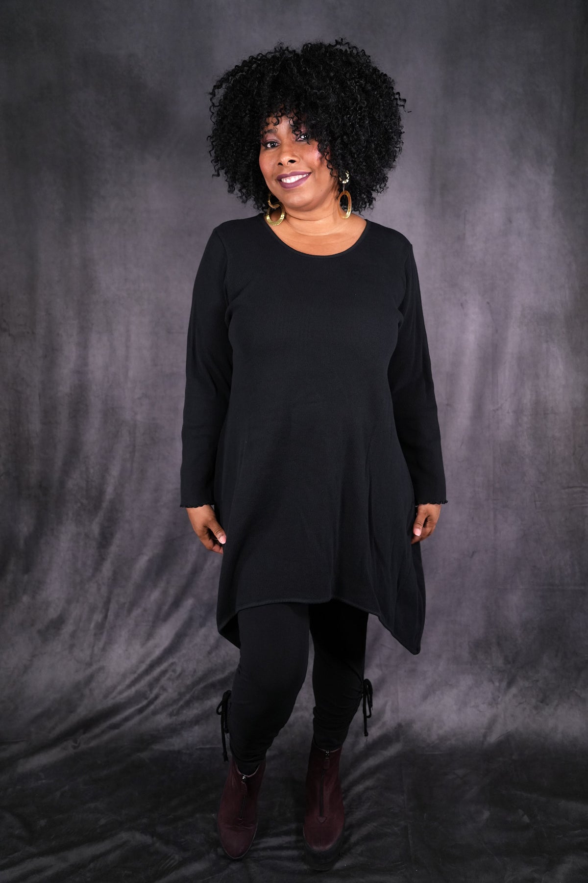 One of the very flattering & favored shapes, reinterpreted simply here without any cross seams ( better for lots of print!) Winter weight thermal, soft drape to layer or wear alone through several seasons, hand printed- made from organic cotton .