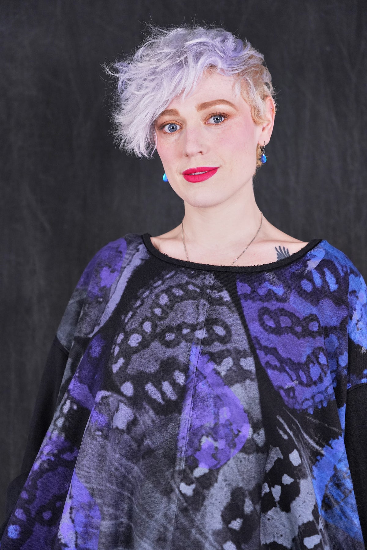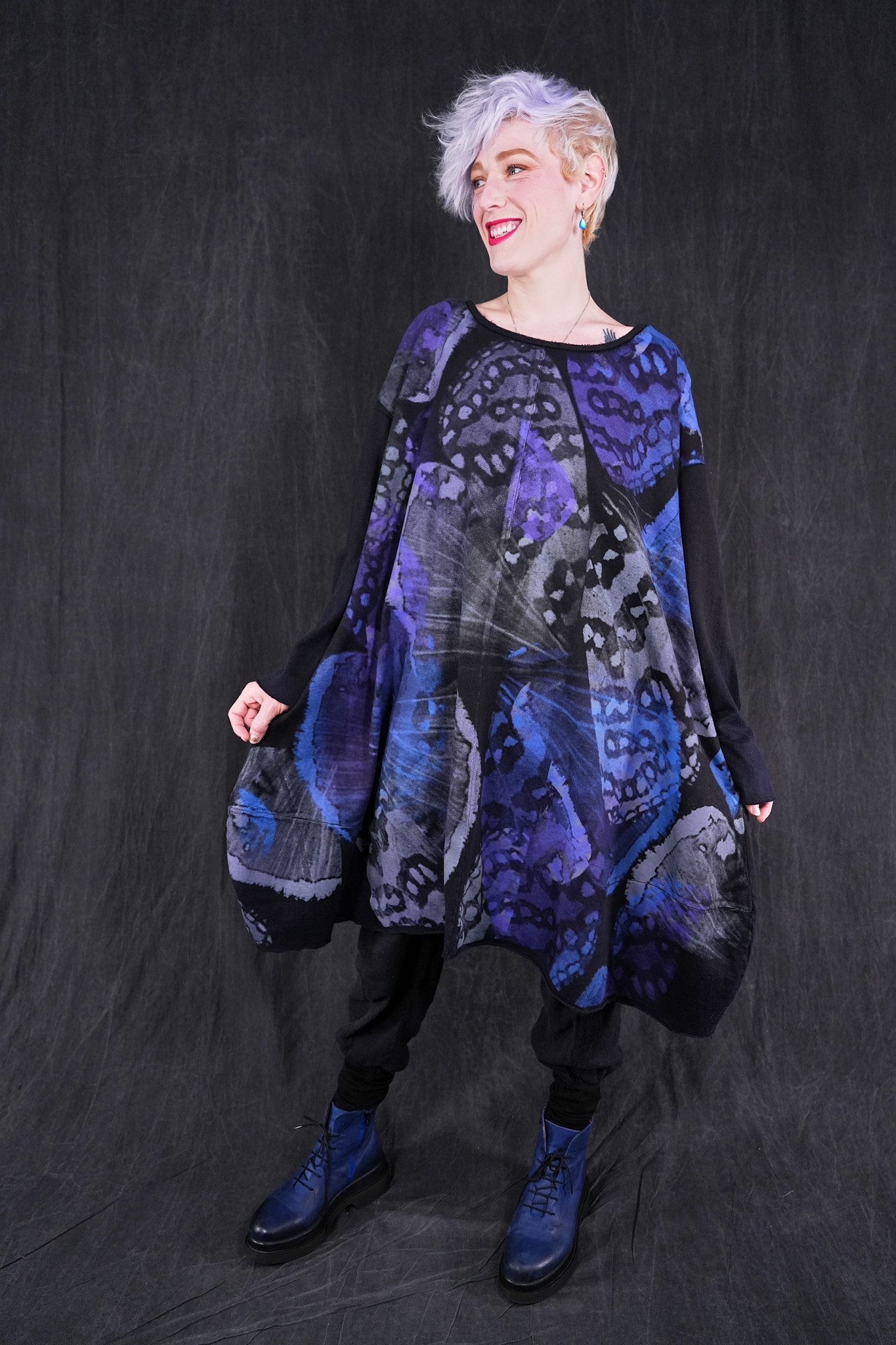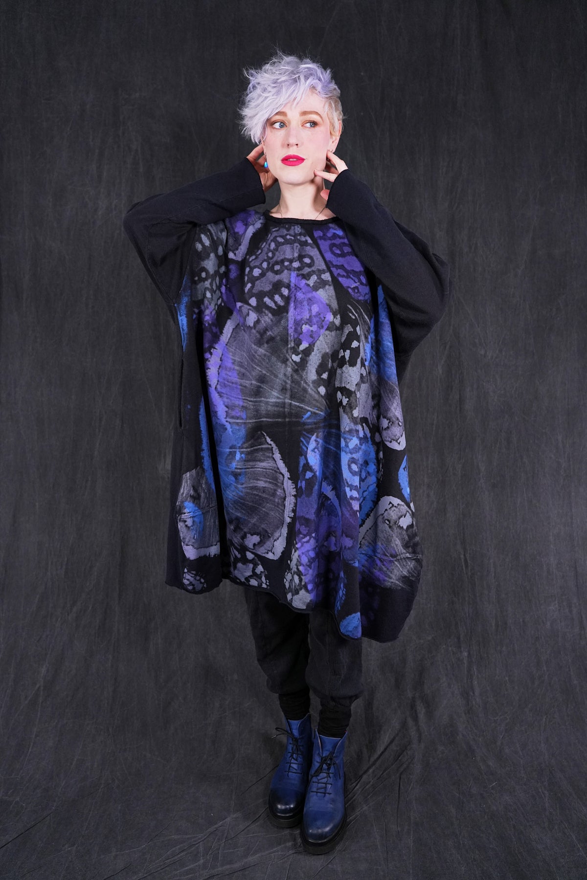 Heavier weight hemp-organic cotton knit has a nice texture, keeps you warm + cozy. This style is cut wide for drape and layers over easily, an essential cold weather piece- wear with leggings like a dress, or layer over whatever you like to use as a huge & loose sweatshirt.