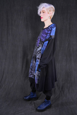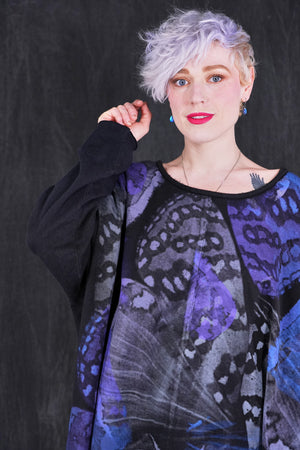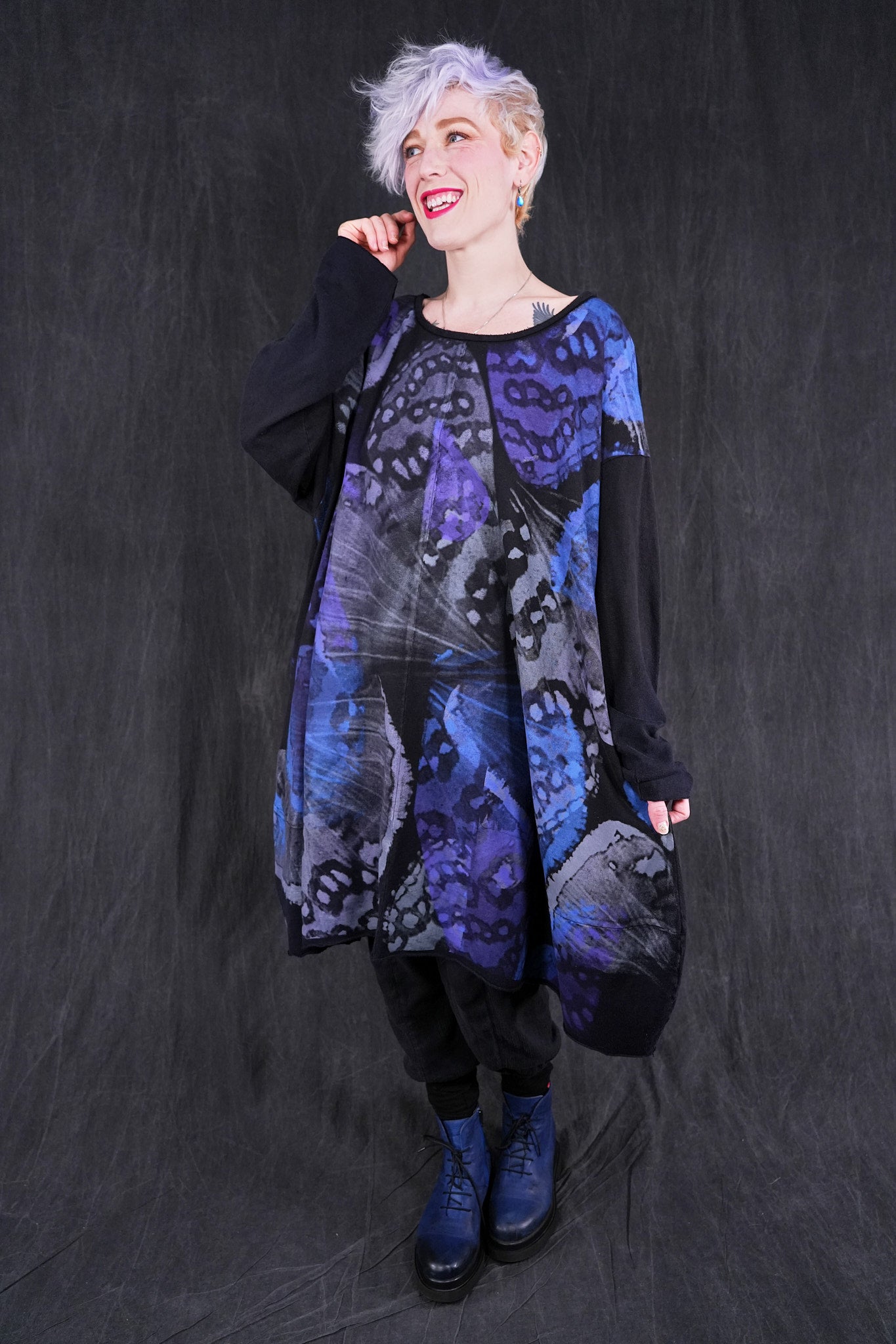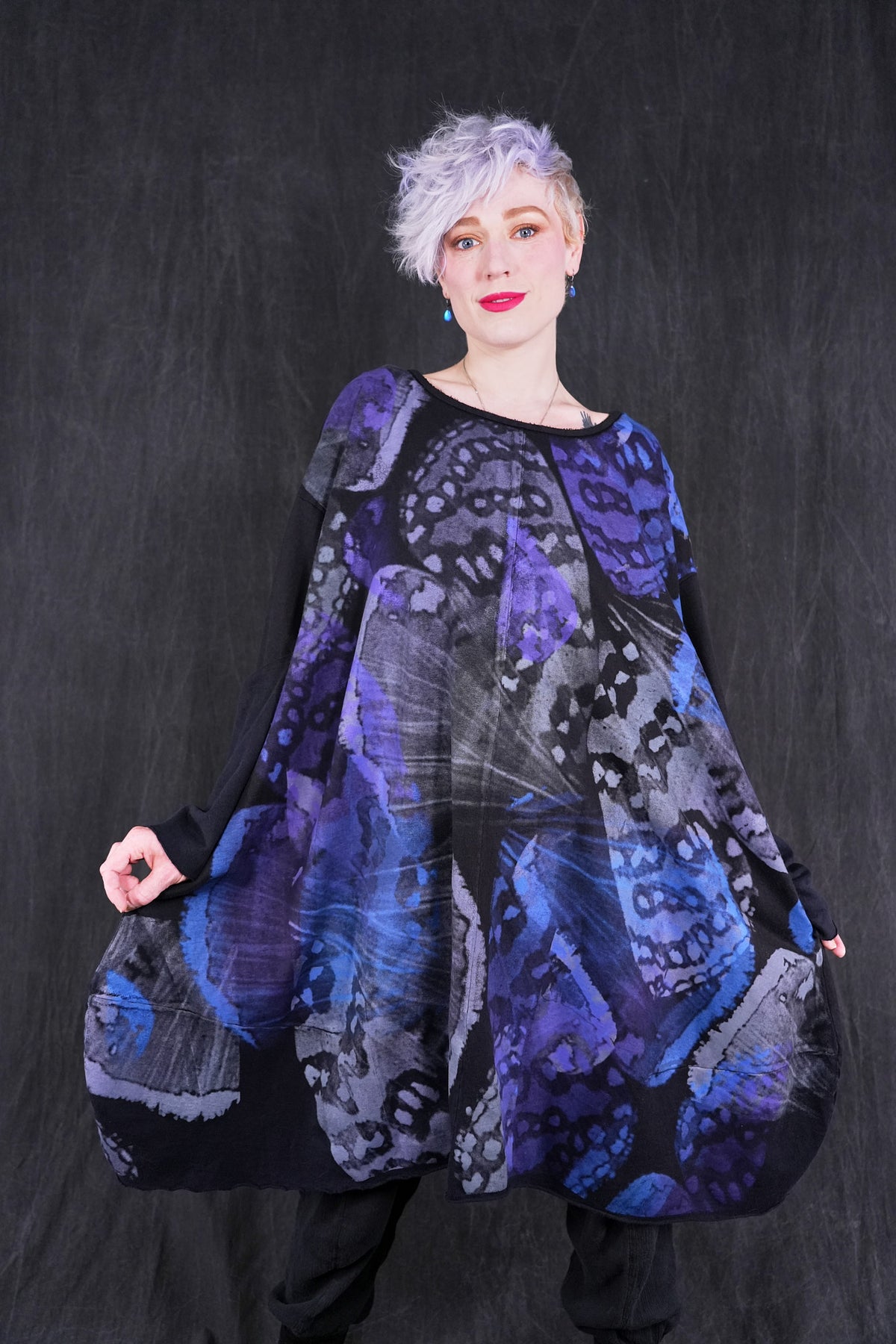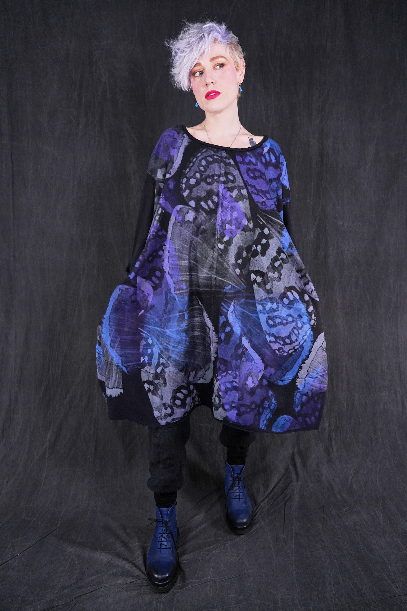 Heavier weight hemp-organic cotton knit has a nice texture, keeps you warm + cozy. This style is cut wide for drape and layers over easily, an essential cold weather piece- wear with leggings like a dress, or layer over whatever you like to use as a huge & loose sweatshirt.