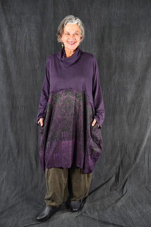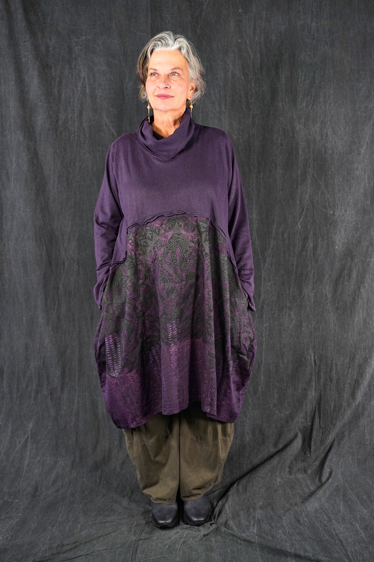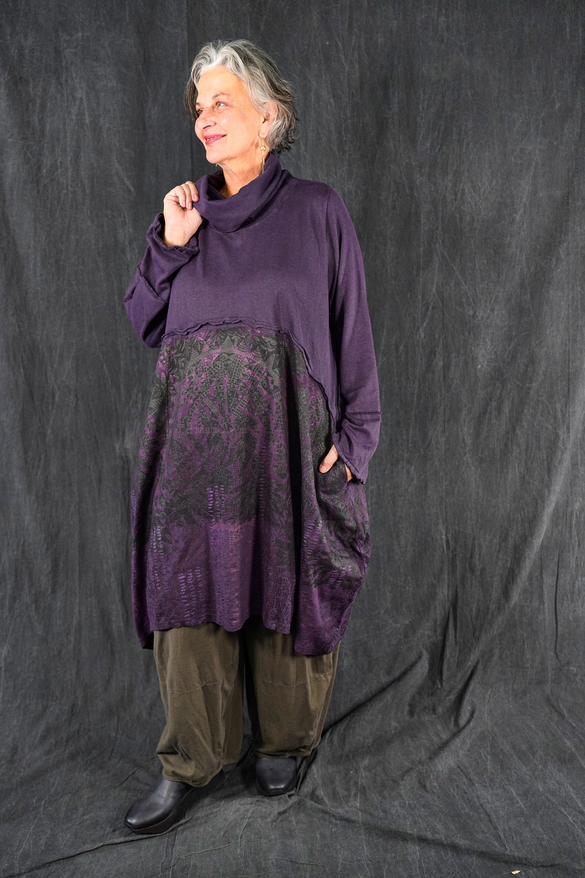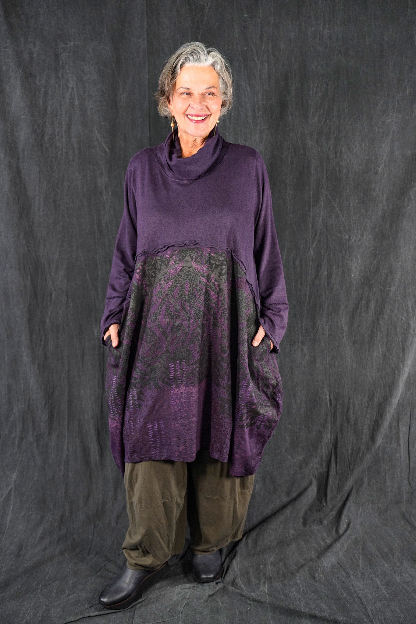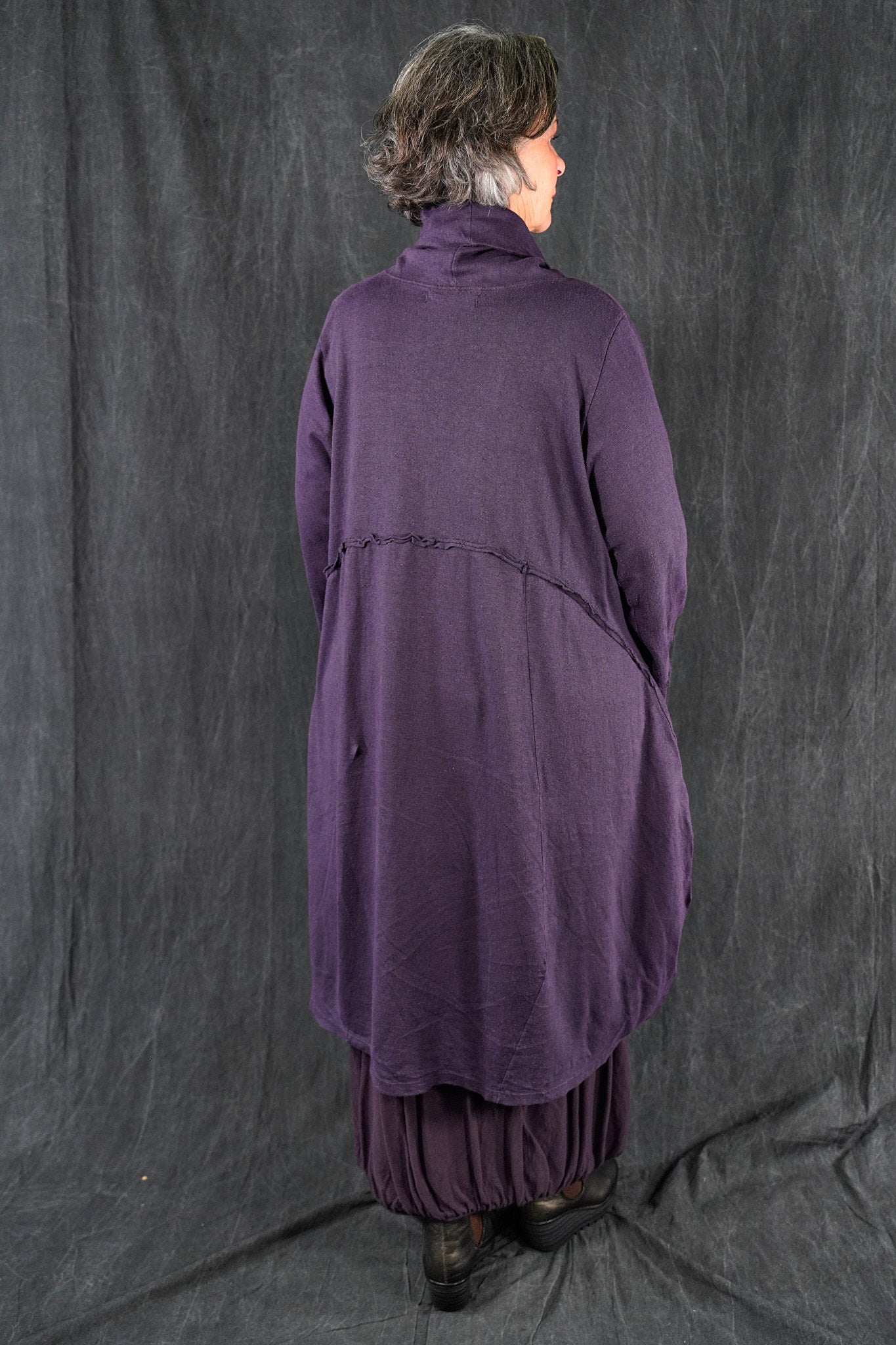 Effortless shape with a beautifully wide cowl neck. Inside out/raw-edged details. Made from organic cotton and hemp knit, which offers extra warmth for colder days. This shape is oversized and easy; throw it on over anything for a unique look and pure Blue Fish comfort. On seam pockets, cuffable sleeves, warm cowl...just try to take it off. This is a generous style but it drapes well and is not overwhelming when sized correctly.