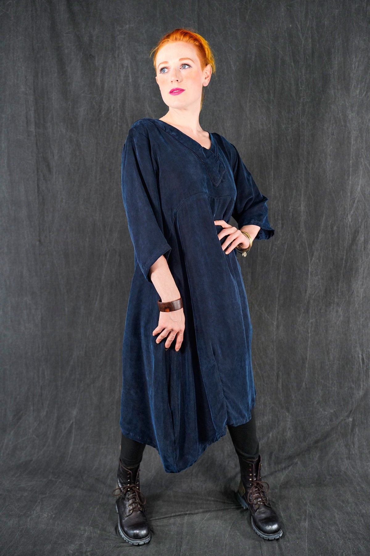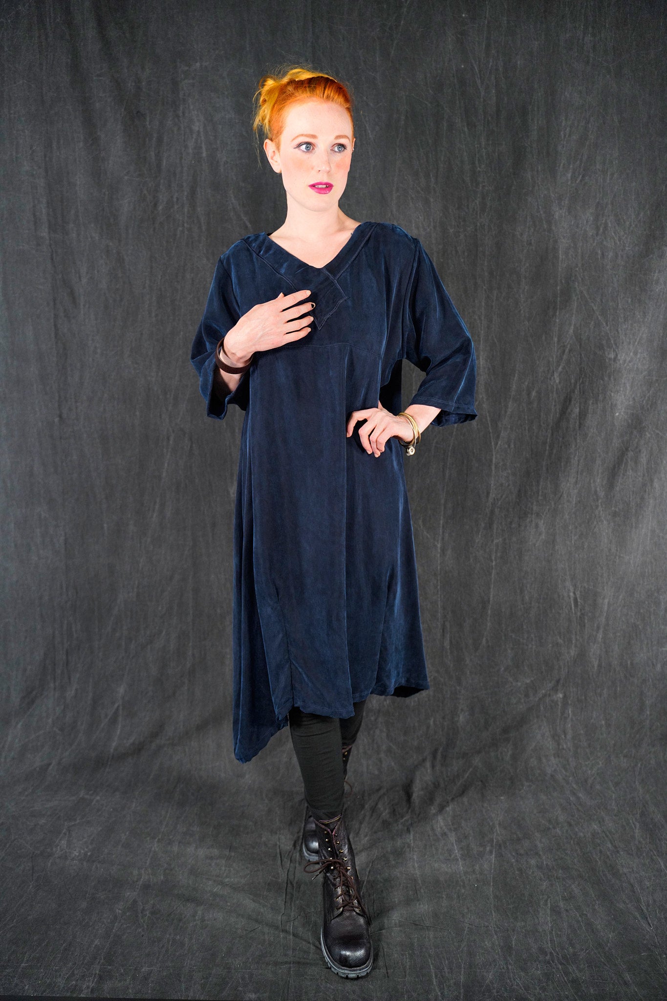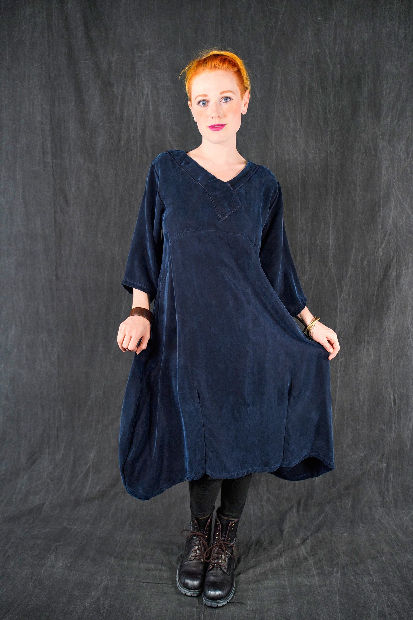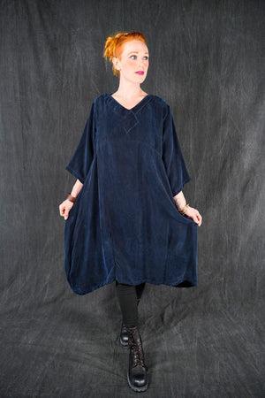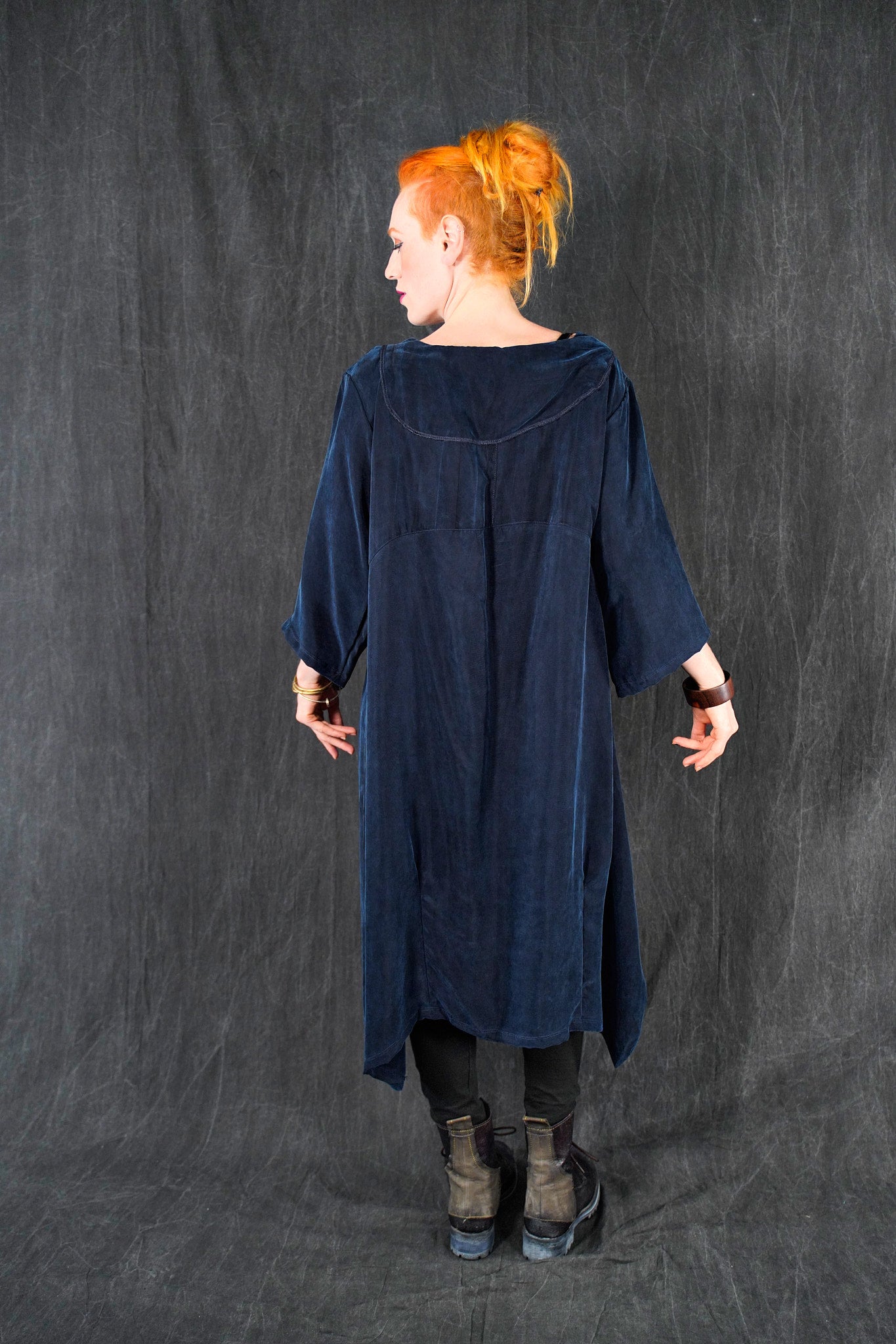 The wonderful thing about this particular cupro is that is is thick and luxurious, heavy and very drapey and silk-like; yet is washable and resists wrinkles! This fabric will flow and move, it is not at all clingy. We made it in one of our very favorite styles, our crossover urchin dress.