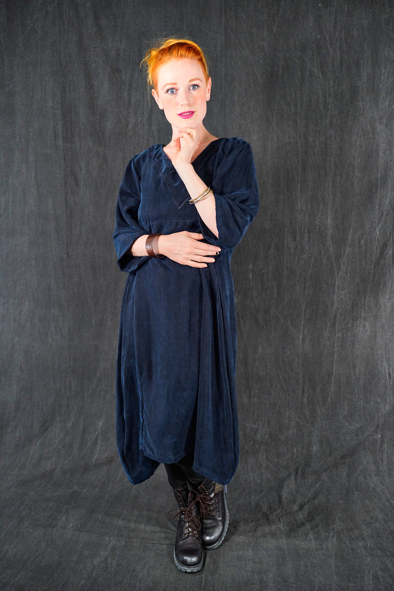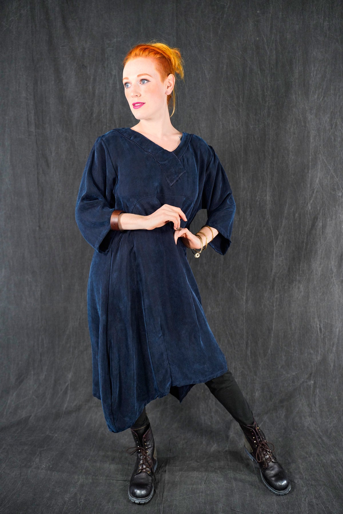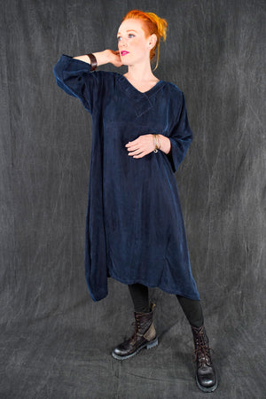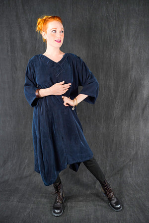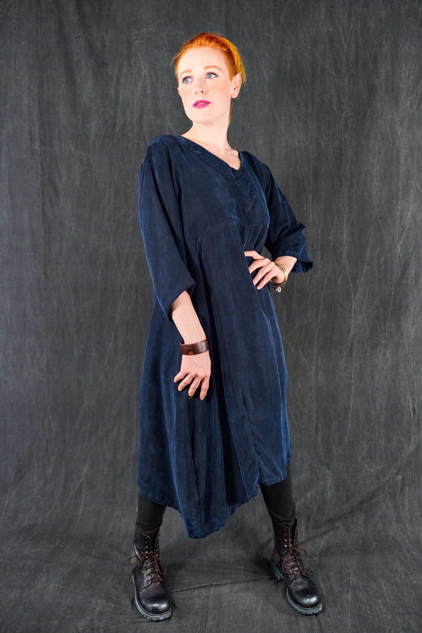 The wonderful thing about this particular cupro is that is is thick and luxurious, heavy and very drapey and silk-like; yet is washable and resists wrinkles! This fabric will flow and move, it is not at all clingy. We made it in one of our very favorite styles, our crossover urchin dress.