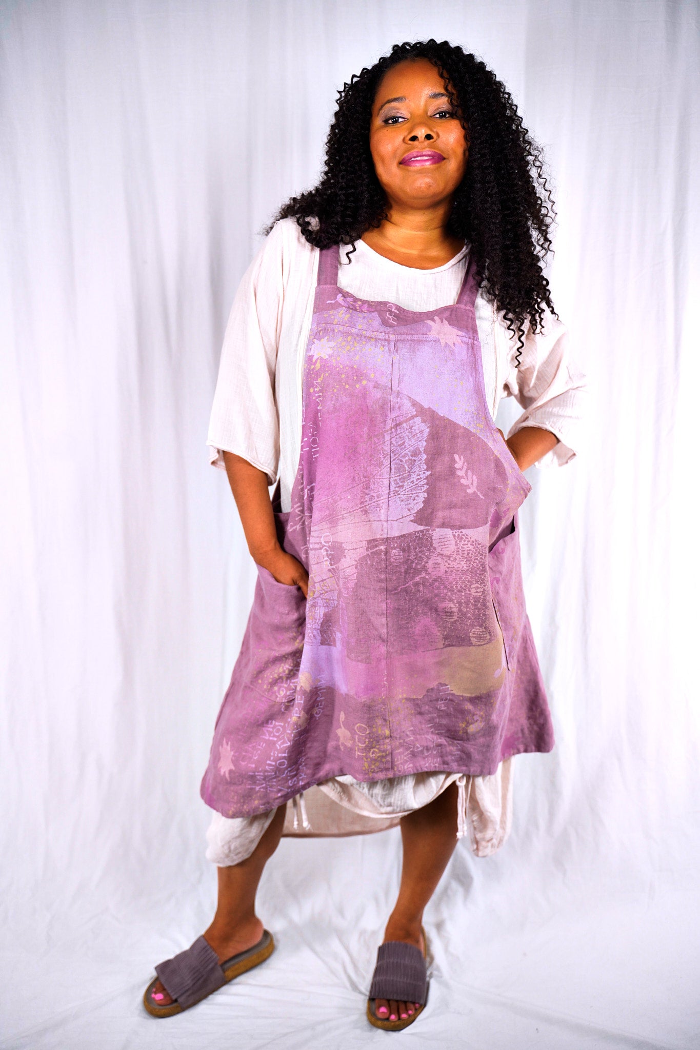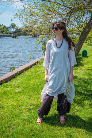 *****A GREAT STYLE! This is a new style that was never released last year. We found them in a box and all tried them on.. wow -they look great-on many different bodies- roomy enough but also very drapeable so will work on curves or on non curvy bodies. They are so exquisitely cool and light- just perfect for summer... wear alone or layer under aprons, add a skirt or not... as a beachcover-up, a lounge dress, or you can even sleep in it!