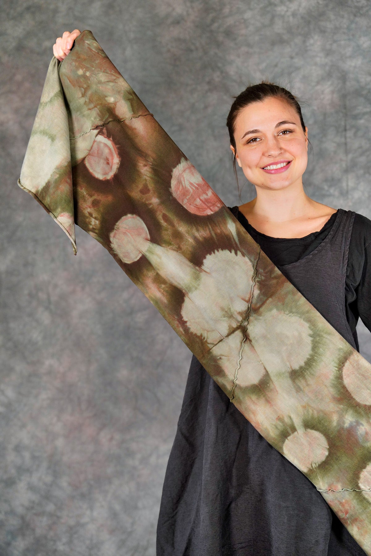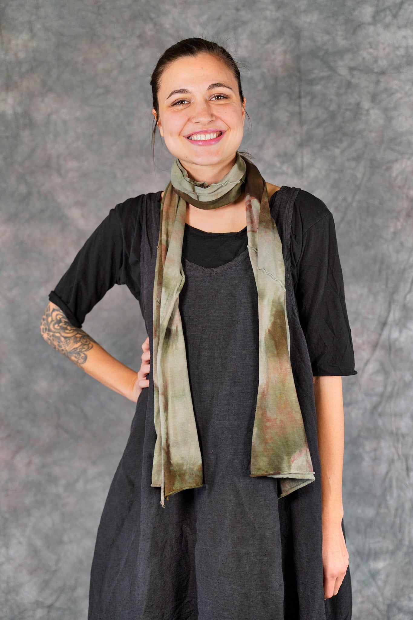 A beautiful scarf made of our favorite organic jersey material. Look closely--the colorful seams on this are sewn at an angle, adding unique visual interest!