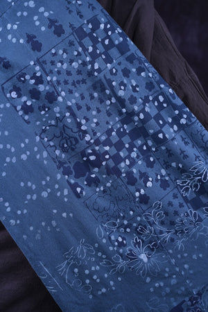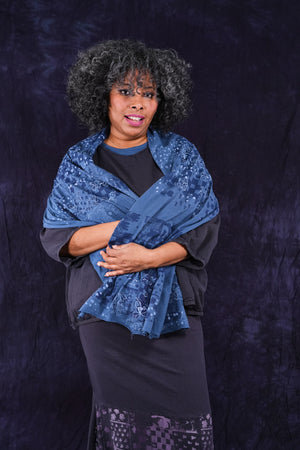 8161 Hand Printed Organic Scarf Echo Blue-P
