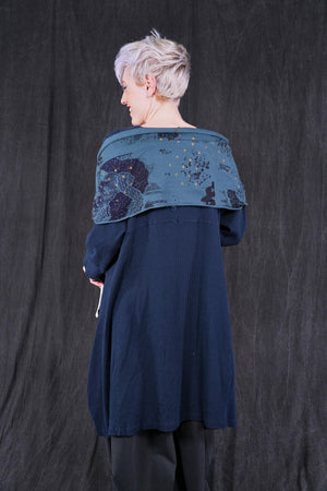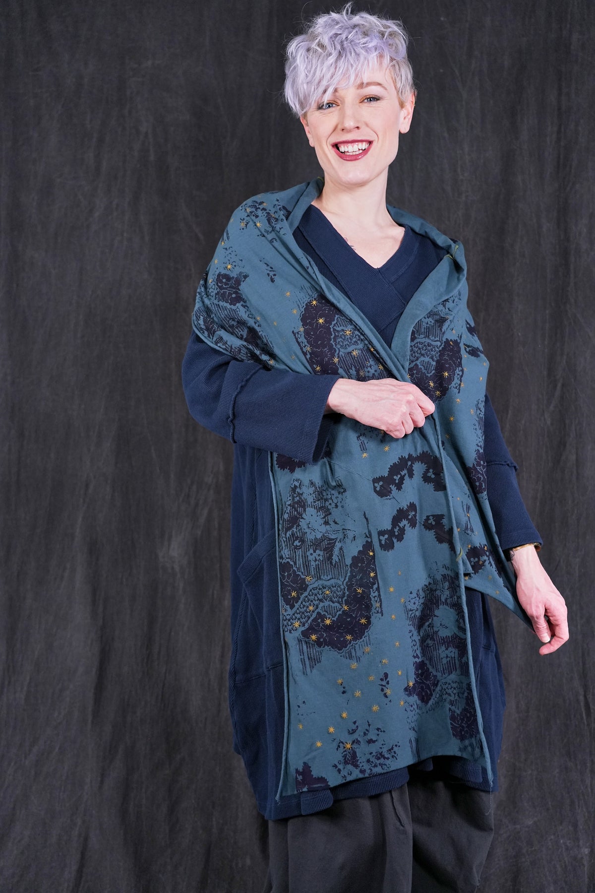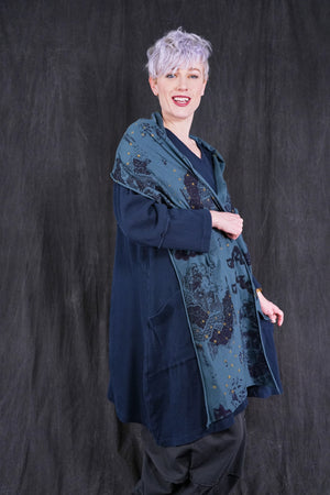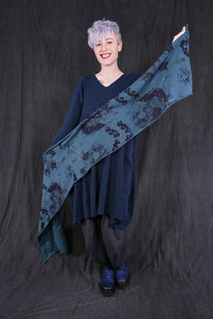 Antique textile design inspiration blends with subtle star details in bronze gold. Goes well with Atlantic color from CROCUS. A beautiful scarf made of our favorite organic jersey material. Intricate hand-printed art inspired adds visual delight to every ensemble--zoom in on these pictures to see all of the beautiful details!