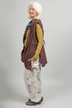 This sherpa trimmed, french terry vest is pretty amazing...Throw it over any oufit for additional warmth and style! Higher at the sides, it's completely trimmed in sherpa,addng texture and warmth. Comes with Blue Fish ties to create a ruched look on the sides and back.