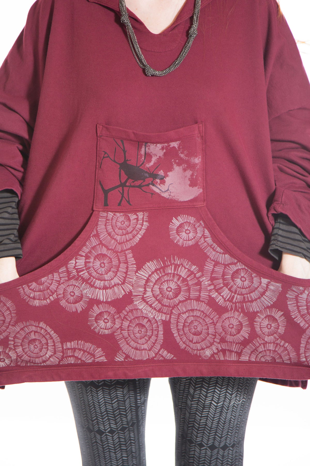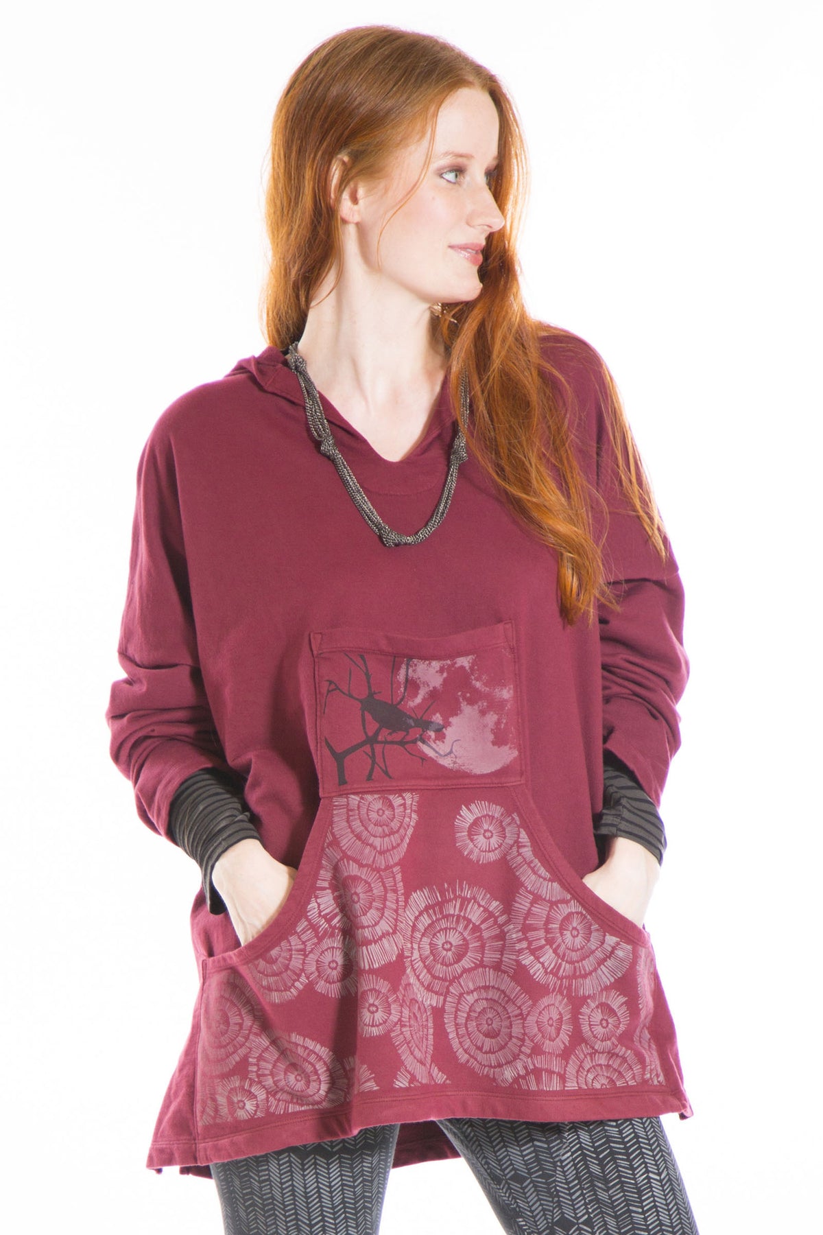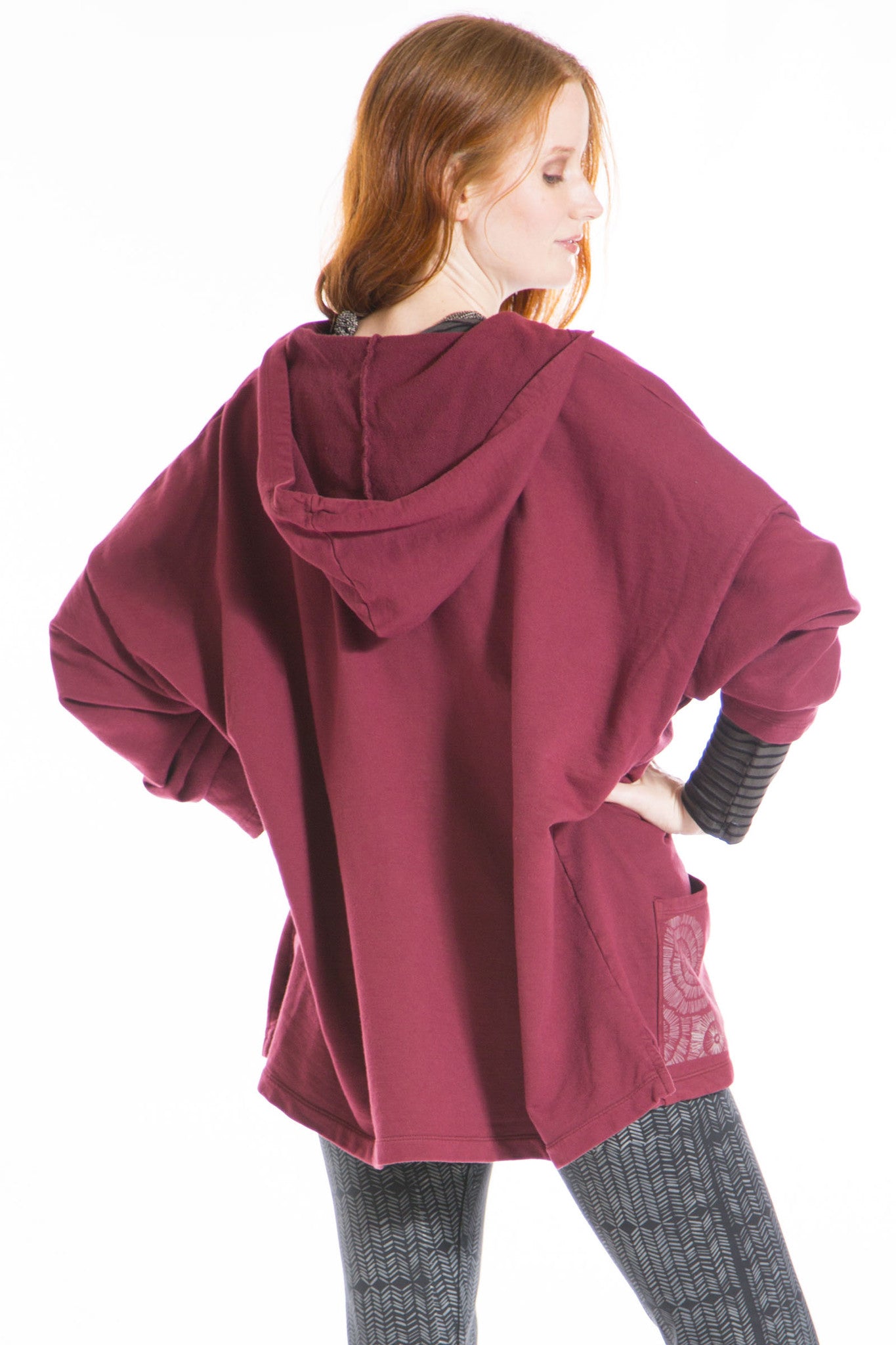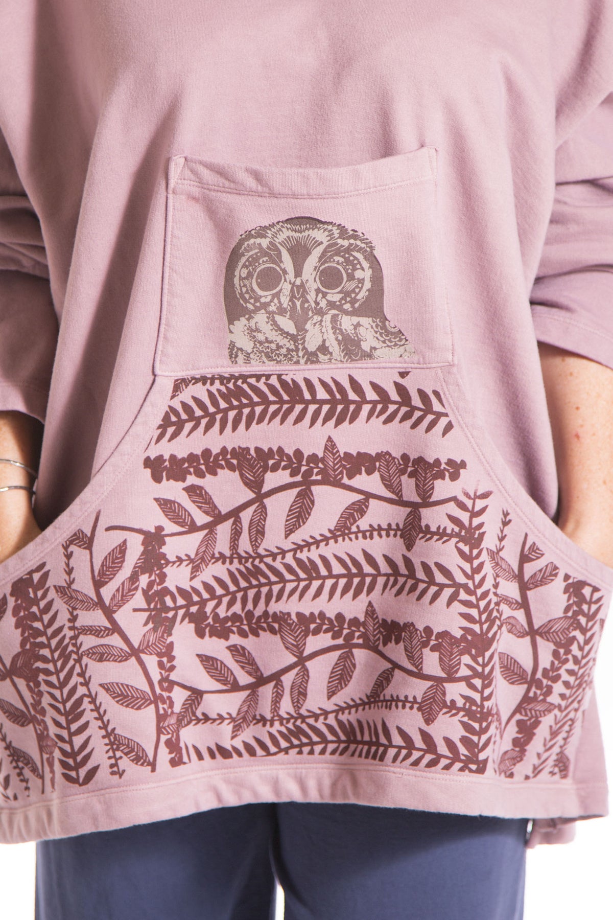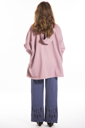This boxy french terry hoodie with front pouch pocket will keep you blissful all year long! Features a hi-lo hem that is slightly longer in the back, kangaroo front pocket & a cute little top pocket.