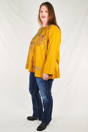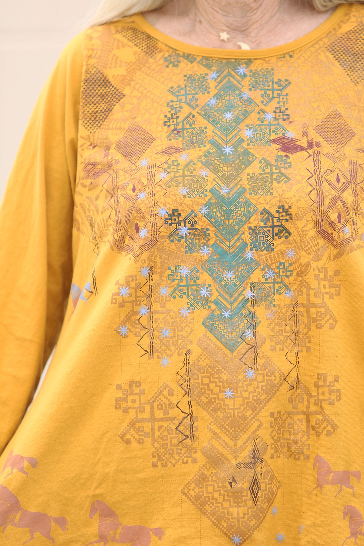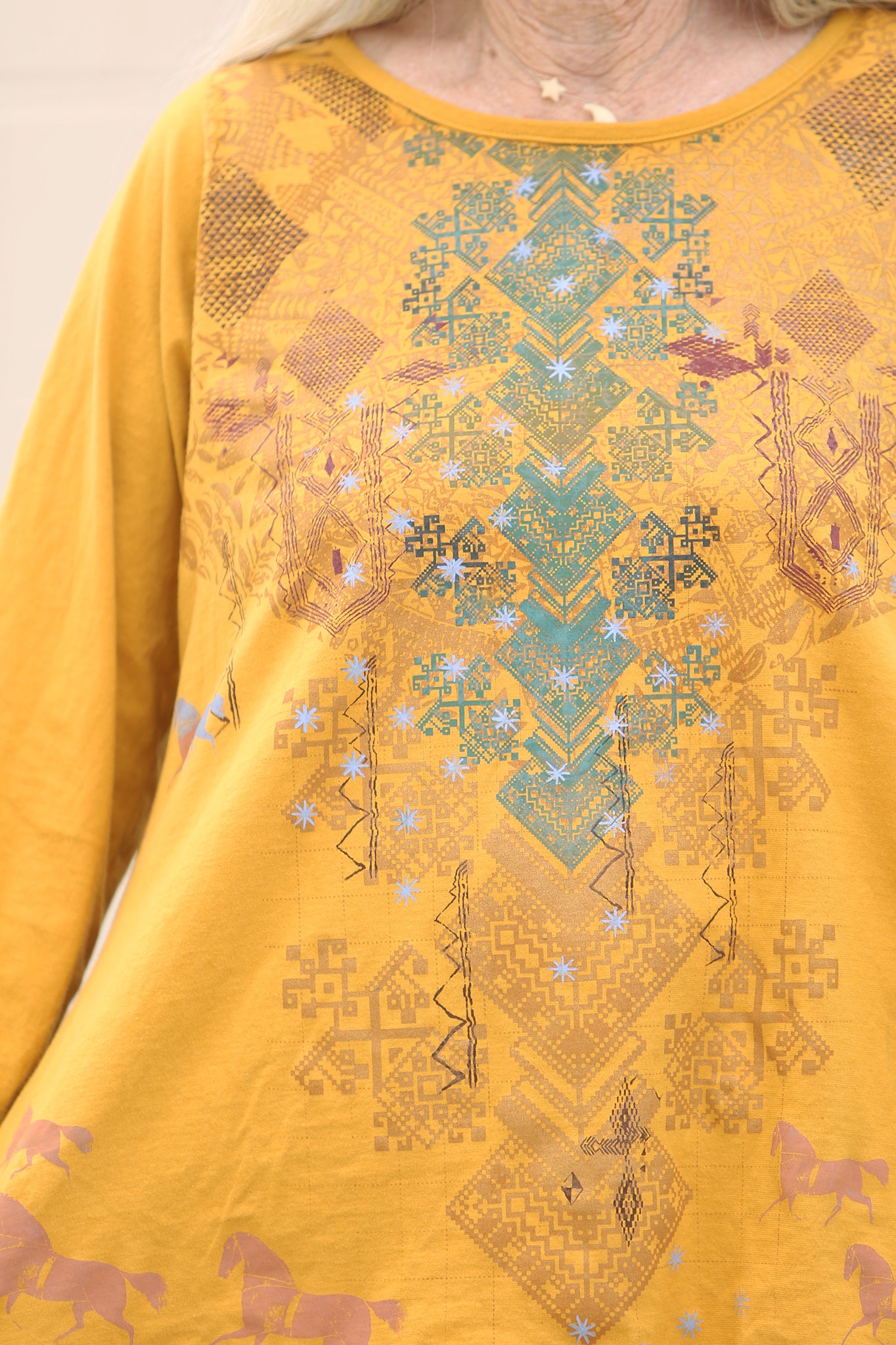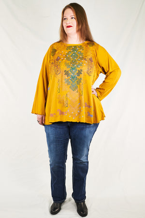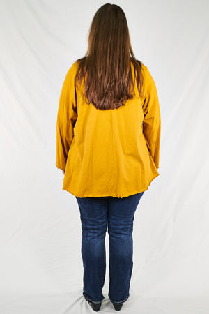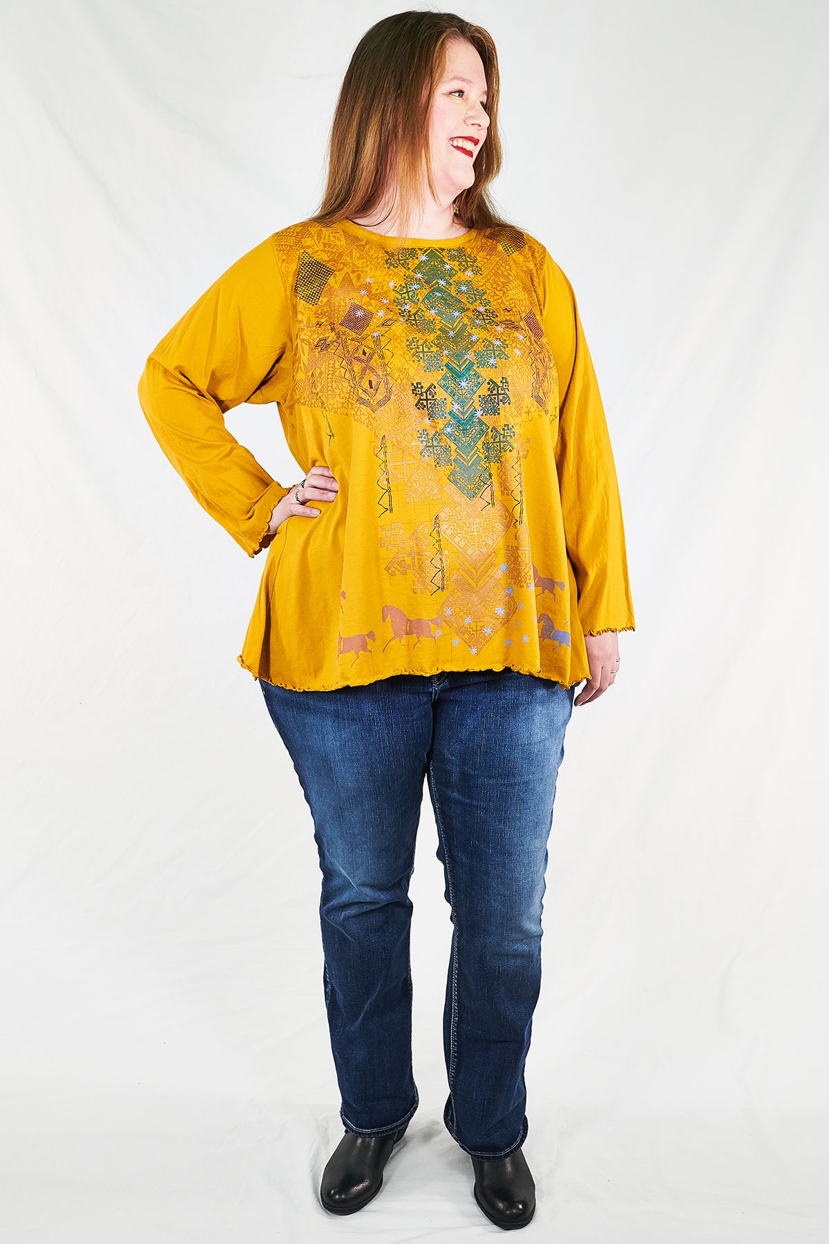 The classic blue fish cafe tee now with long sleeves for the season- in our perfect seasonless weight organic cotton jersey. The style features an A-line cut which is more fitted at the top, and which flatters nearly every body.