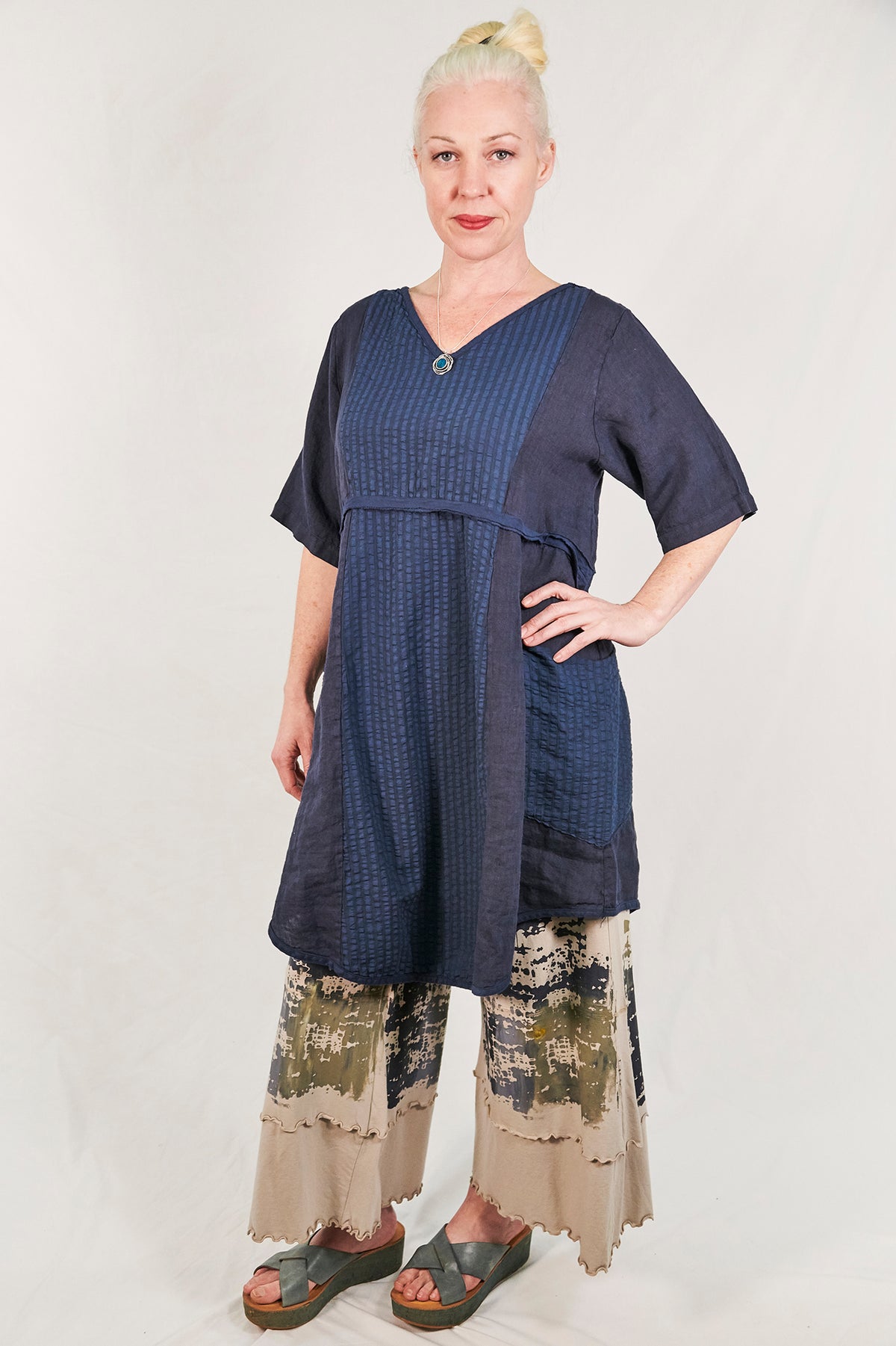 This wider version of our Tiered Petaloon features ruffled edging on the tiers. Check measurements on length. Our model is 5'10" so they are looking quite cropped on her. For someone 5'5" or shorter they would be full length. This version is our regular weight organic cotton with stretch. Very comfortable and cute under any of our longer tunics/shorter dresses.