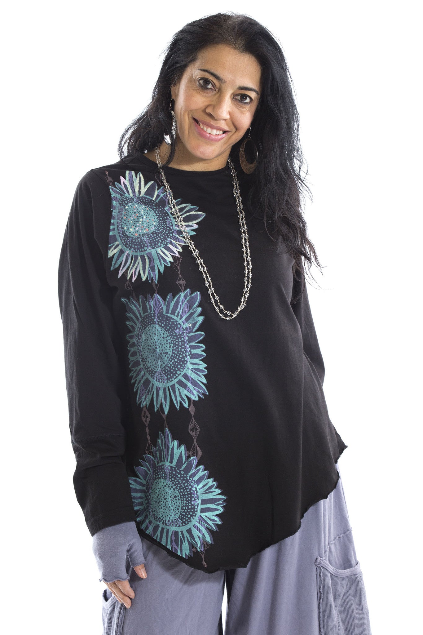 A classic layer top with our "wedge" hem and a higher crewneck. Long sleeves and lettuce edging complete the look. This top will layer wonderfully under any or our styles. Please let us know in your order notes which print you prefer.