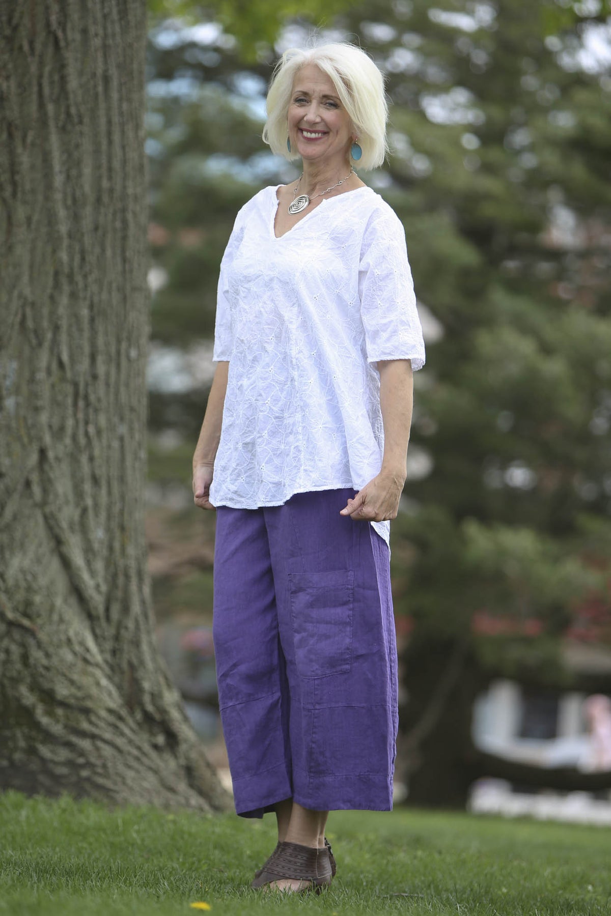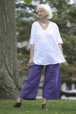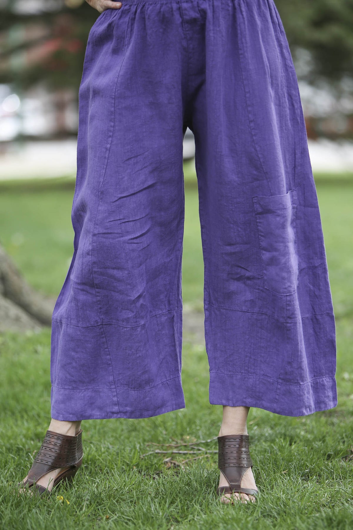 • Featuring a full-length wide leg in medium weight, drapey linen, with a comfortable elastic waistband.