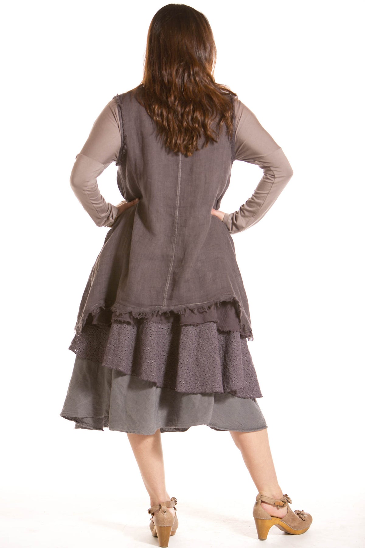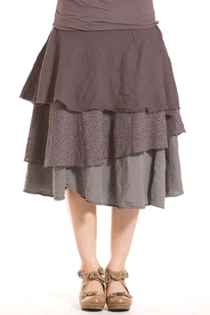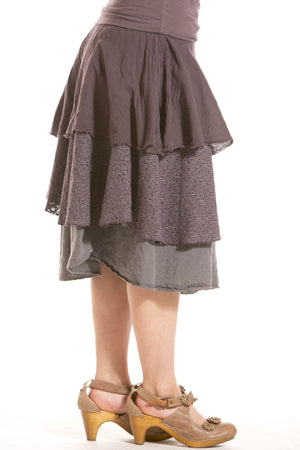 This skirt hardly needs explanation. We love it. You'll love it. Period. But just in case you want to know more . . . It has three tiers of lightweight loveliness, starting with cotton gauze, lace, and ending with a hemp blend. The doubled organic cotton (with a touch of lycra) waistband allows the fit to easily be adjusted on your hips for the most comfort.