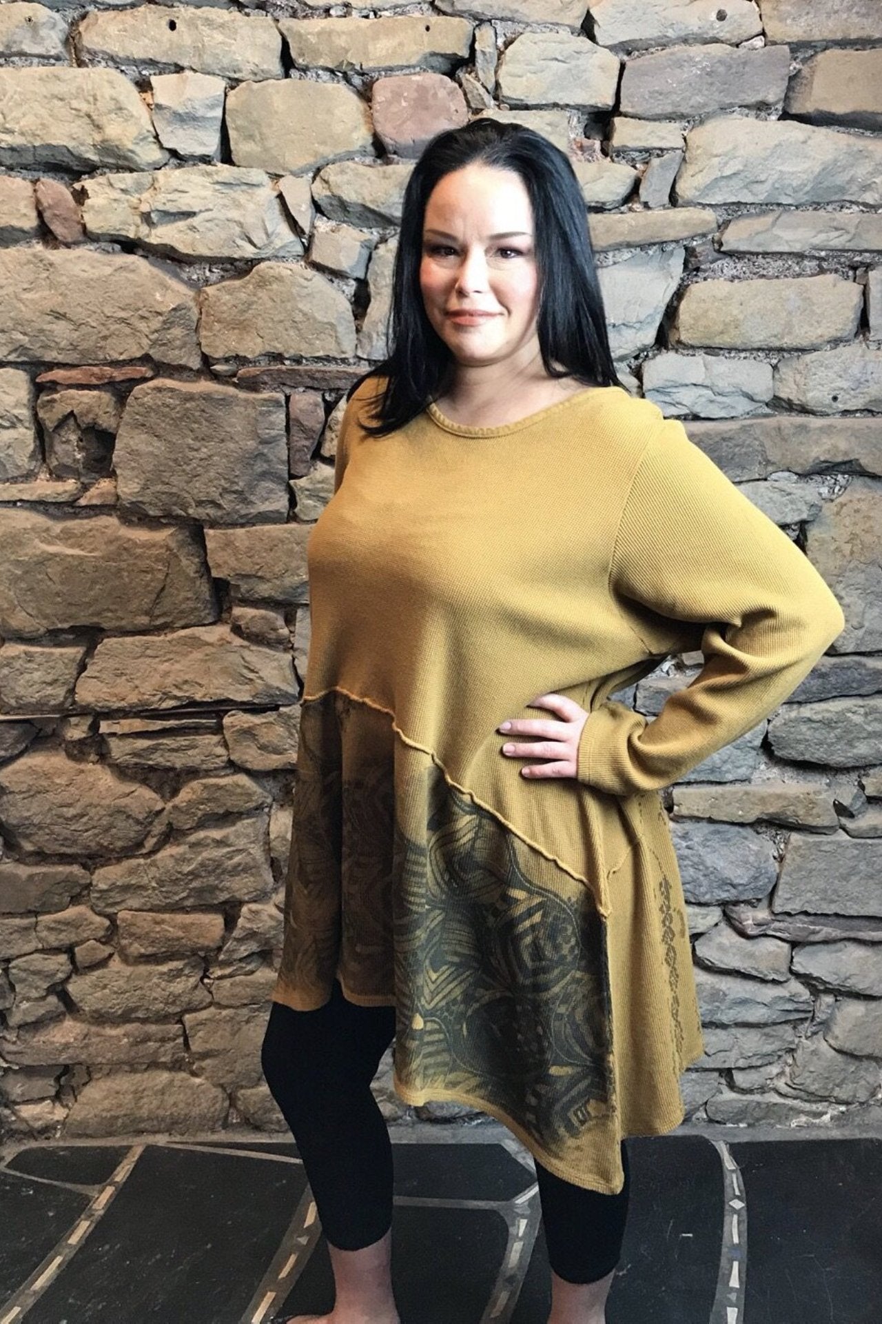 A longer thermal tunic for your winter wardrobe. Paneled for shaping and the length works well layered over leggings, or wide pants or a long skirt.