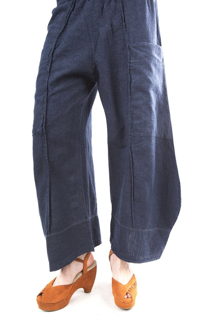 This pant has a lovely gentle drape in softly textured lightweight woven cotton and cantiva hemp. Due to the dimensional vertical detail on each leg, the fit is narrower in width through the hip than many of our pants. Be sure to check the sizing below. Patch pockets and moderate length, cut straight through the inseam with soft fullness at the outer calf.