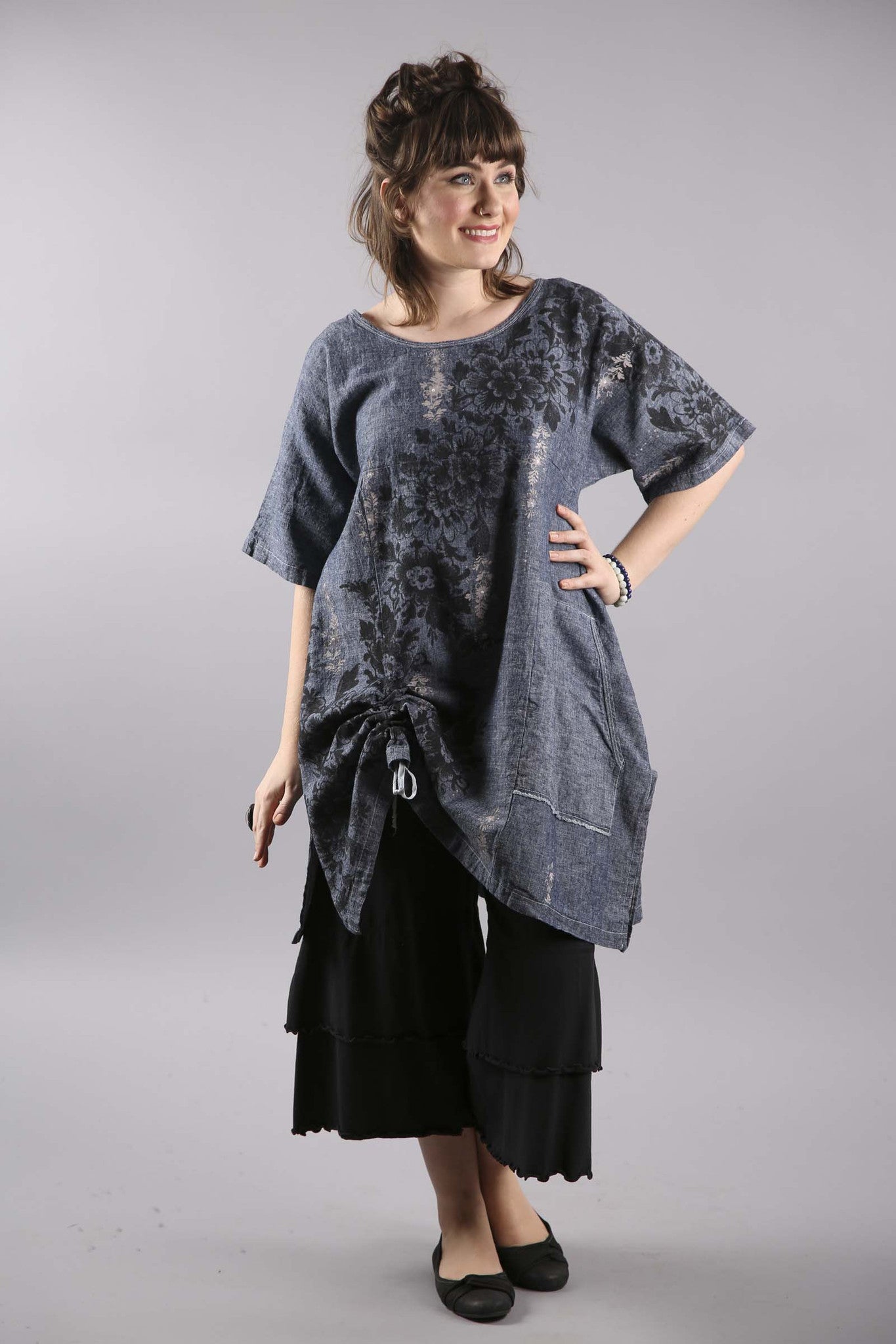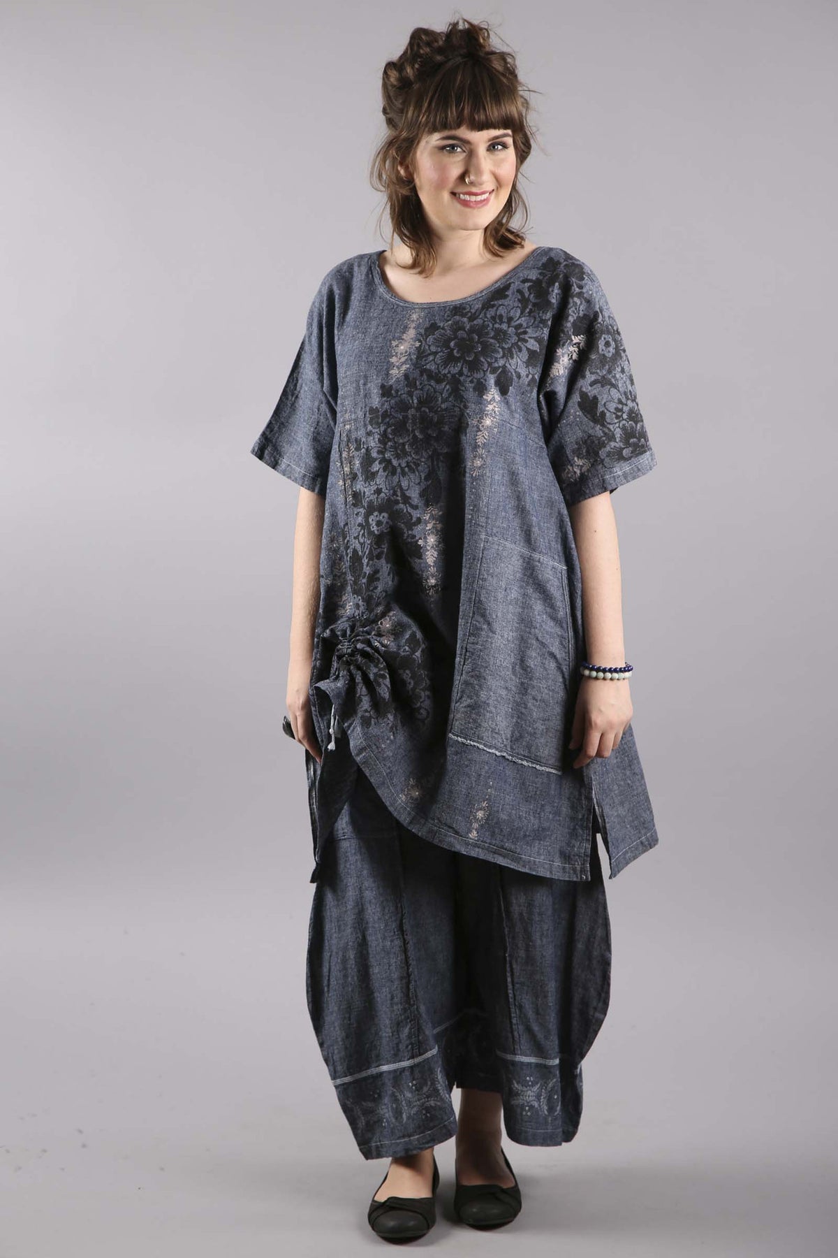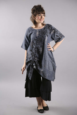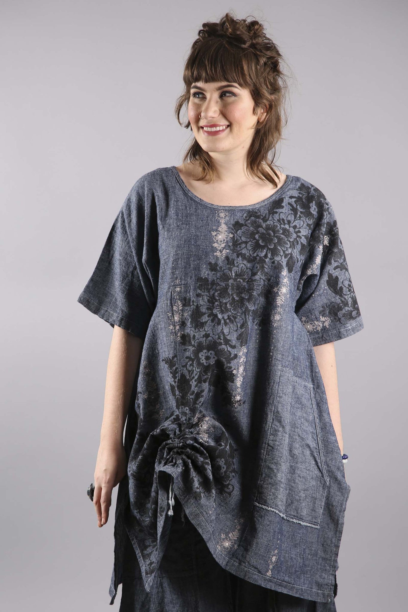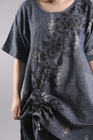 Hemp Light Denim Floral Square Tunic-7181B