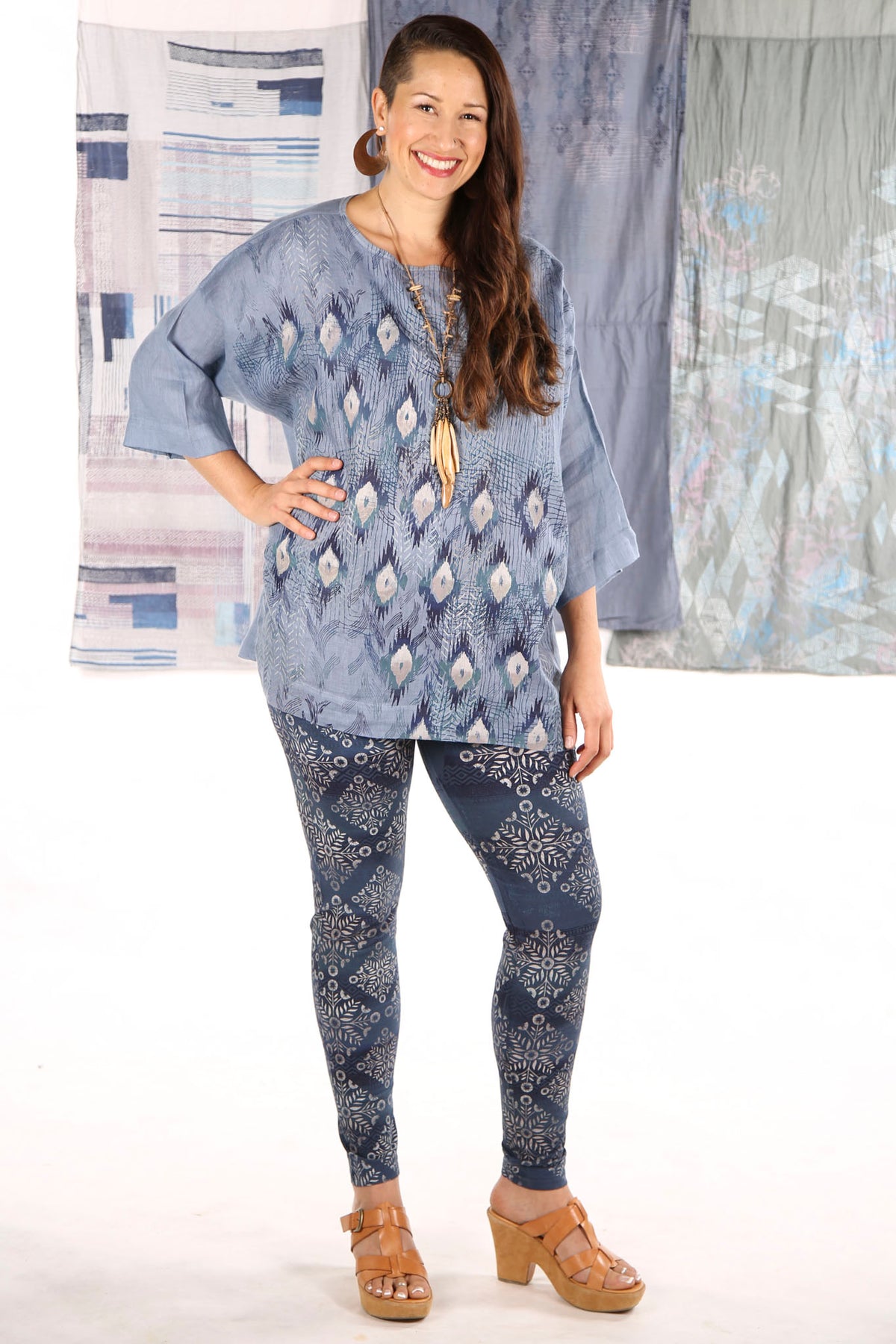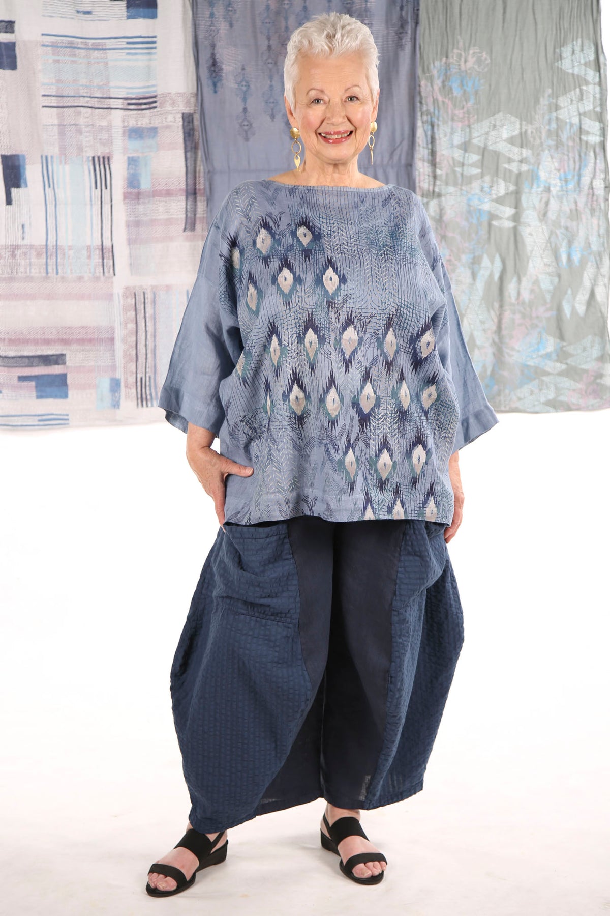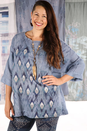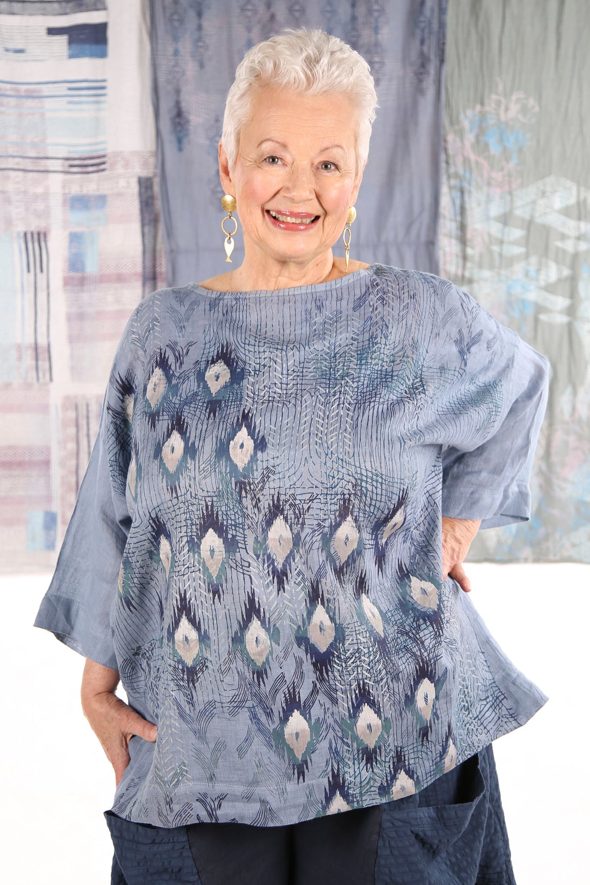 Simply beautiful, this airy top drapes elegantly and flatters every figure. Cool and comfortable, this linen top will be your favorite go-to this summer. Our artists created deliciously fun prints for eclectic style.