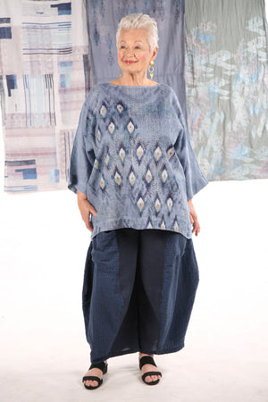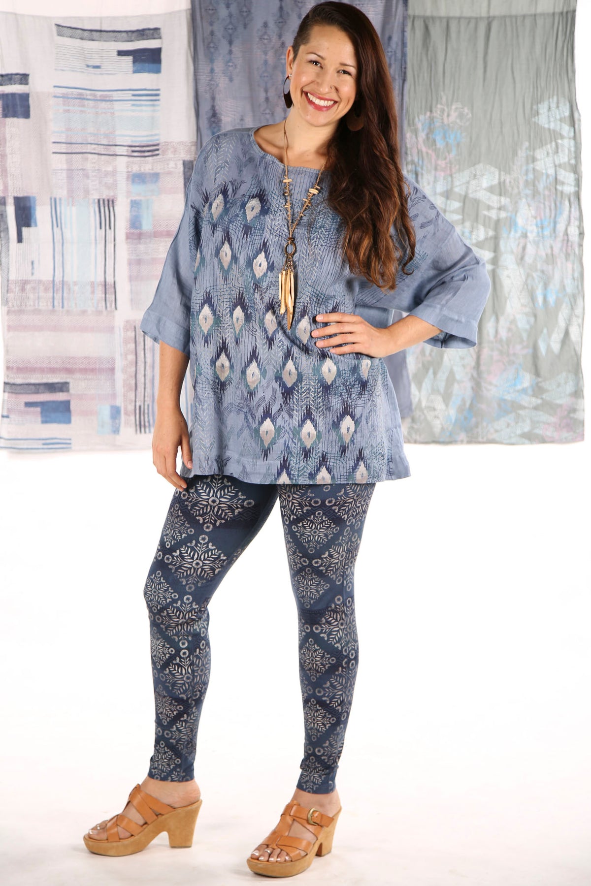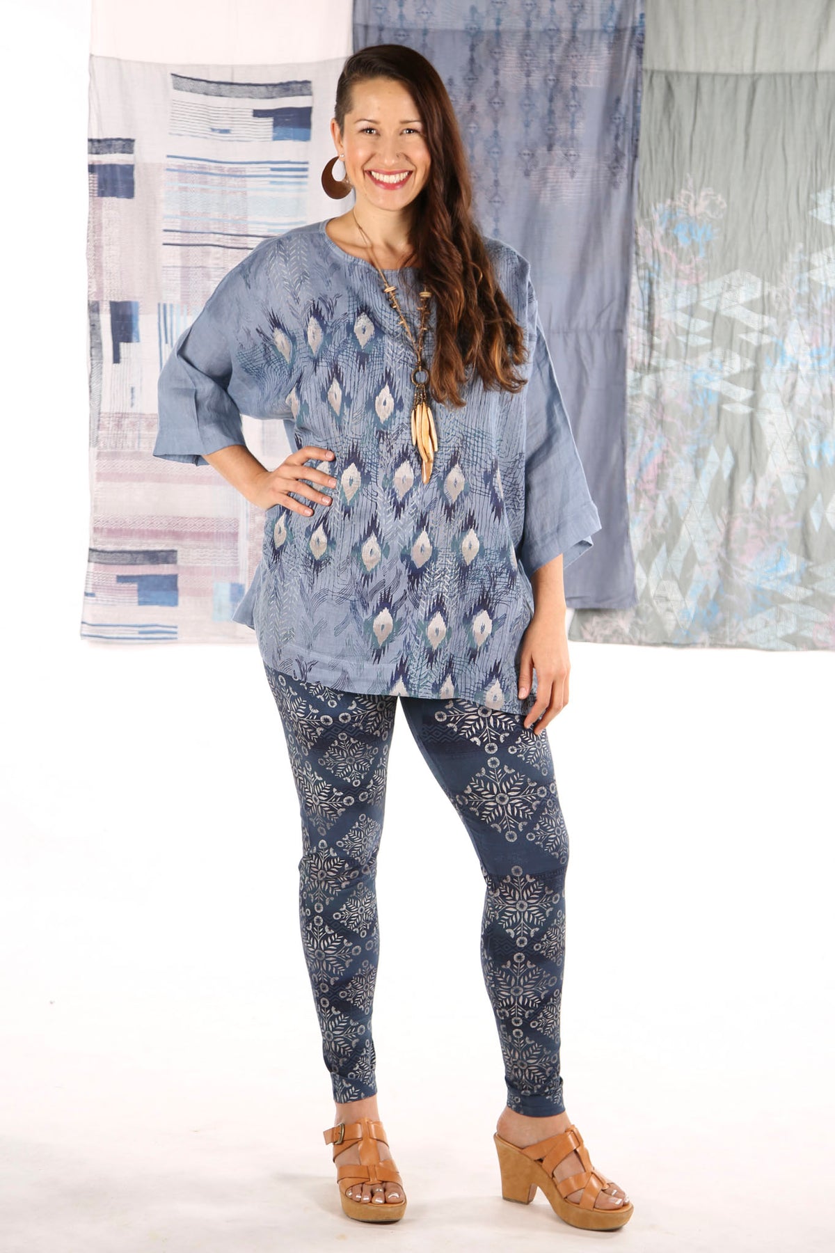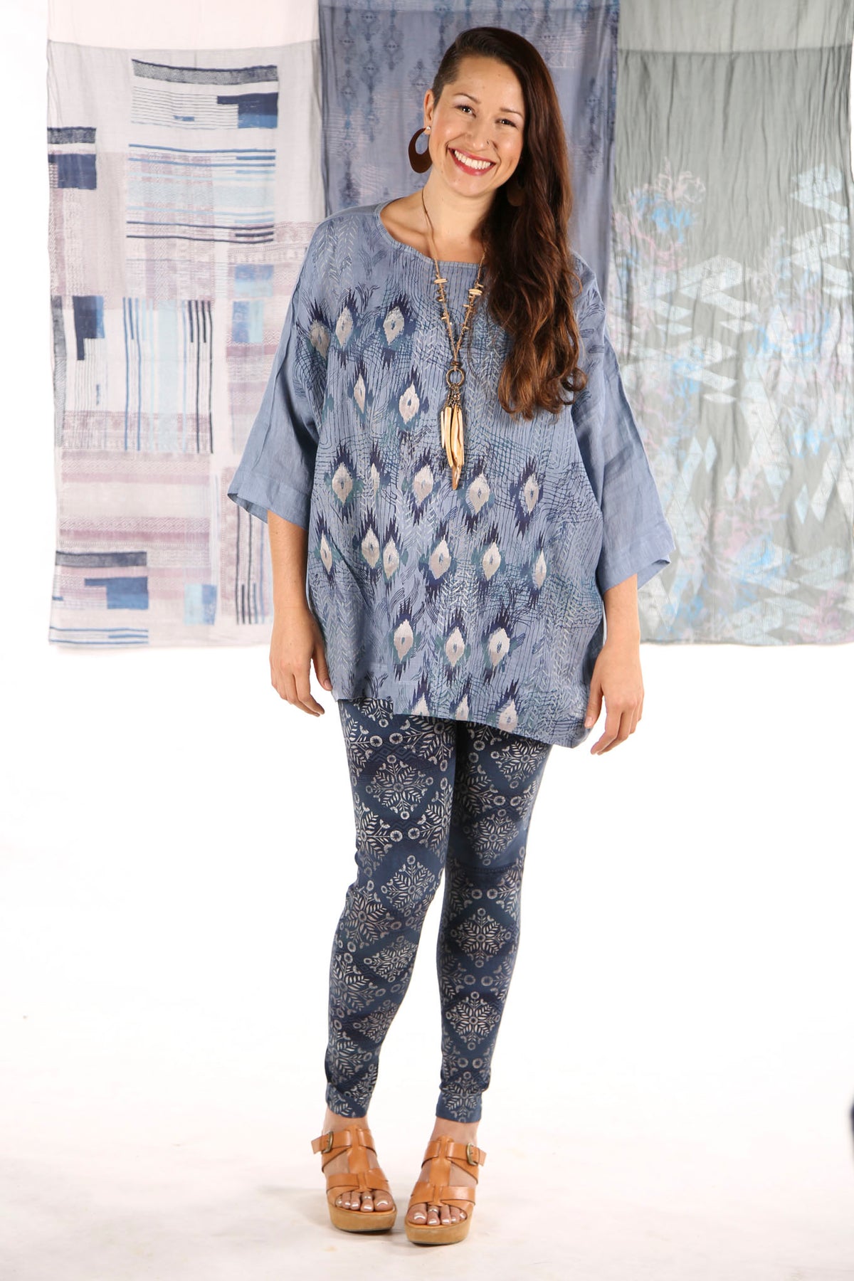Simply beautiful, this airy top drapes elegantly and flatters every figure. Cool and comfortable, this linen top will be your favorite go-to this summer. Our artists created deliciously fun prints for eclectic style.